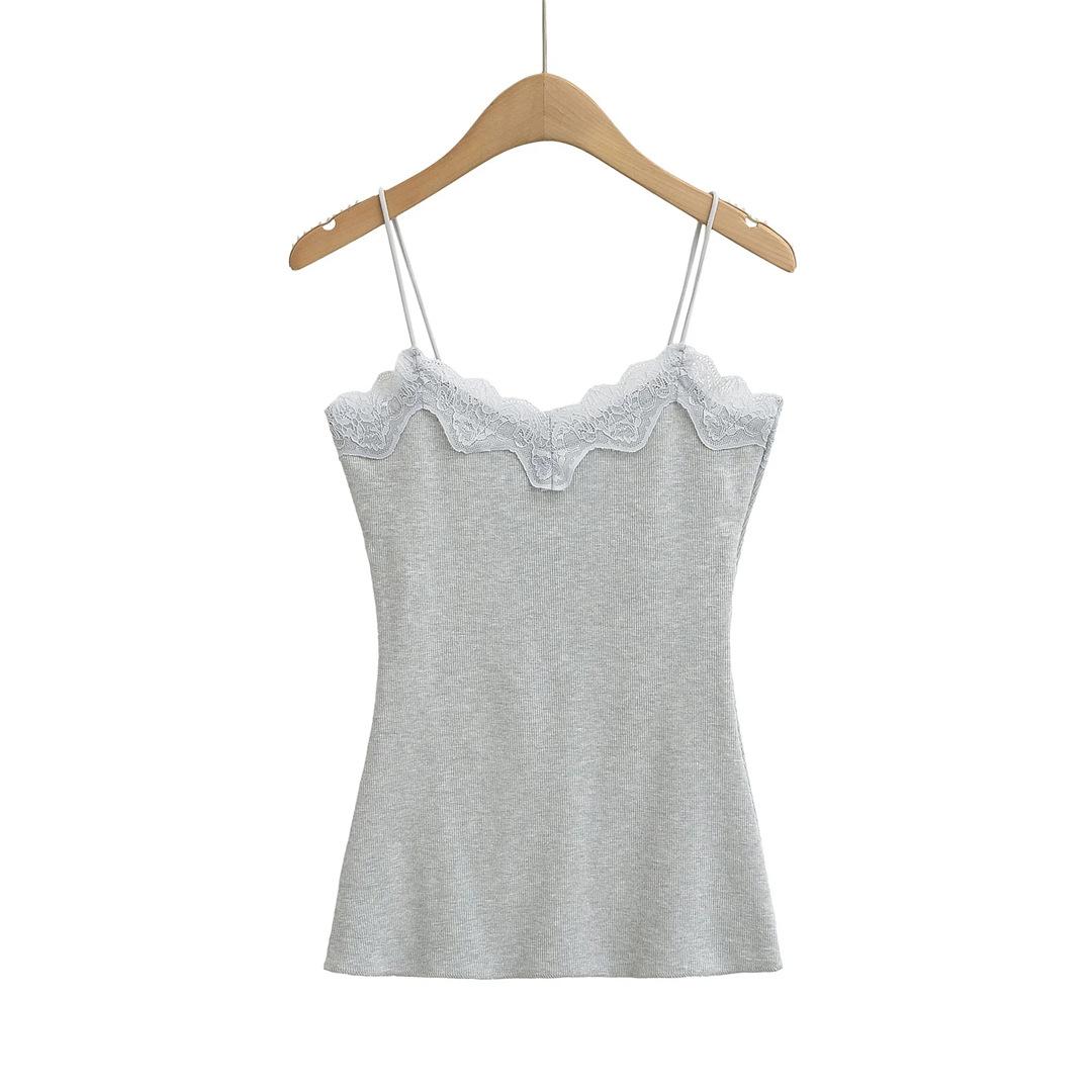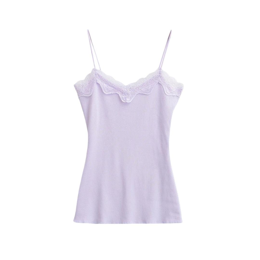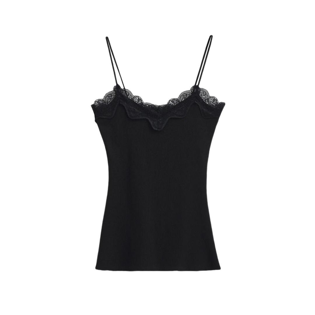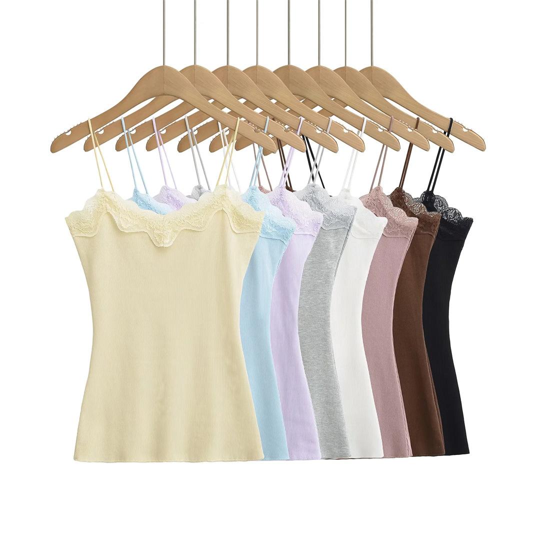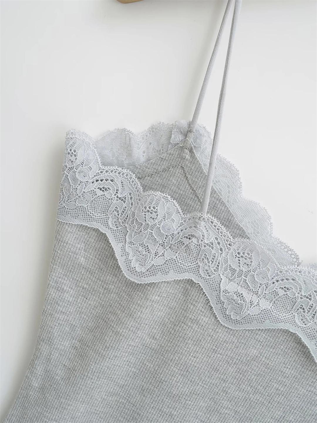 Camisola de Encaje Estilo Lujuria Pura para Mujer, Ajustada, Sexy, Color Puro, para Usar Debajo, Exterior, Top Corto