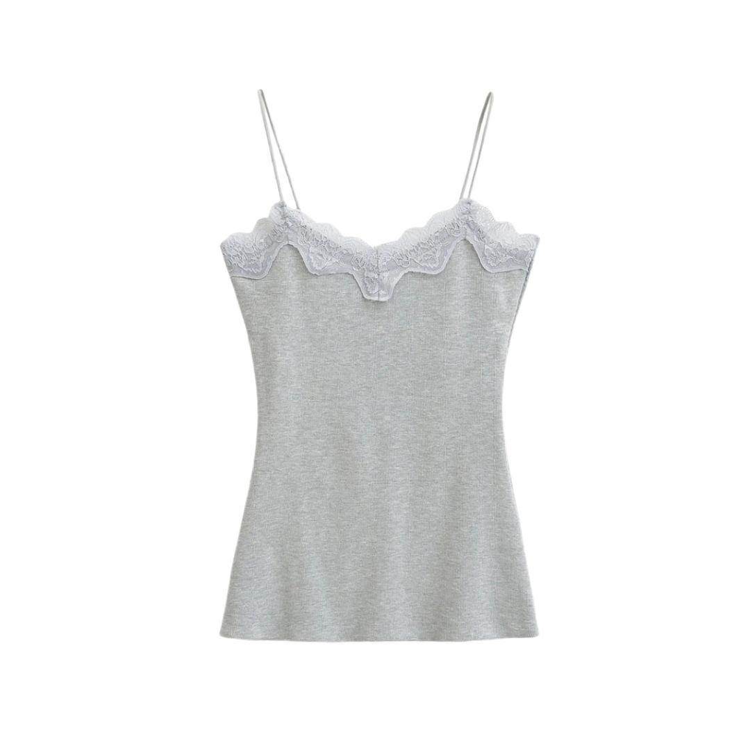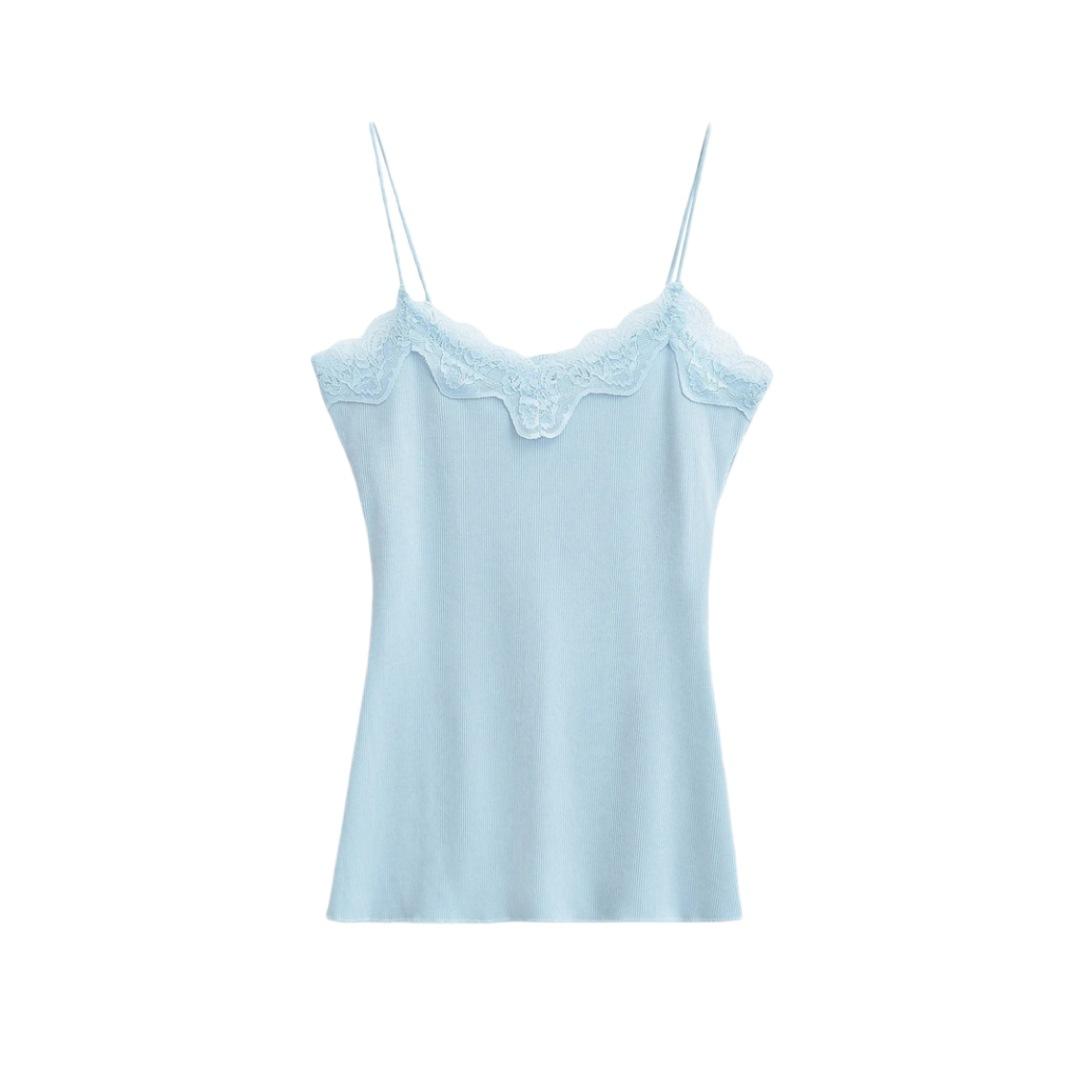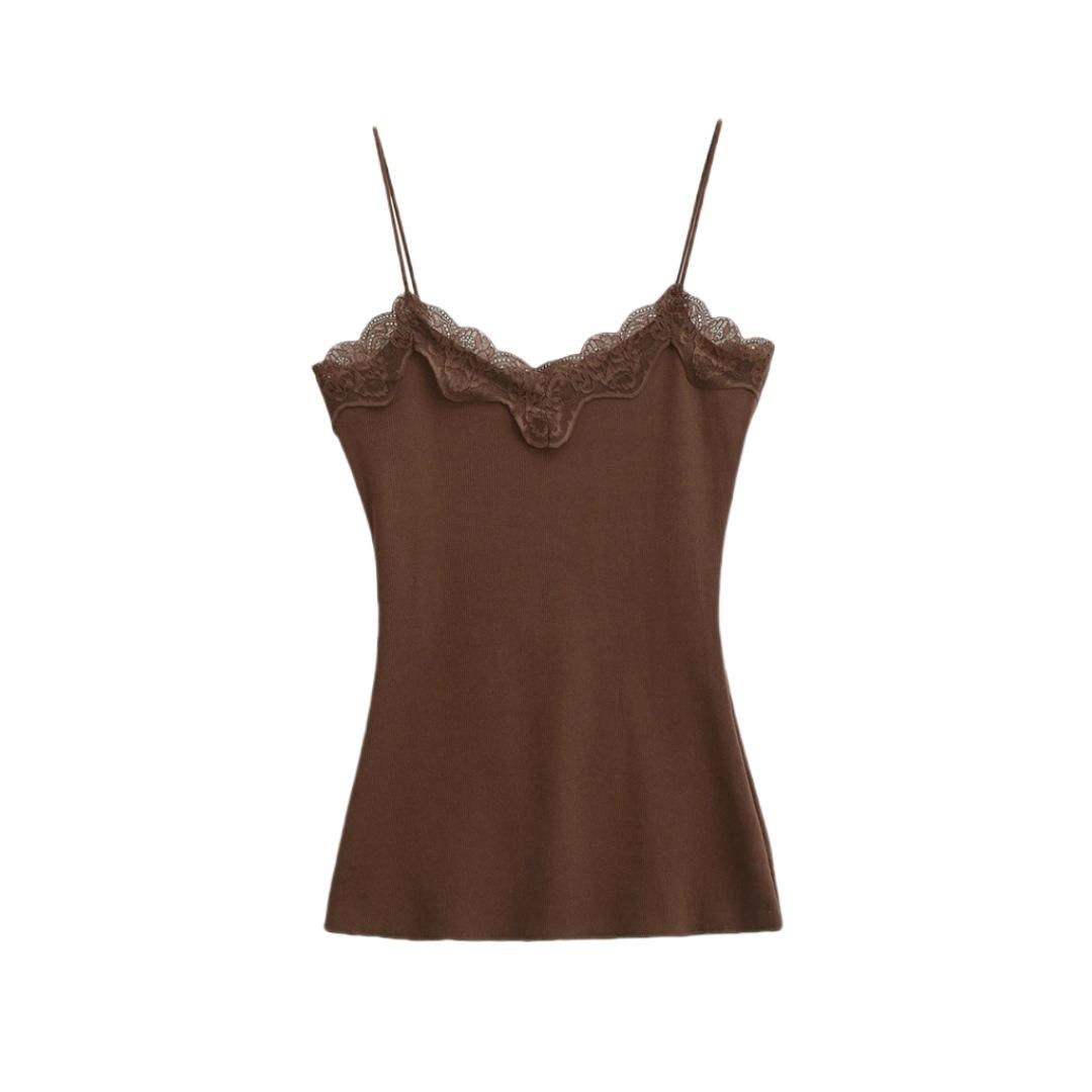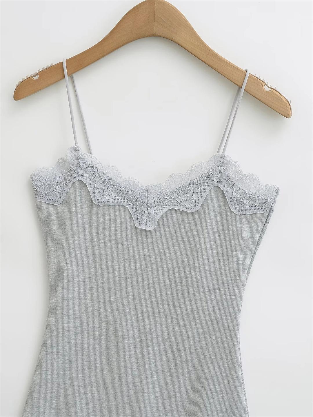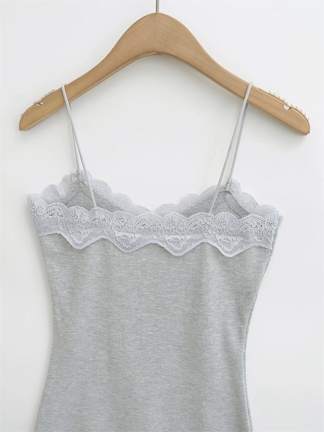 Camisola de Encaje Estilo Lujuria Pura para Mujer, Ajustada, Sexy, Color Puro, para Usar Debajo, Exterior, Top Corto