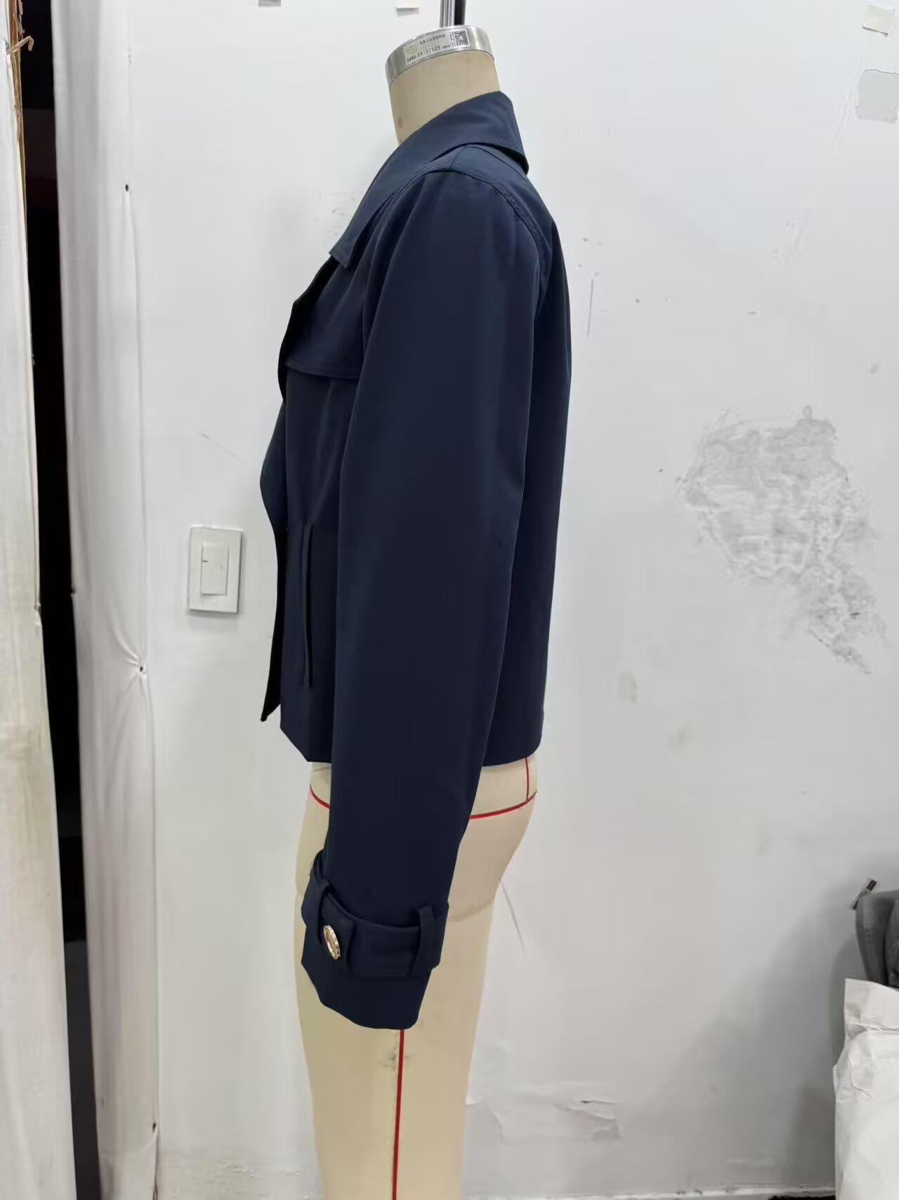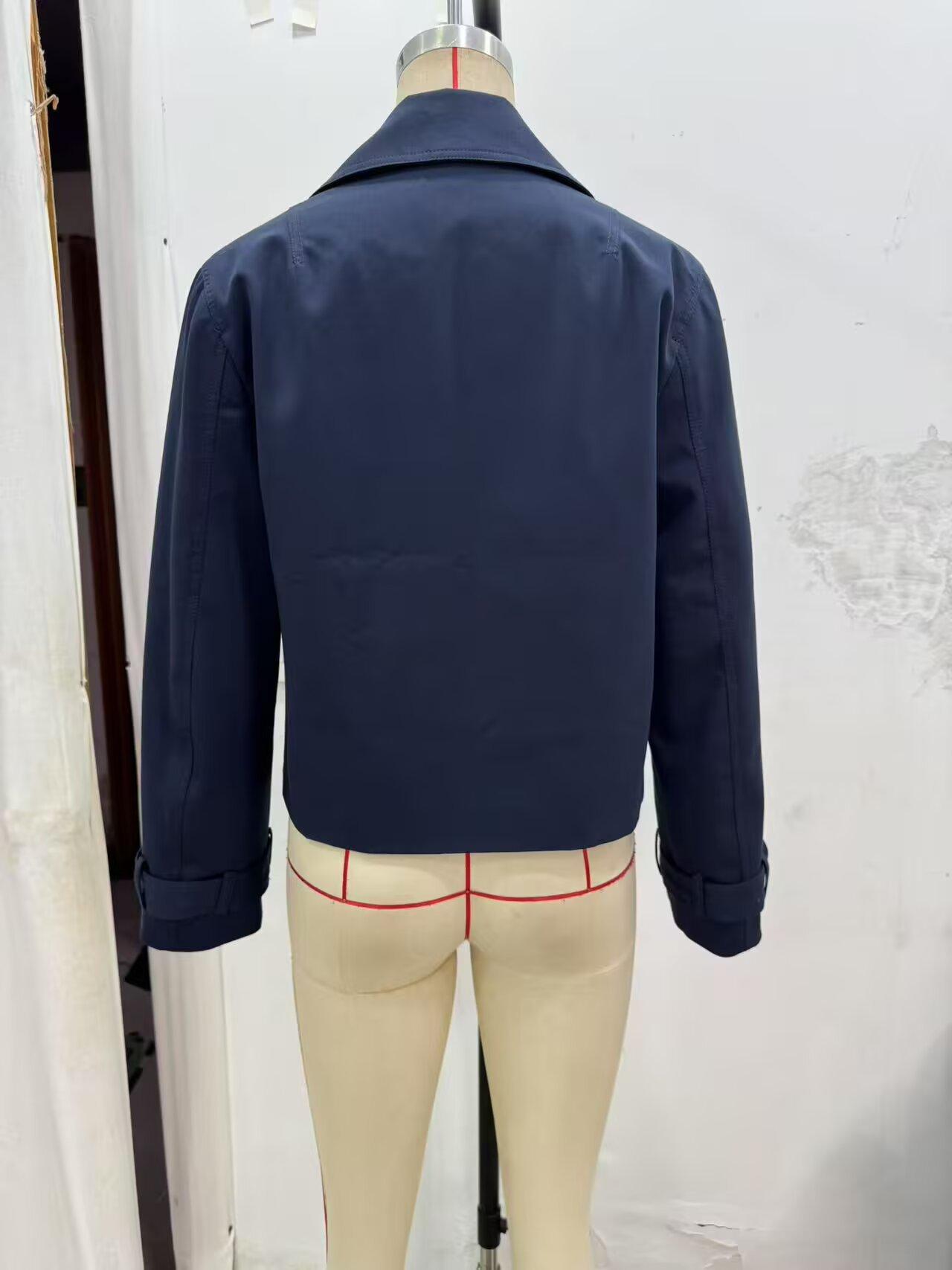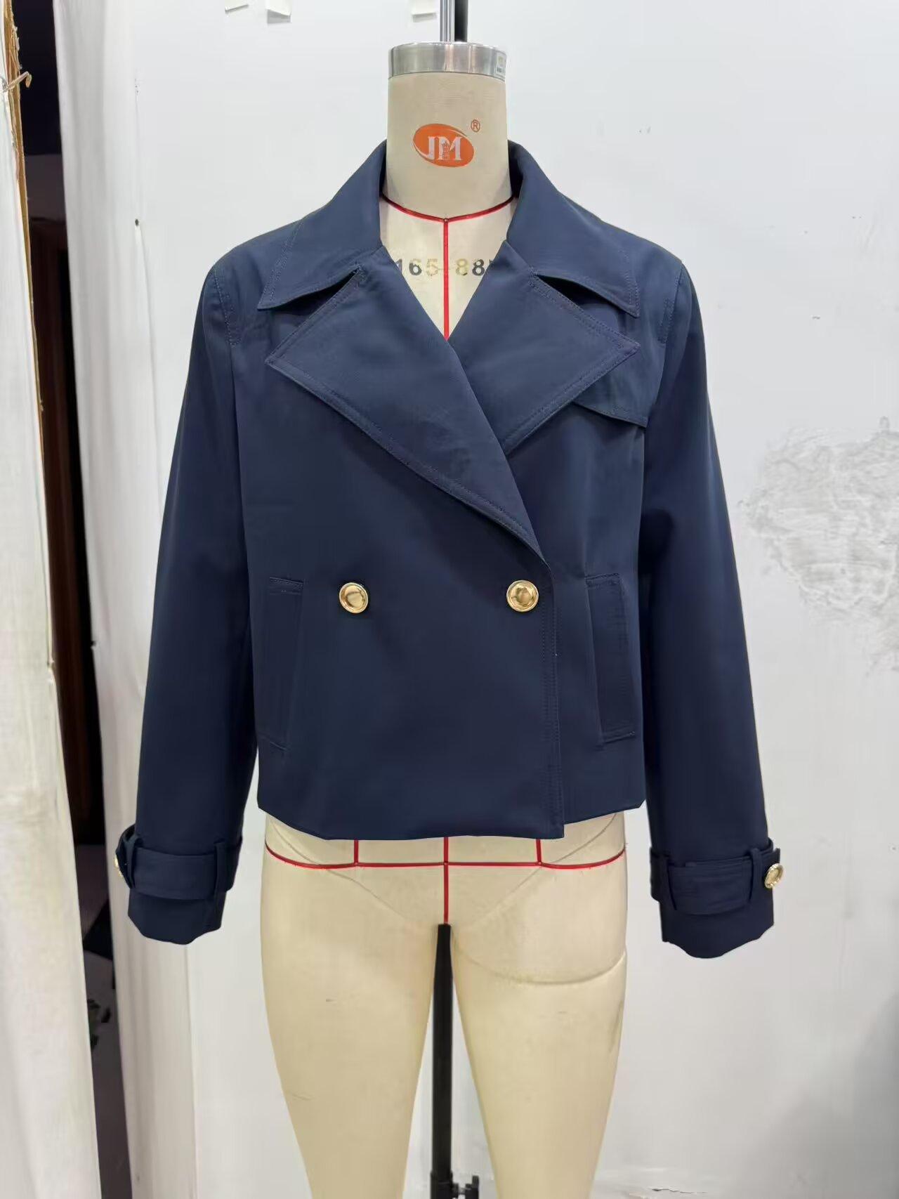 Ropa de mujer de comercio exterior transfronterizo 2025 otoño estilo europeo y americano solapa manga larga doble botonadura chaqueta corta abrigo mujer E490153F