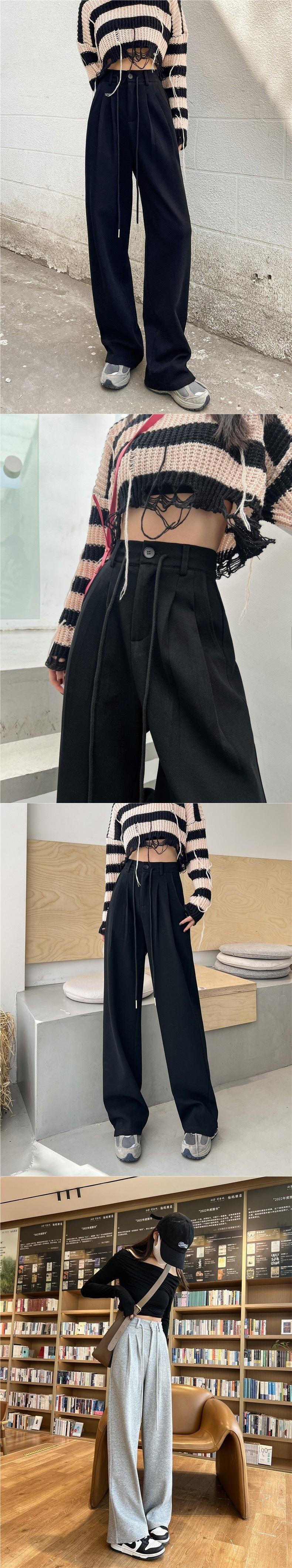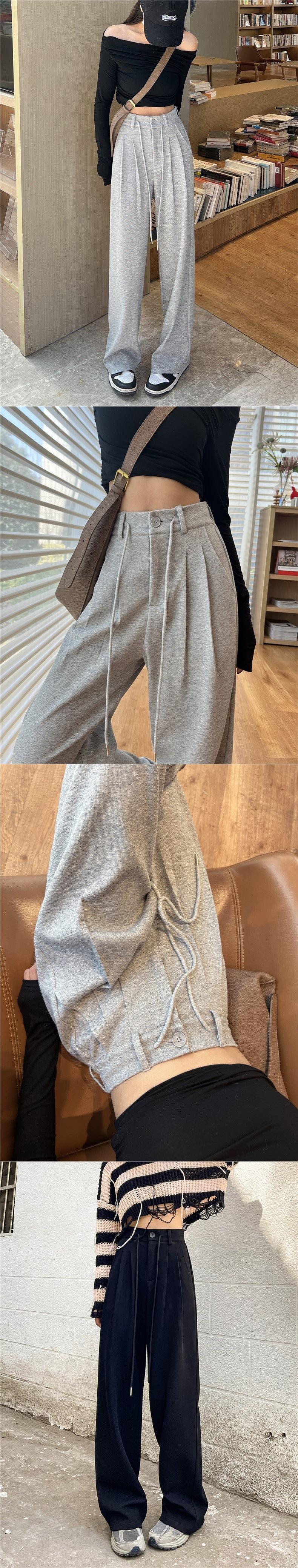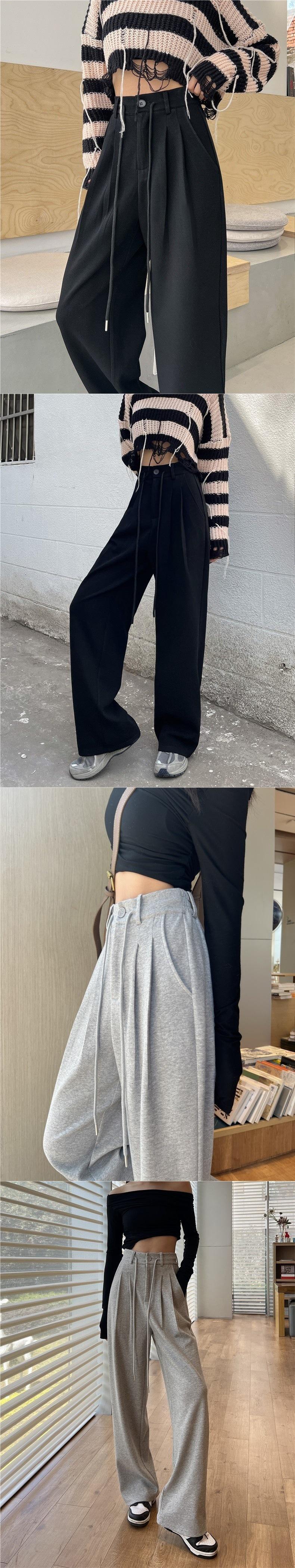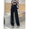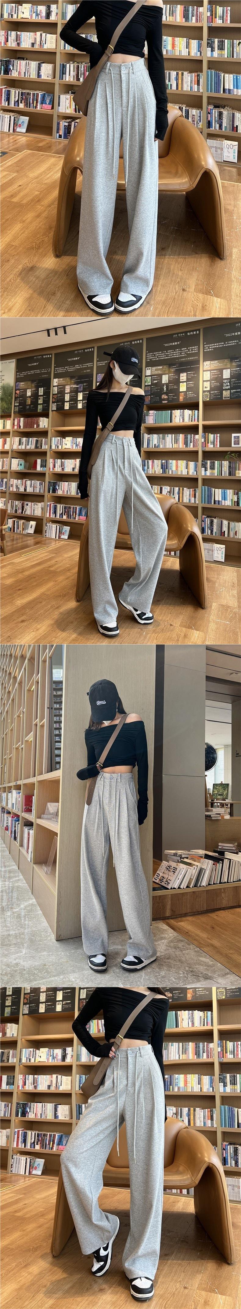 2025 nuevos pantalones deportivos grises para mujer de cintura alta, pierna ancha, pierna recta, largos hasta el suelo, pantalones deportivos casuales sueltos para primavera y otoño para mujer