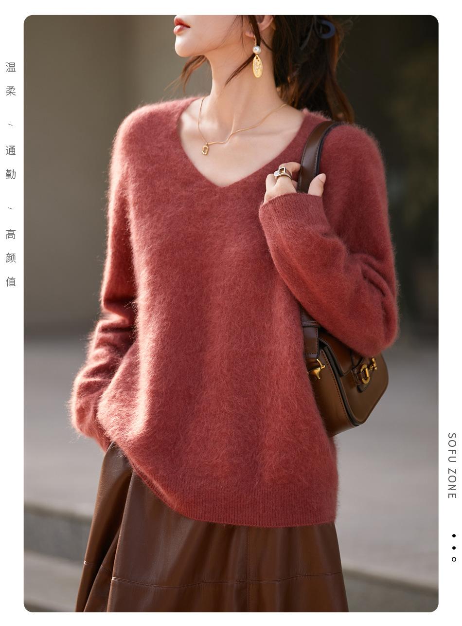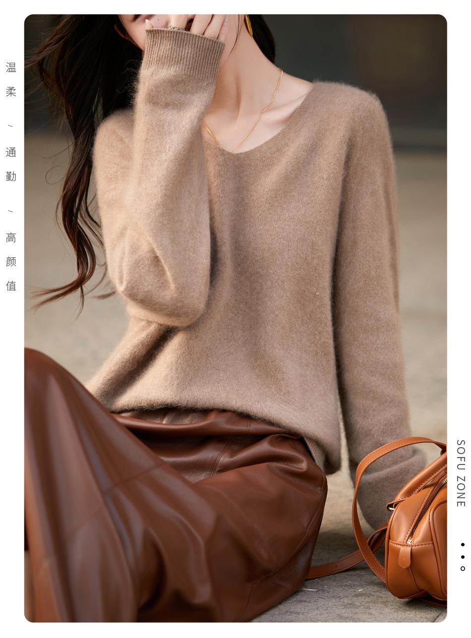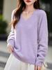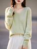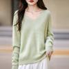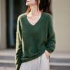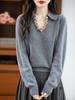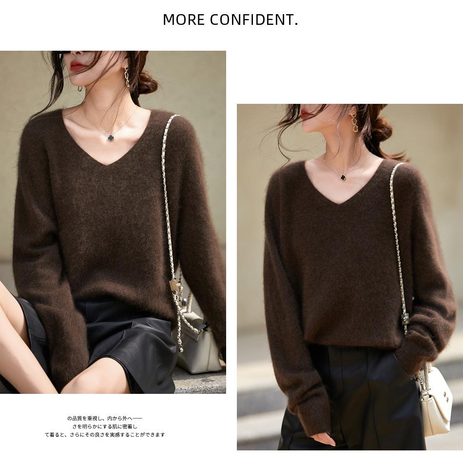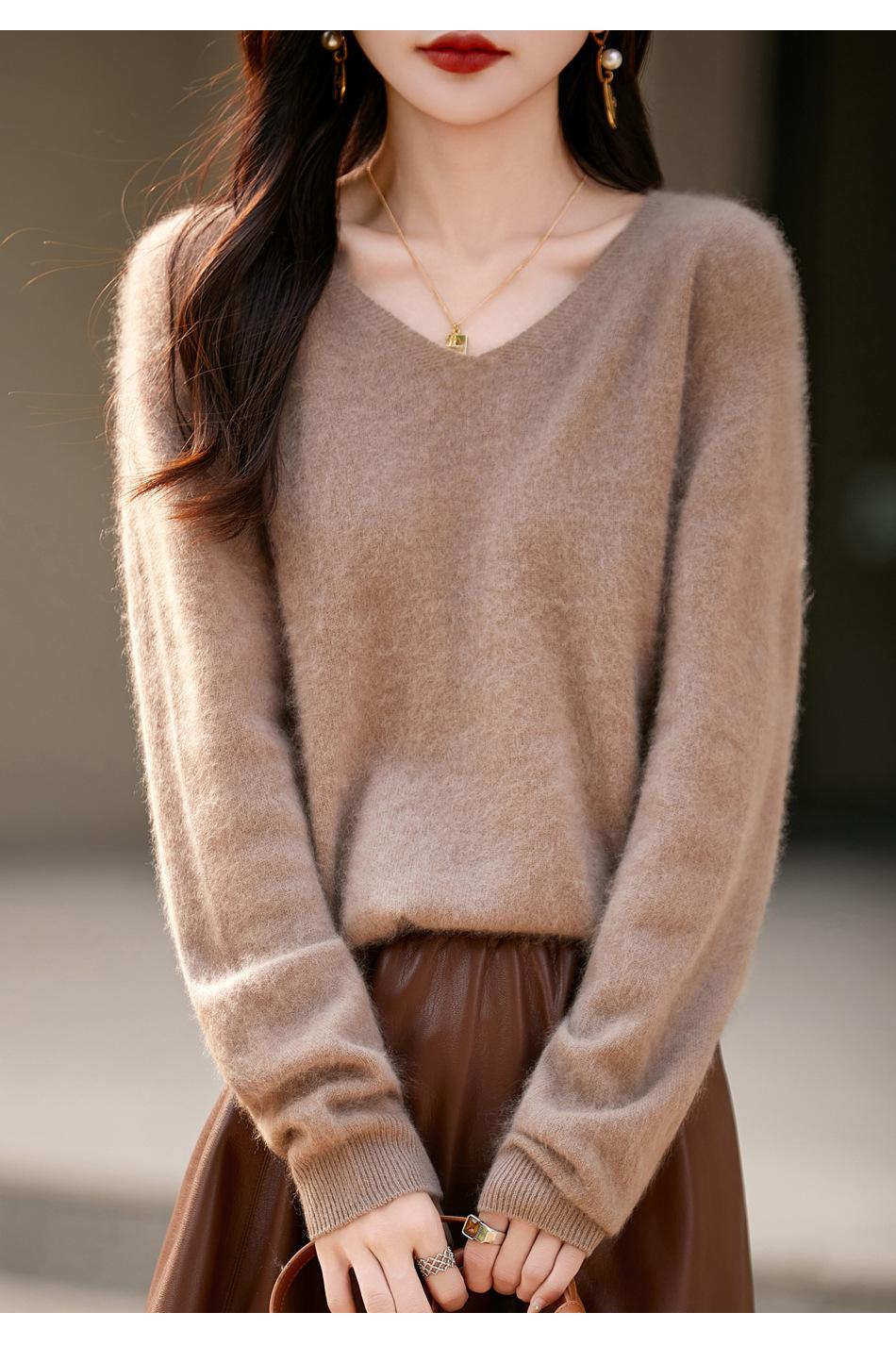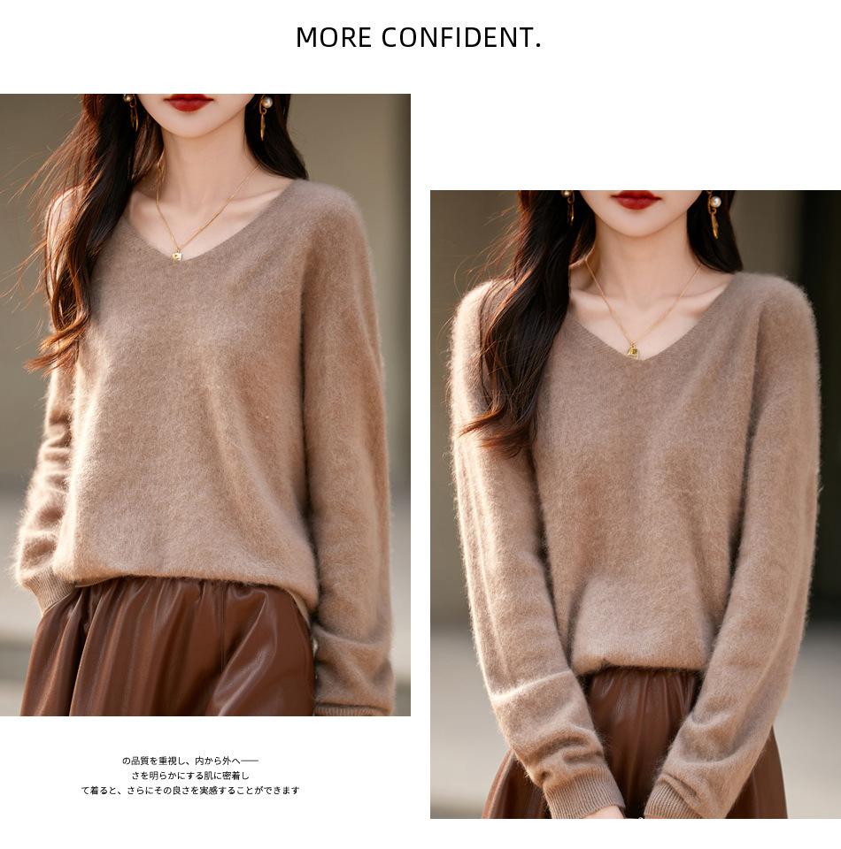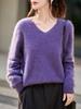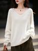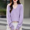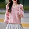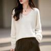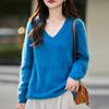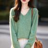 2025 Otoño/Invierno Nuevo Mezcla de Lana Cachemira Cuello en V Una Pieza Listo para Usar Suéter Tejido Manga Larga Suéter Cepillado para Mujer