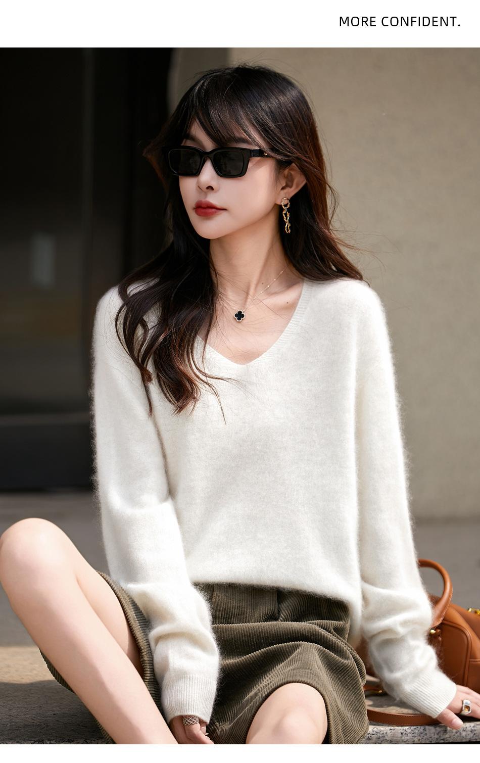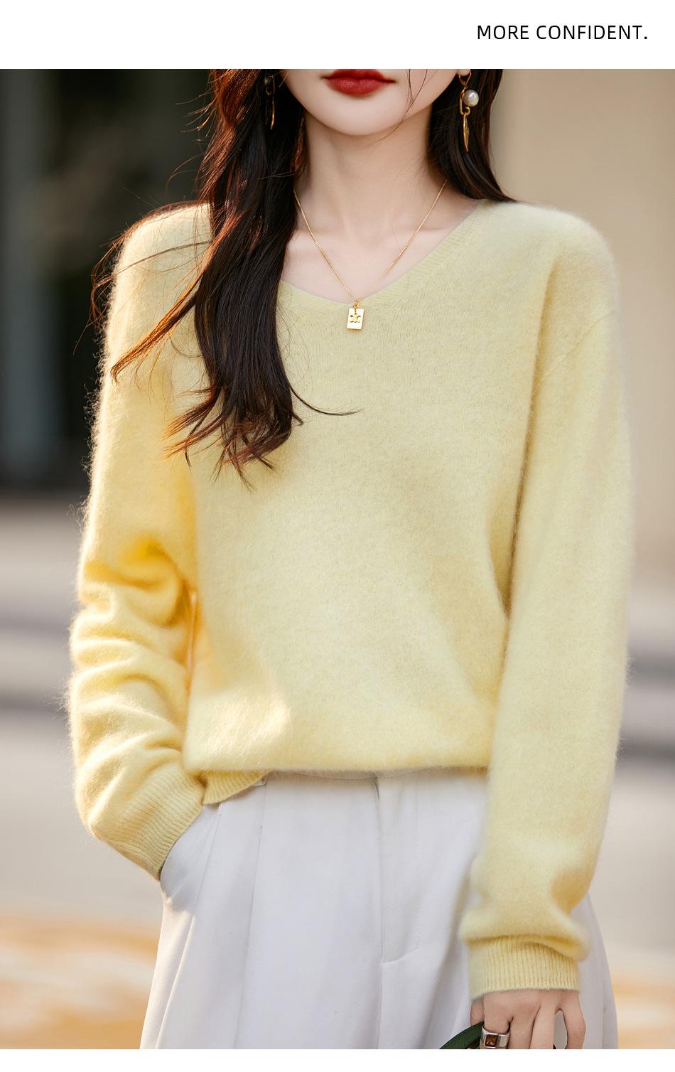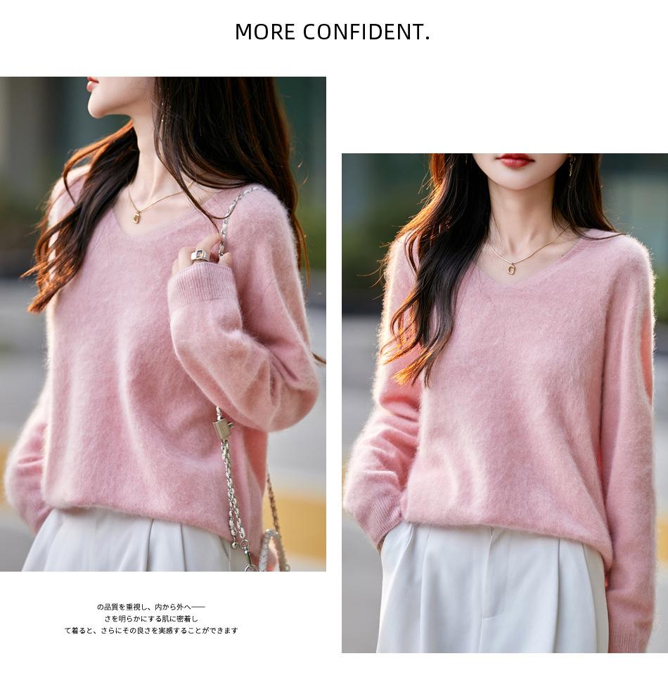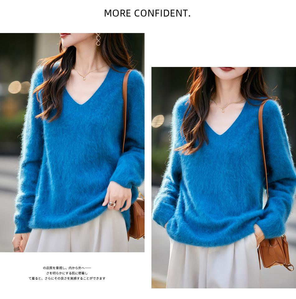 2025 Otoño/Invierno Nuevo Mezcla de Lana Cachemira Cuello en V Una Pieza Listo para Usar Suéter Tejido Manga Larga Suéter Cepillado para Mujer