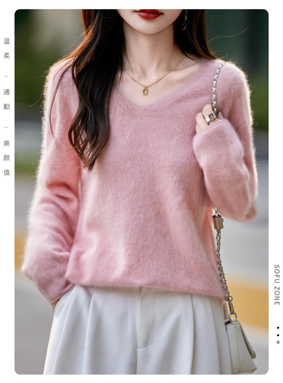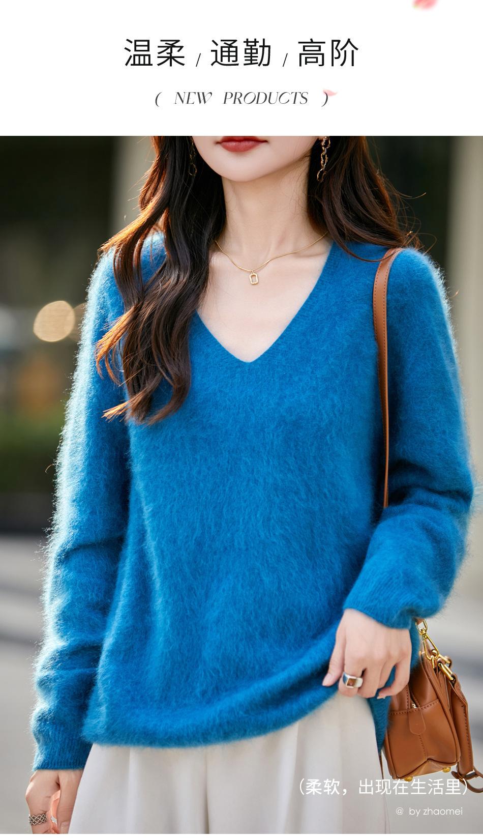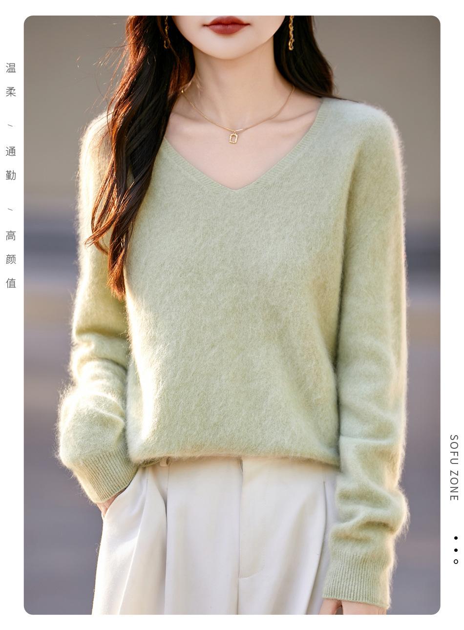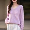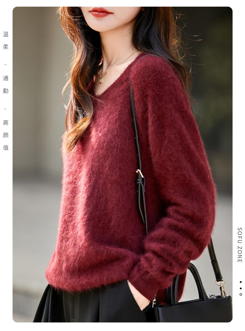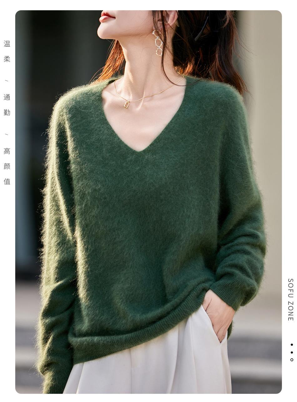 2025 Otoño/Invierno Nuevo Mezcla de Lana Cachemira Cuello en V Una Pieza Listo para Usar Suéter Tejido Manga Larga Suéter Cepillado para Mujer