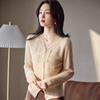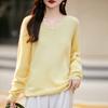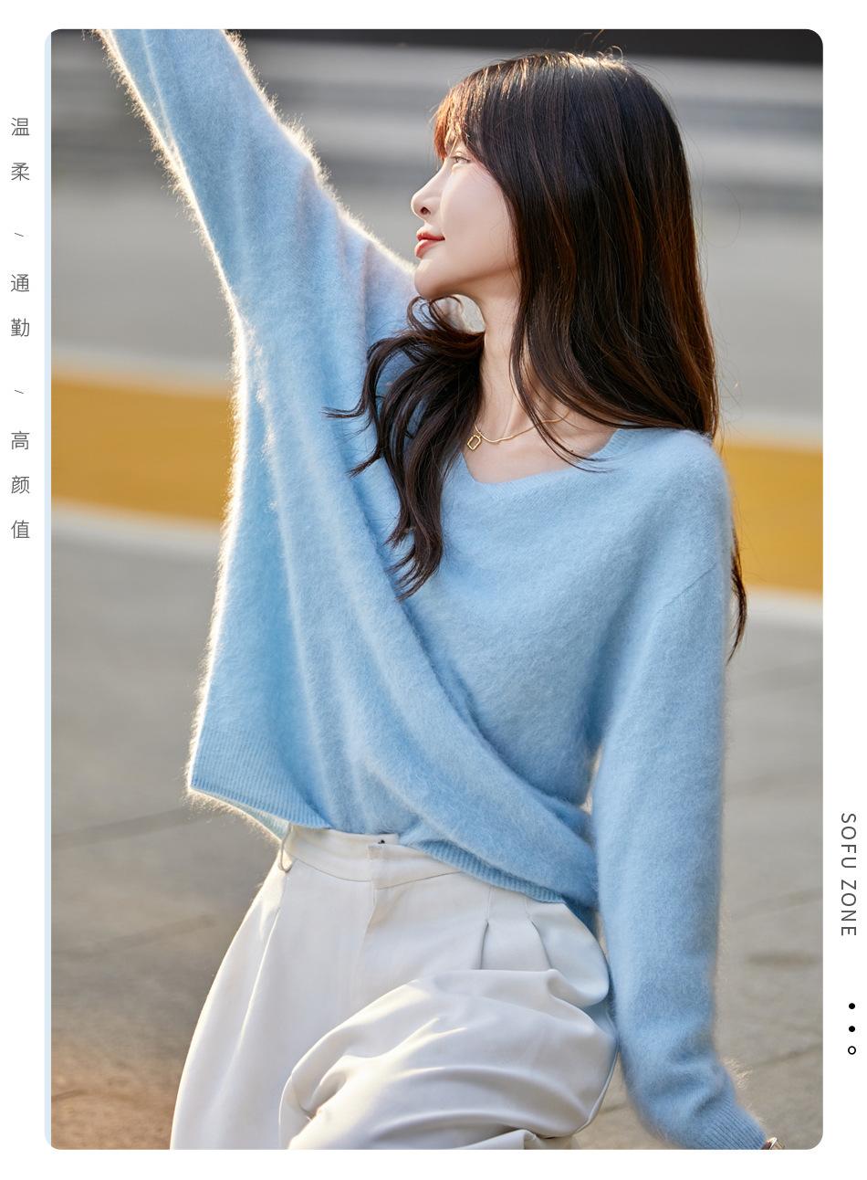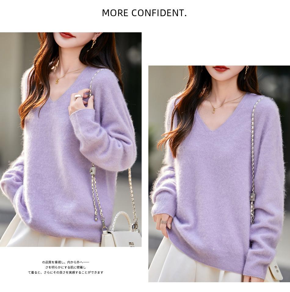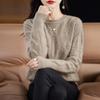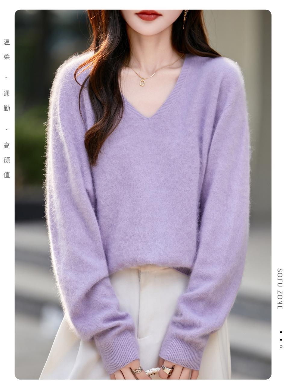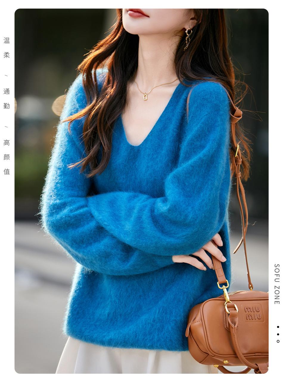 2025 Otoño/Invierno Nuevo Mezcla de Lana Cachemira Cuello en V Una Pieza Listo para Usar Suéter Tejido Manga Larga Suéter Cepillado para Mujer