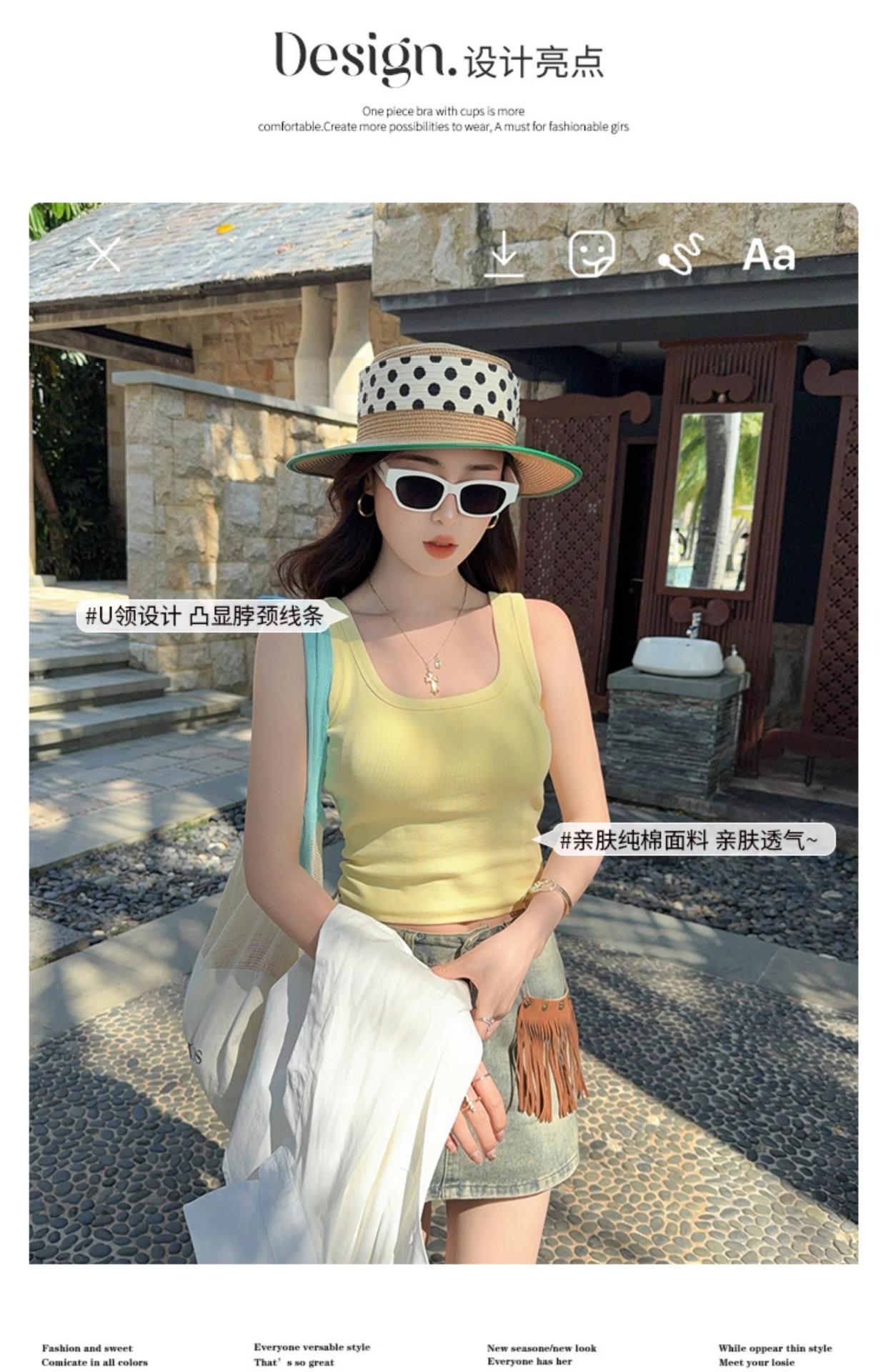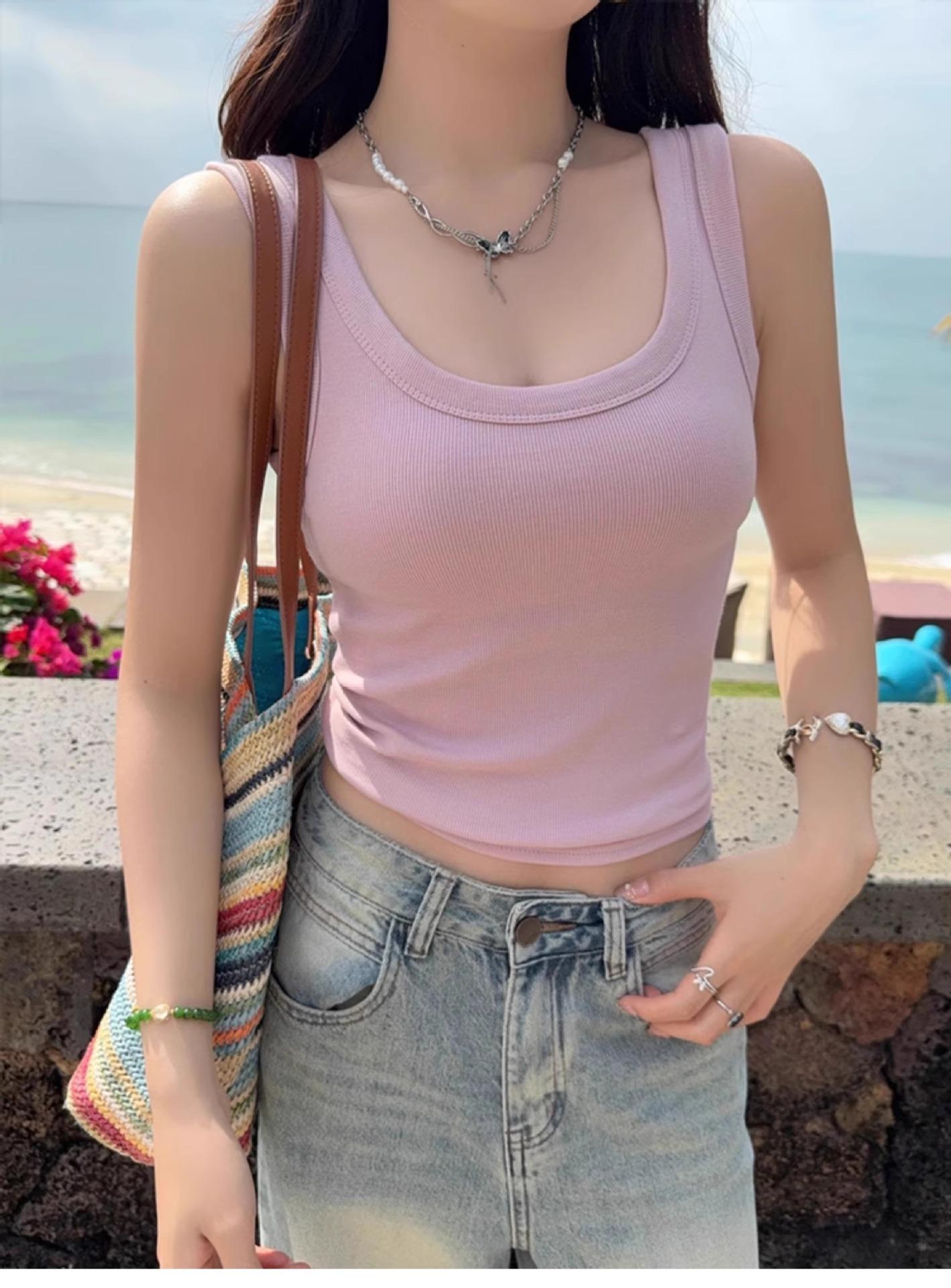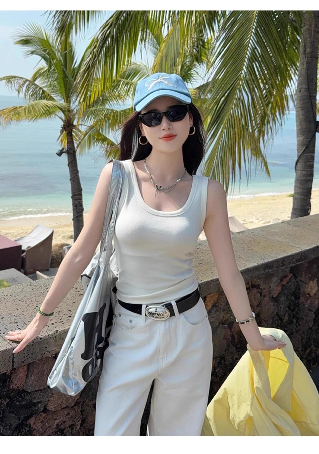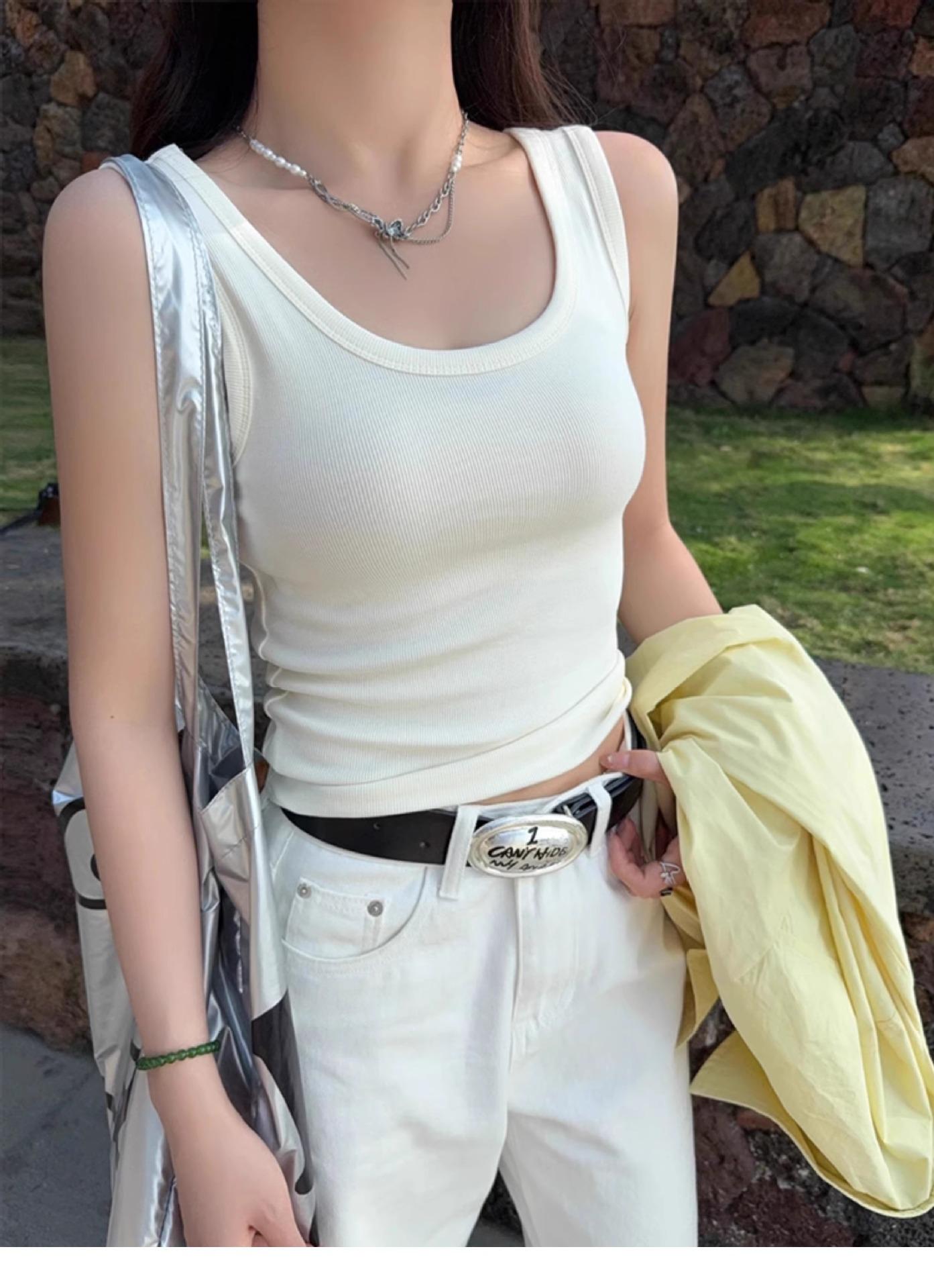Camisola para Mujer 2025 Verano Nuevo Estilo Ajustada sin Mangas Interior Base Versátil Chaleco Tirante Ancho Top Ropa Exterior