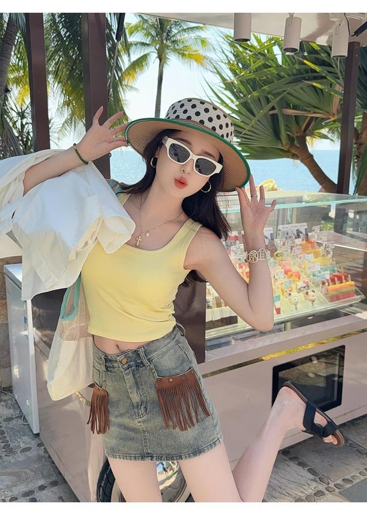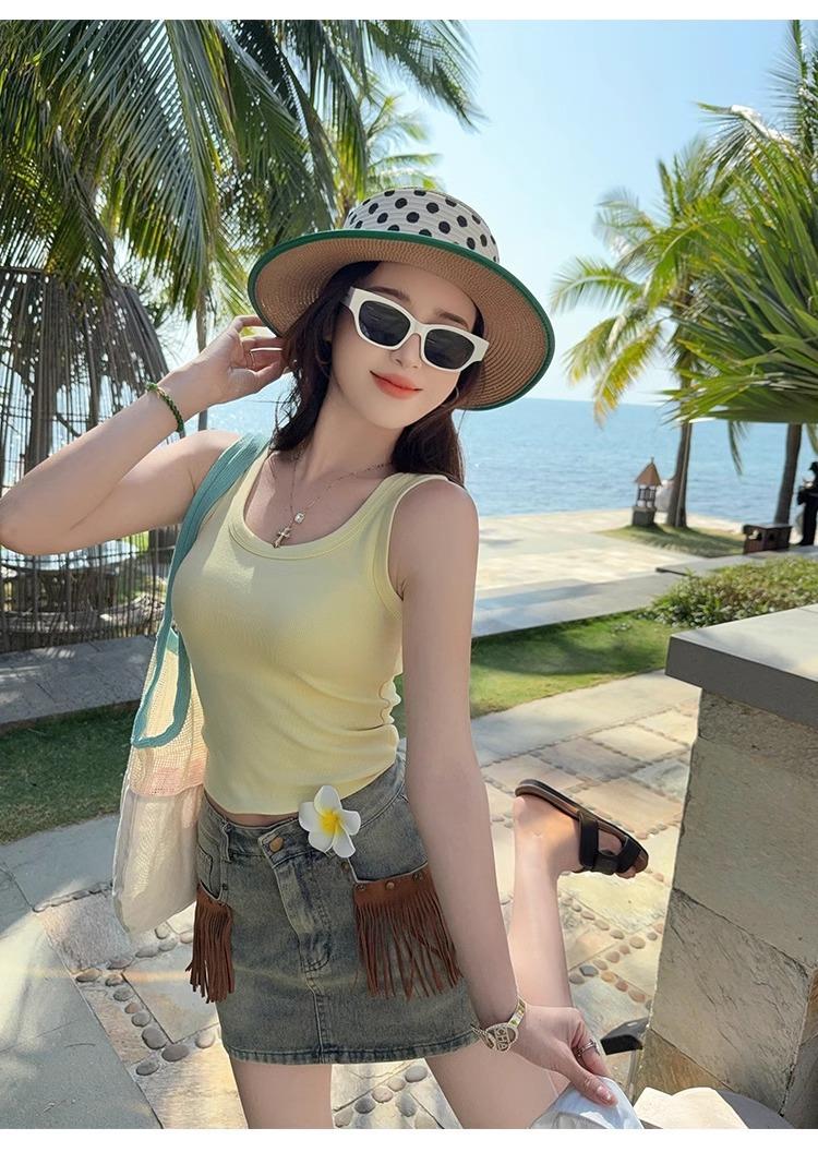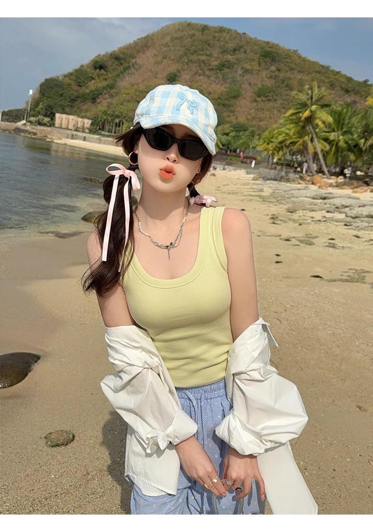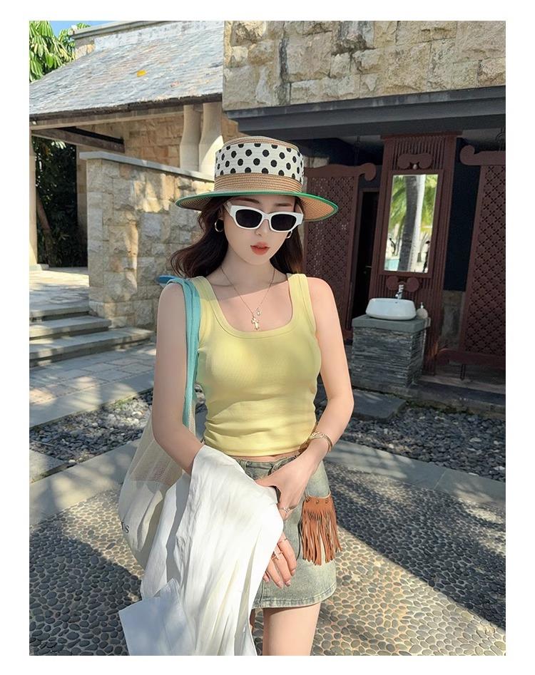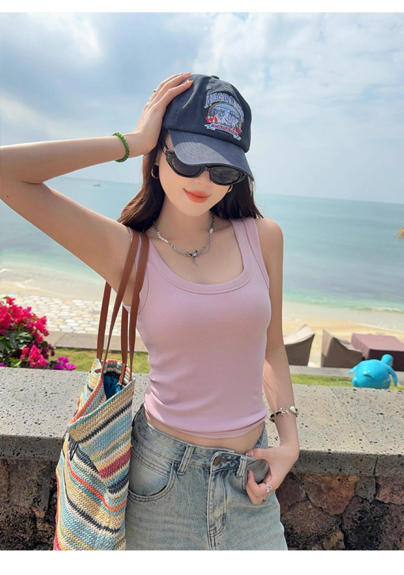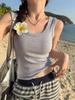 Camisola para Mujer 2025 Verano Nuevo Estilo Ajustada sin Mangas Interior Base Versátil Chaleco Tirante Ancho Top Ropa Exterior