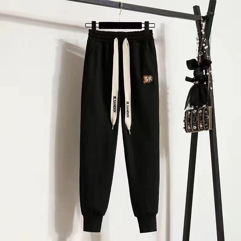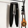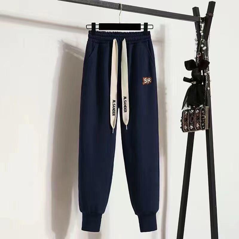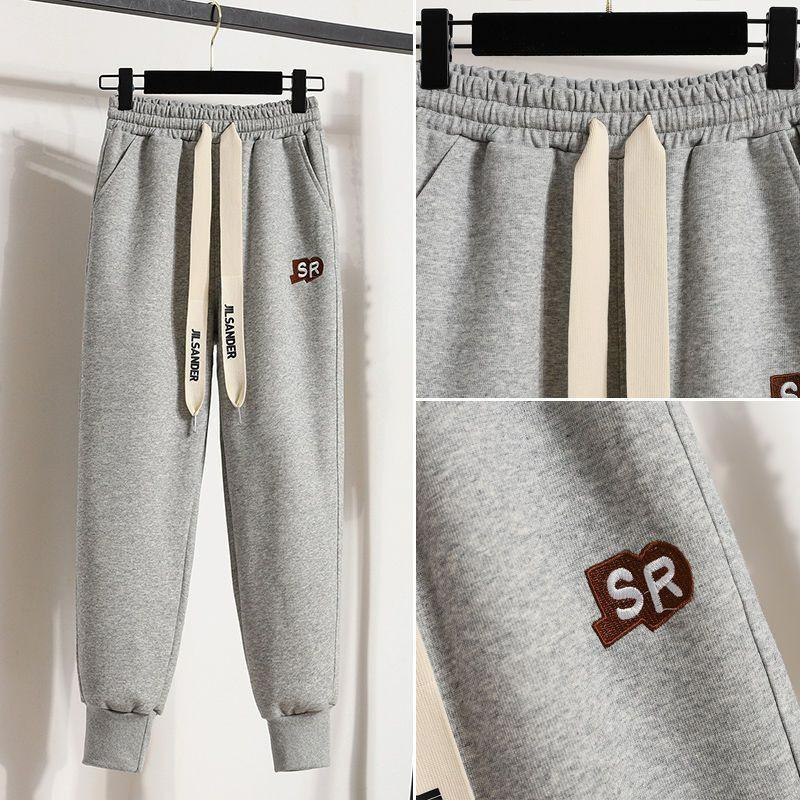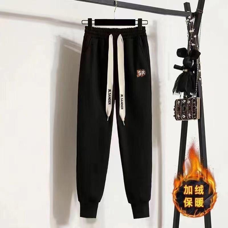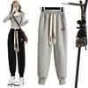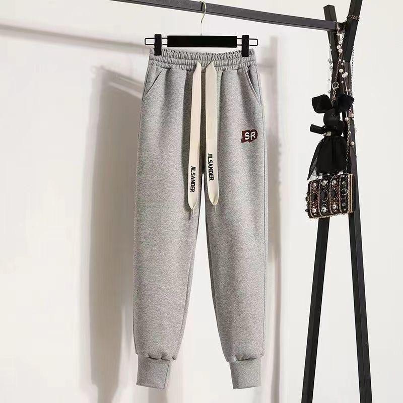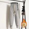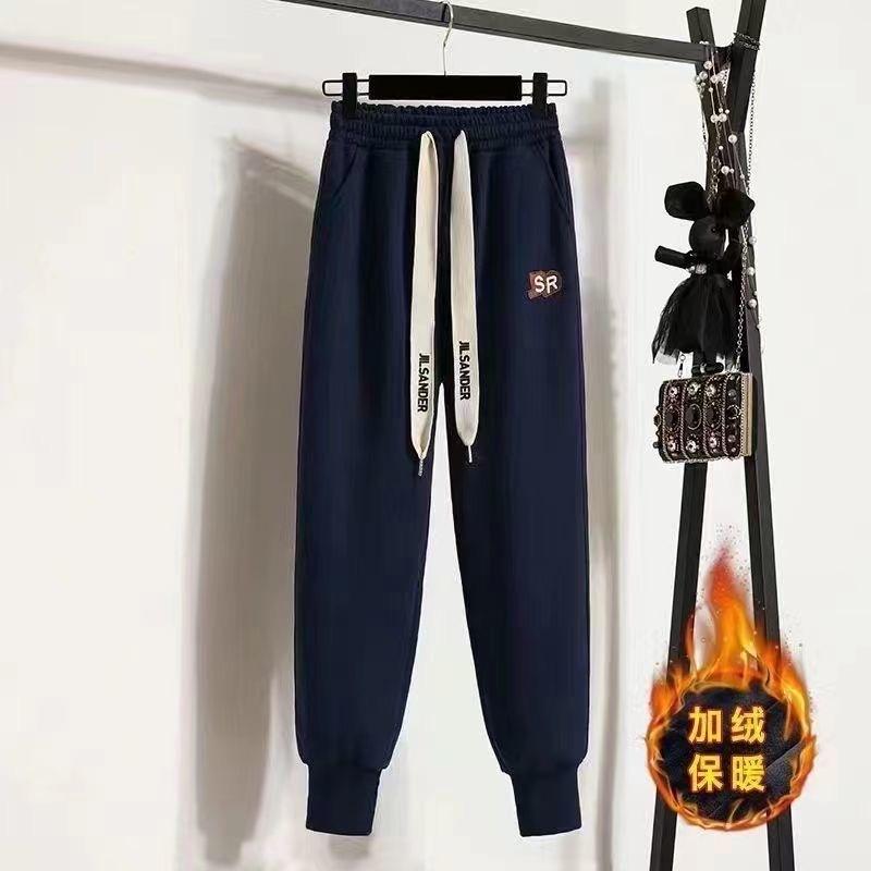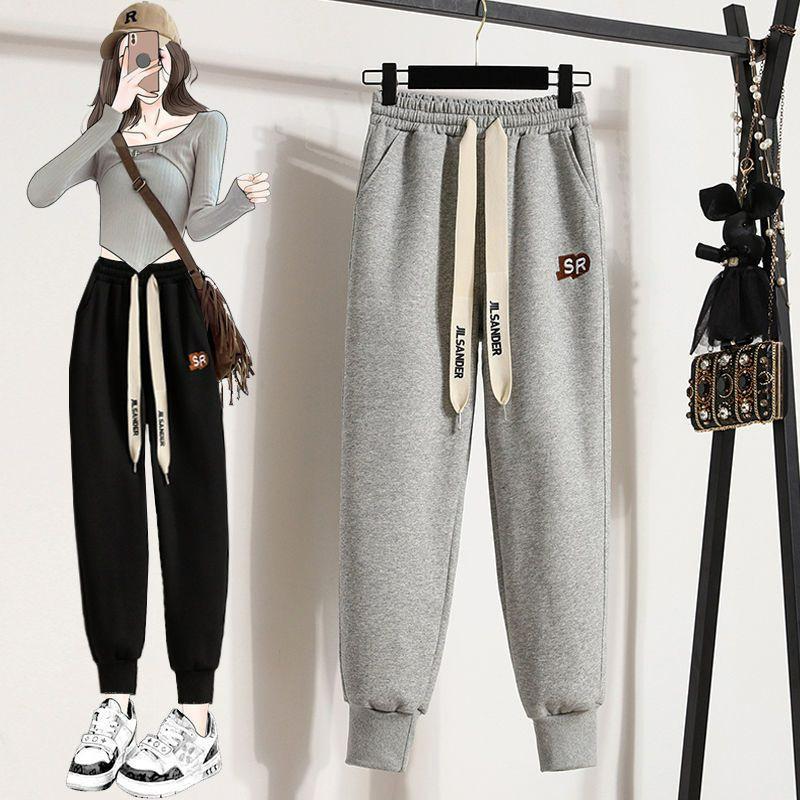Pantalones de Moda Estilo Universitario con Forro Polar para Mujer, Adelgazantes Otoño e Invierno Nuevos Sueltos Gruesos Casuales Jogger Harem