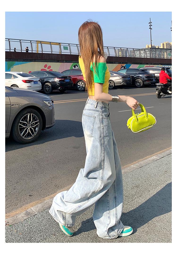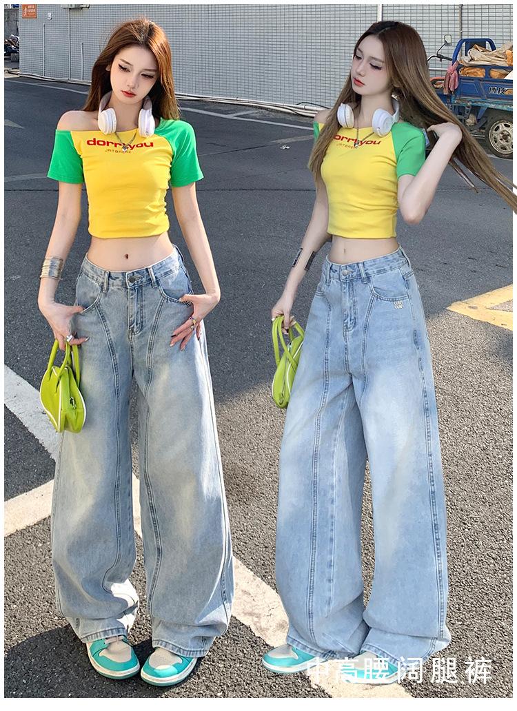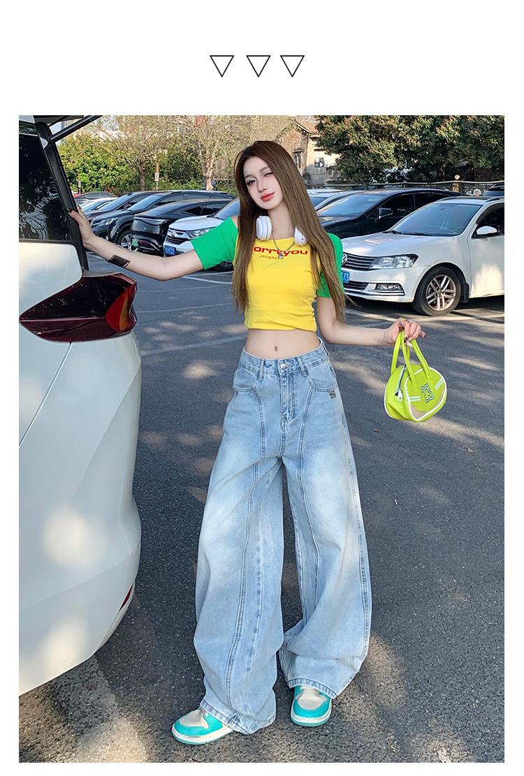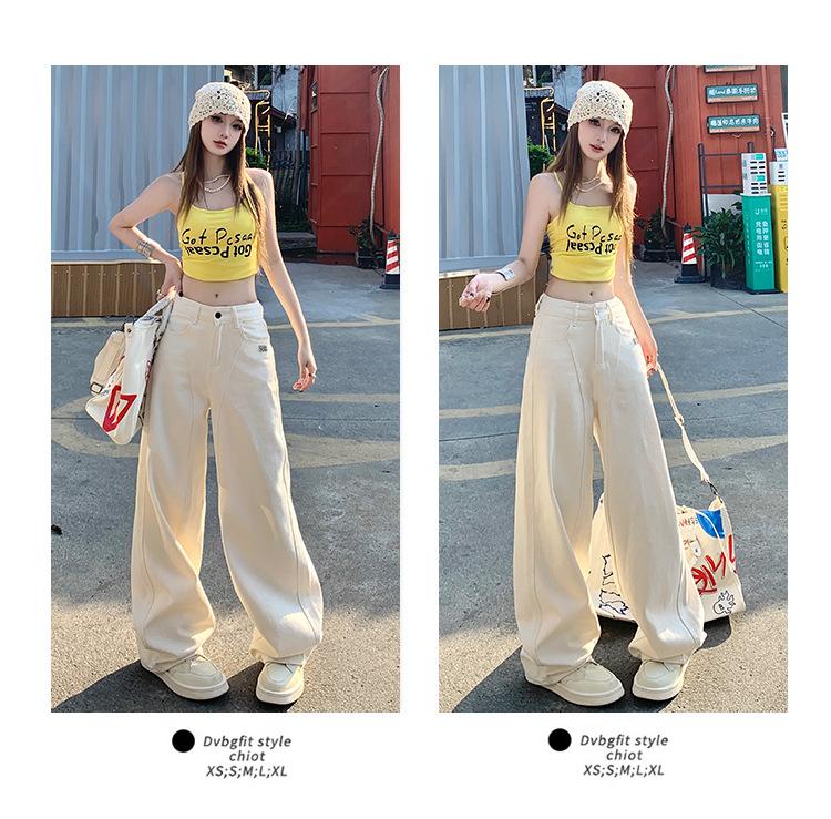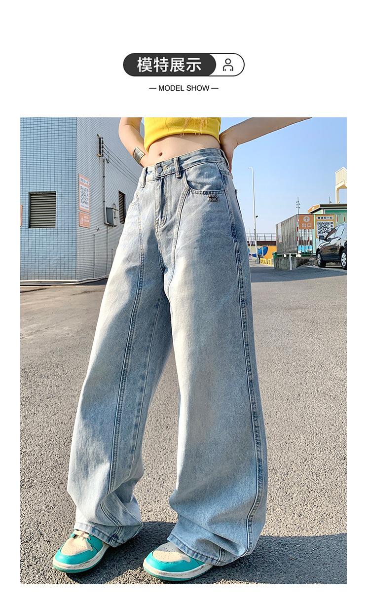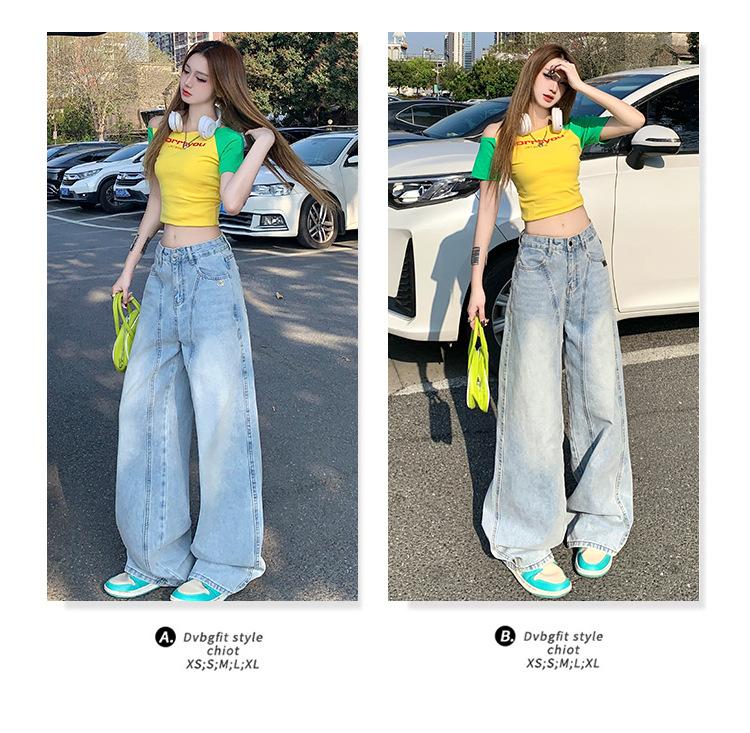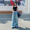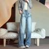 Jeans de pierna ancha azul claro para mujer 2025 verano petite delgados rectos de talle alto drapeados adelgazantes pantalones largos hasta el suelo