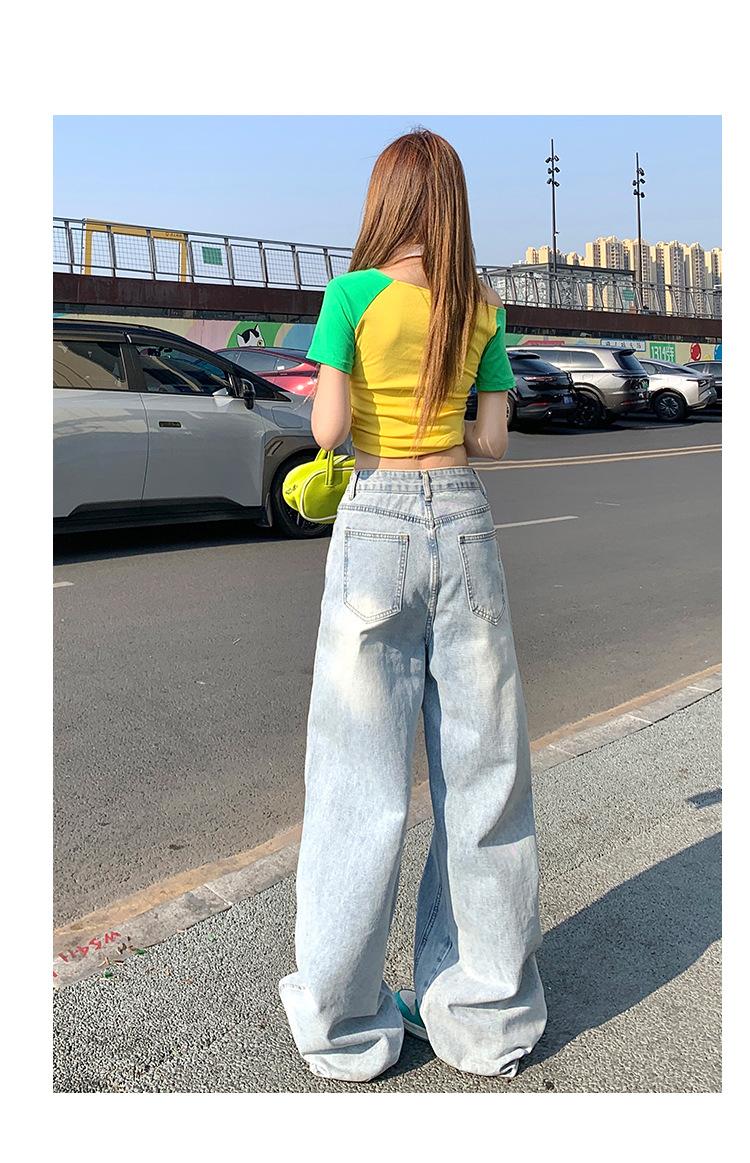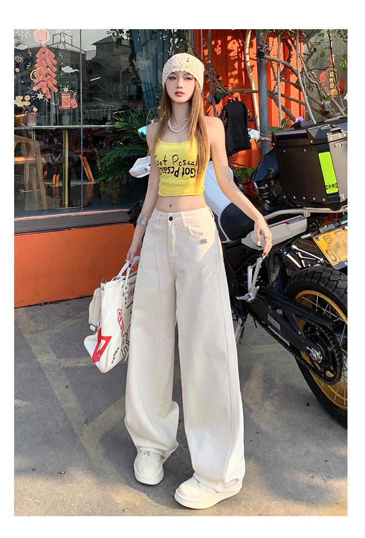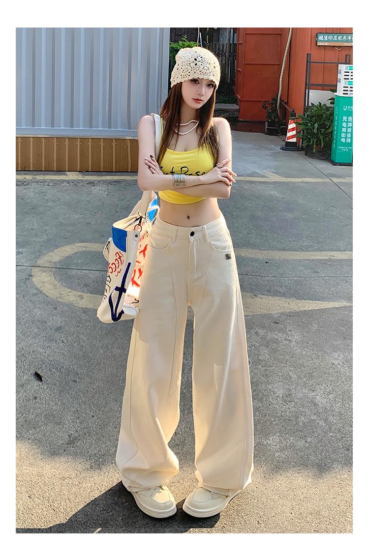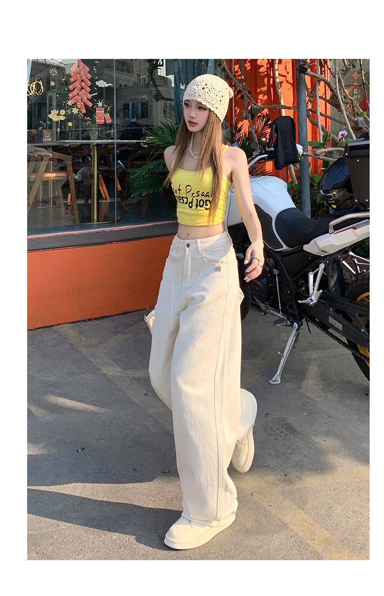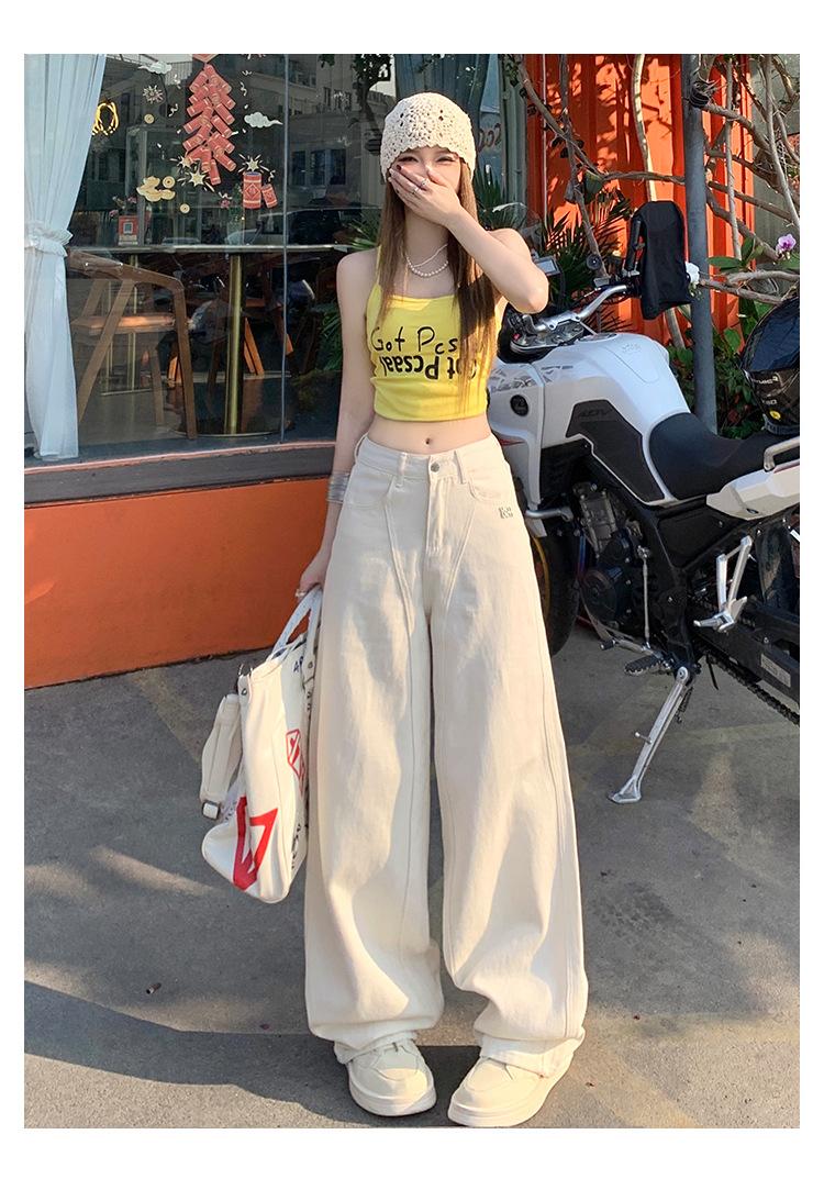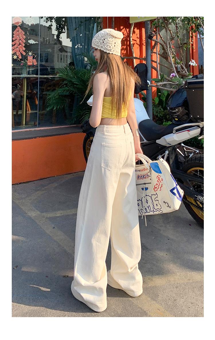 Jeans de pierna ancha azul claro para mujer 2025 verano petite delgados rectos de talle alto drapeados adelgazantes pantalones largos hasta el suelo