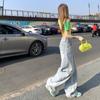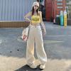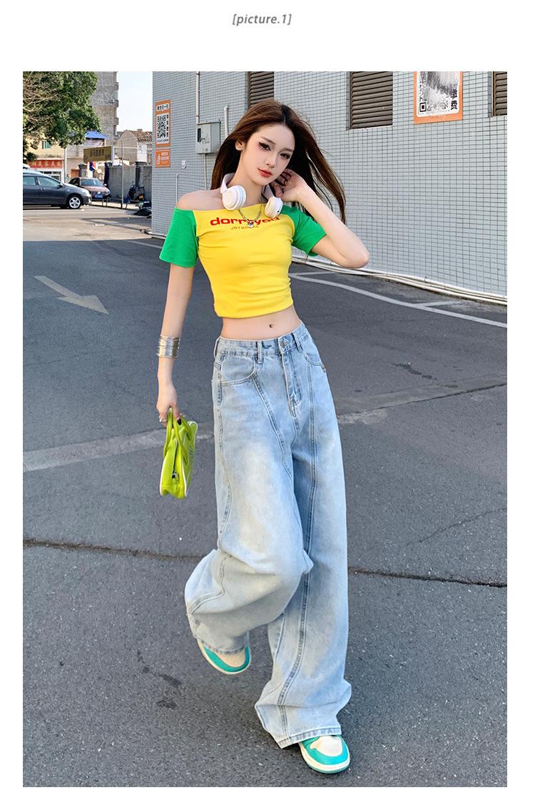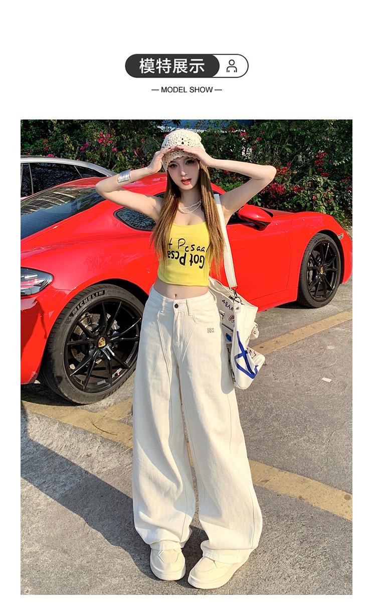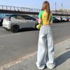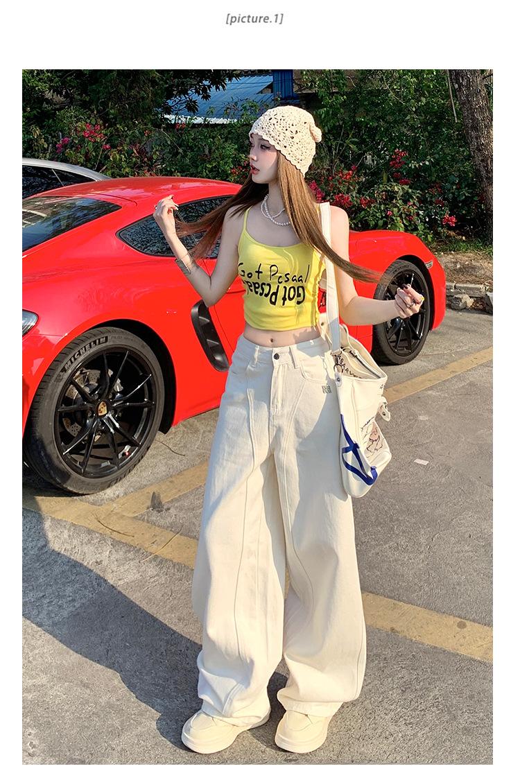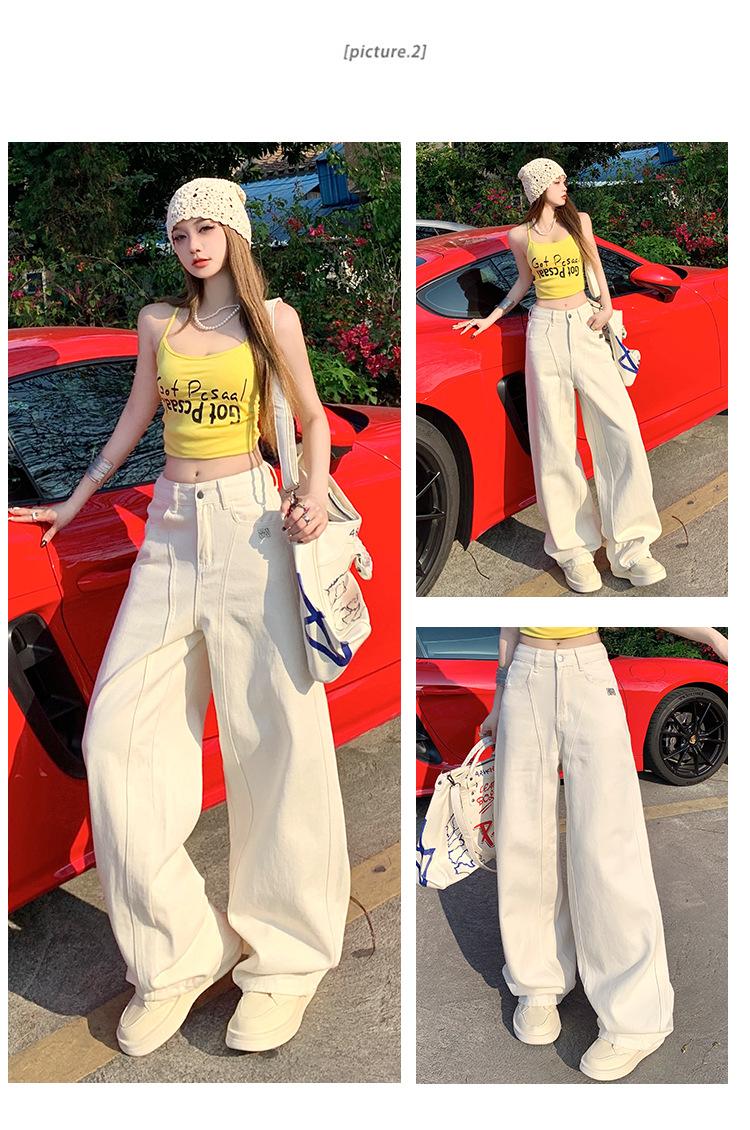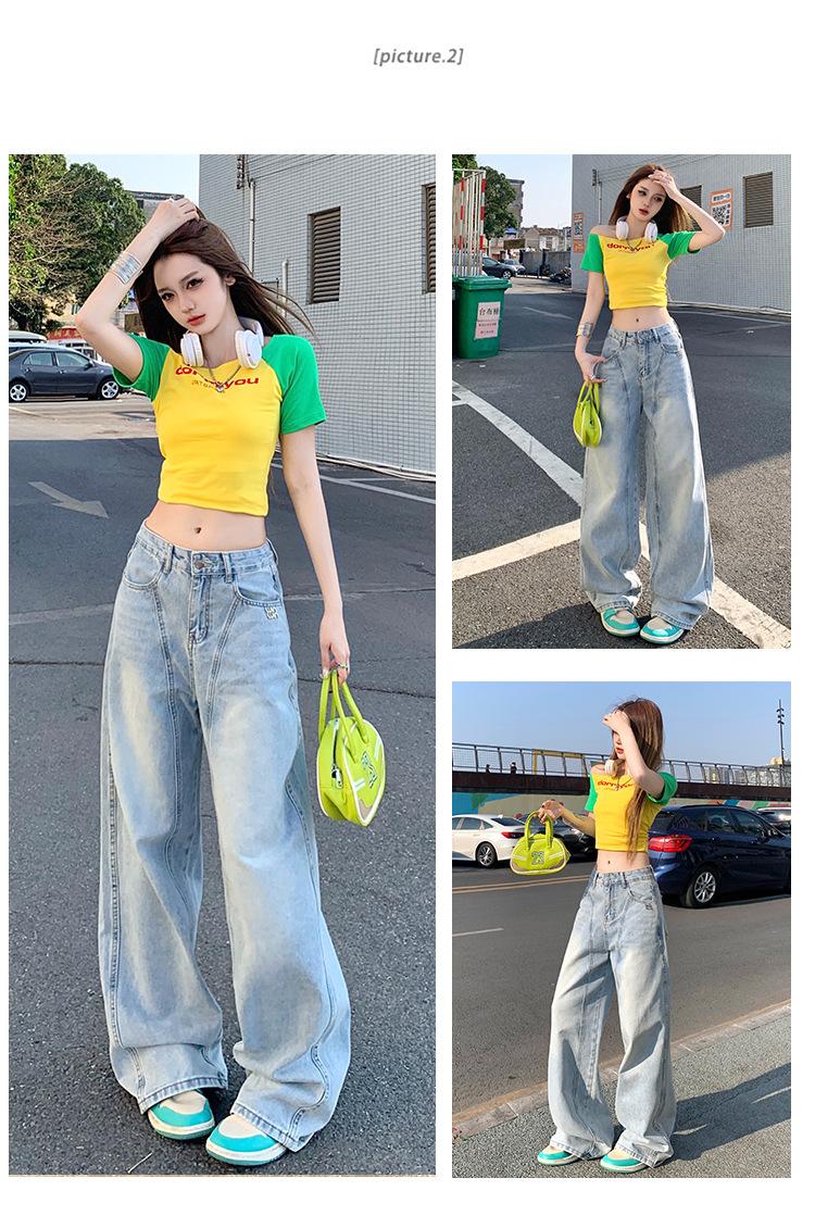 Jeans de pierna ancha azul claro para mujer 2025 verano petite delgados rectos de talle alto drapeados adelgazantes pantalones largos hasta el suelo