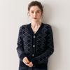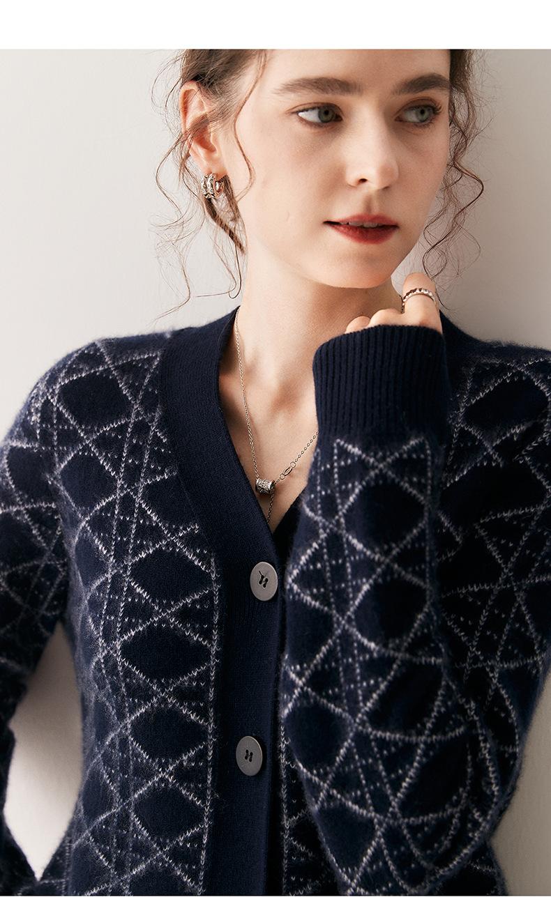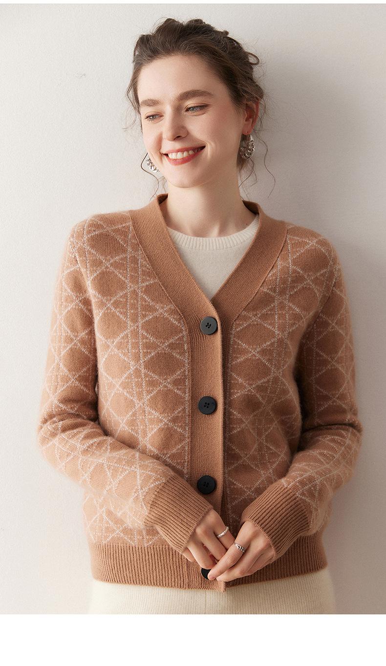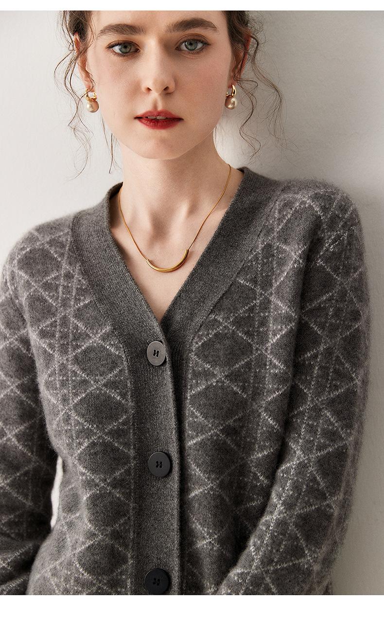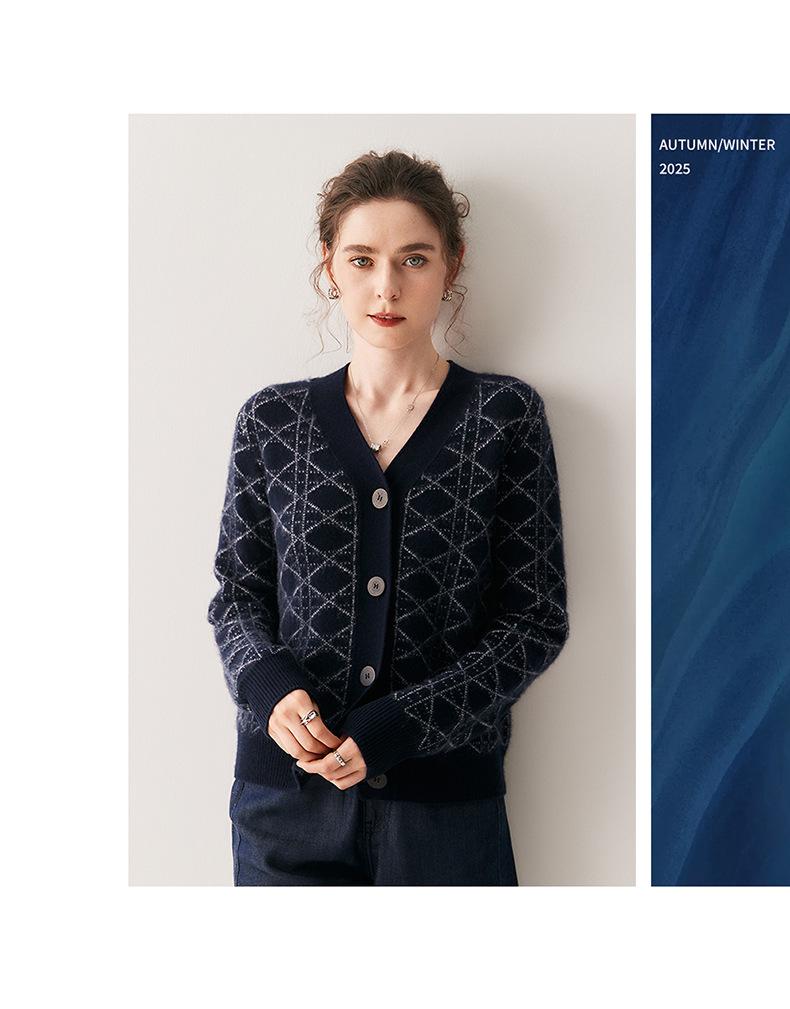 Cárdigan de Punto con Cuello en V Nuevo Otoño/Invierno 2025 Versátil para Mujer Casual Suelto Estampado de Diamantes Abrigo Cárdigan de Punto