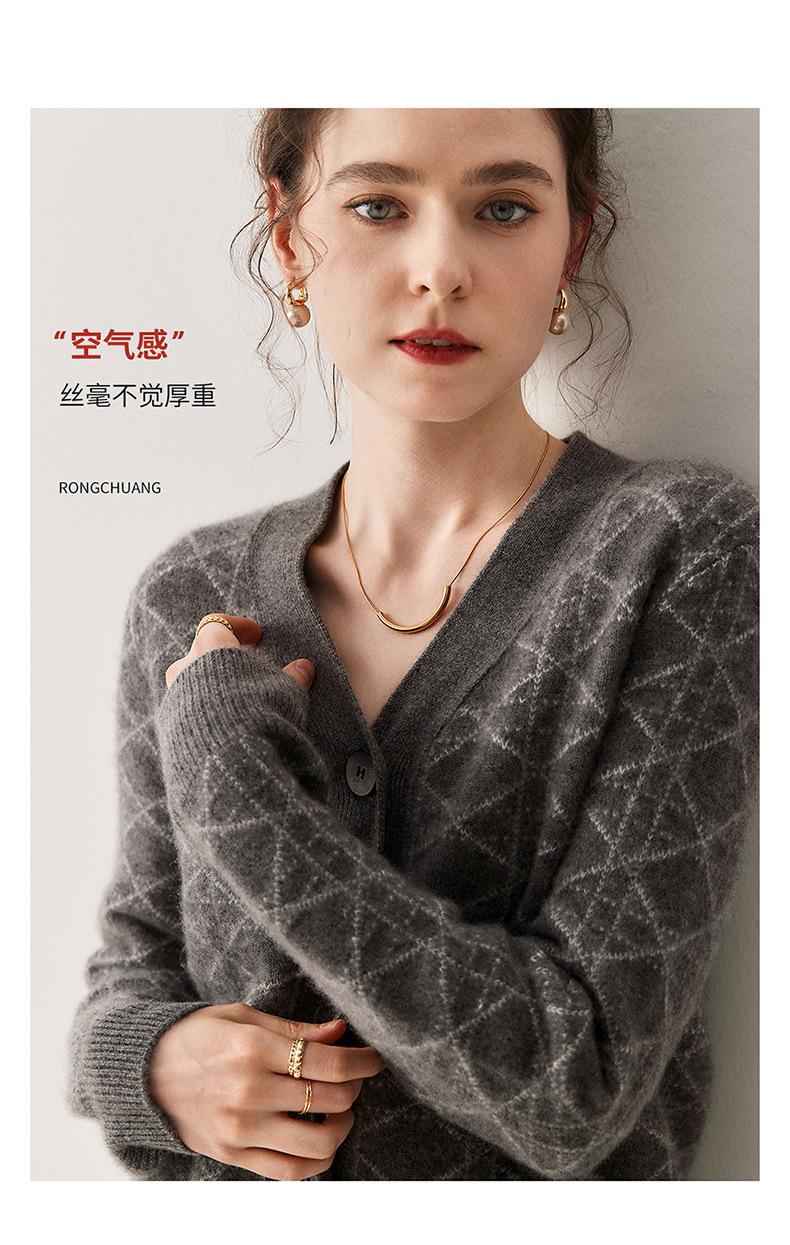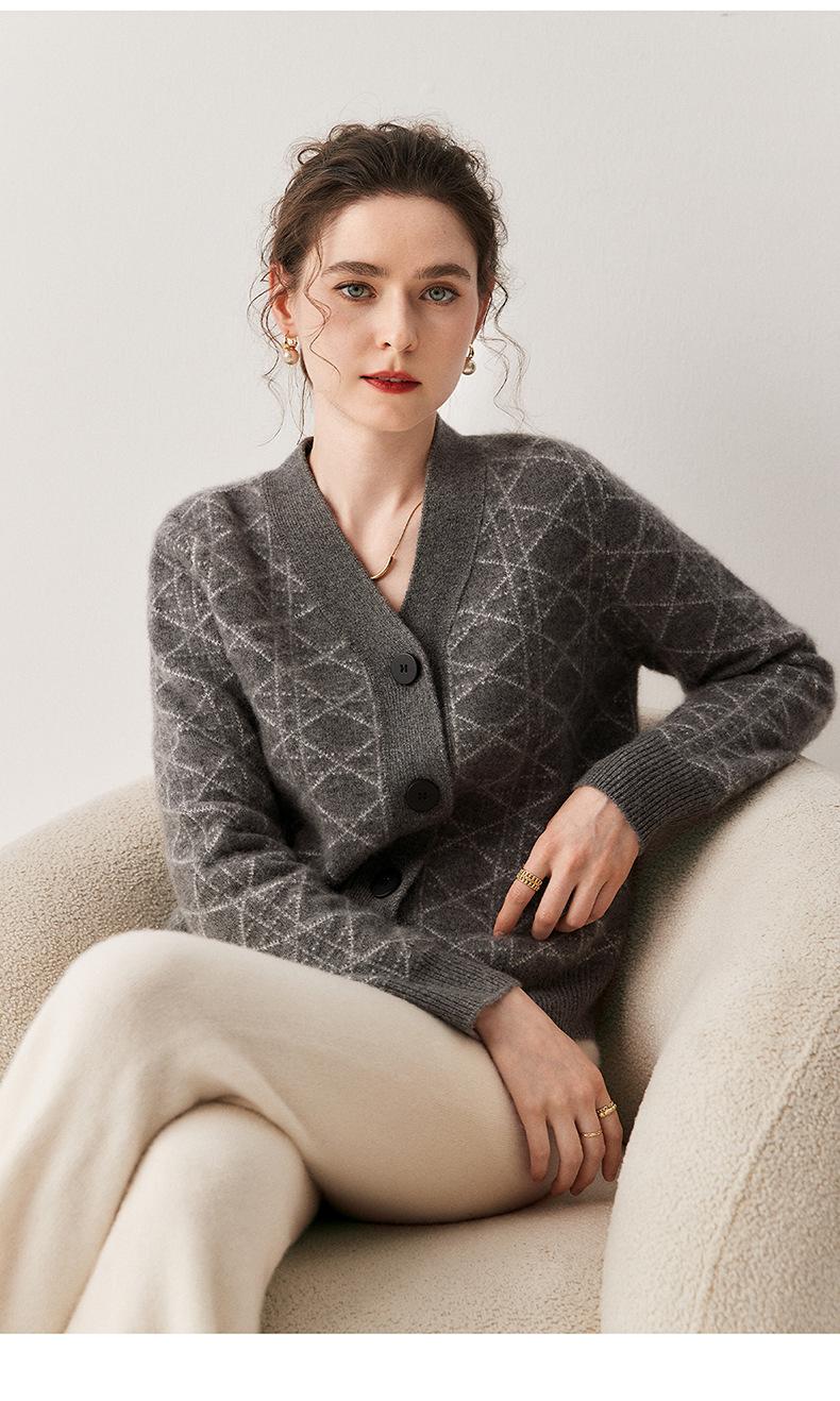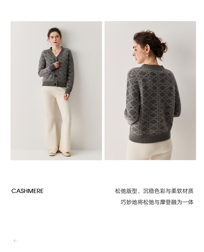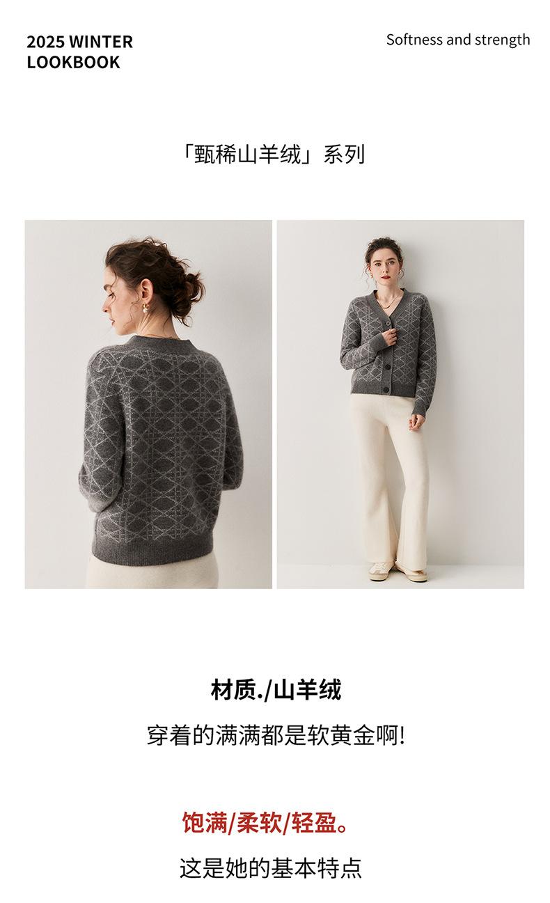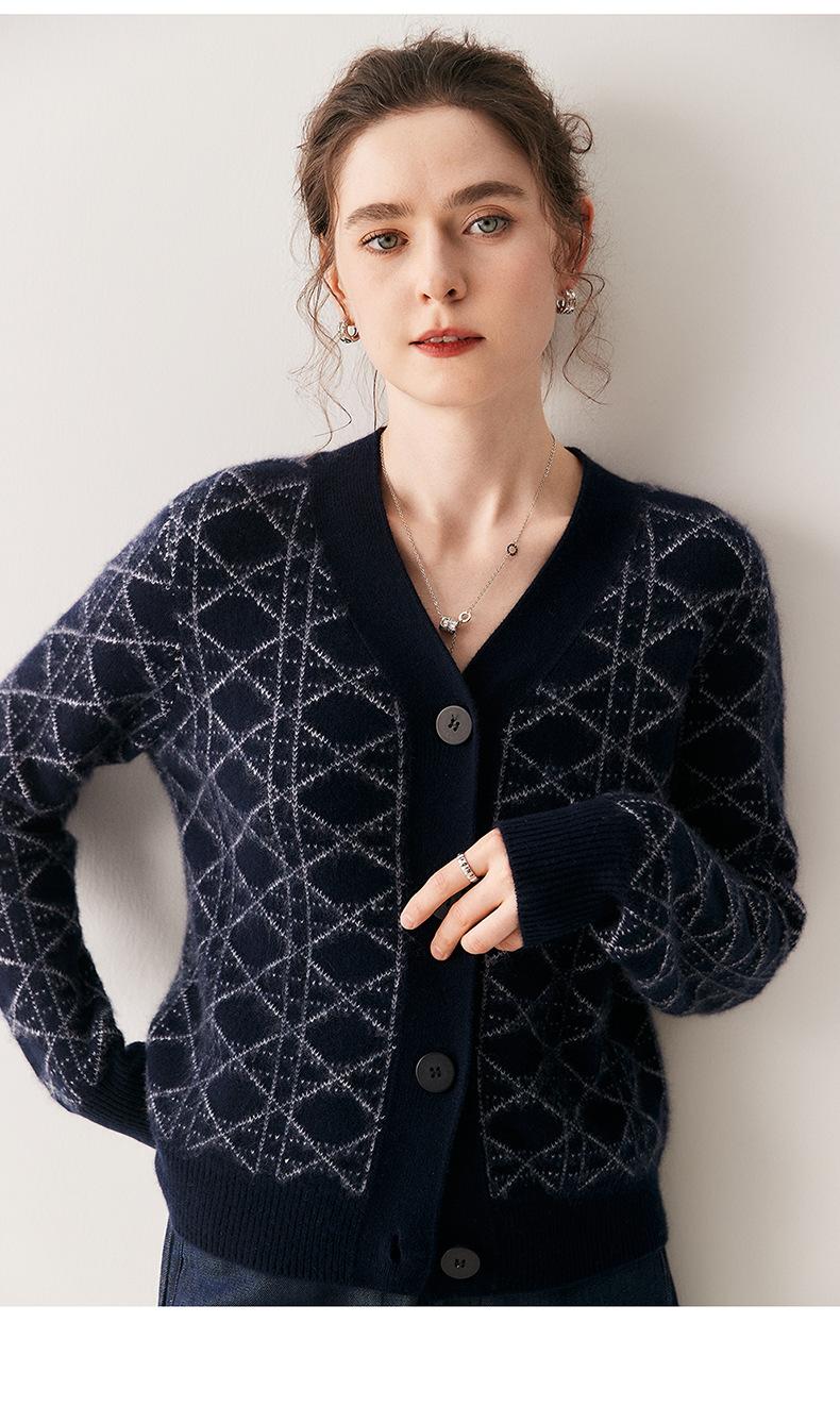Cárdigan de Punto con Cuello en V Nuevo Otoño/Invierno 2025 Versátil para Mujer Casual Suelto Estampado de Diamantes Abrigo Cárdigan de Punto