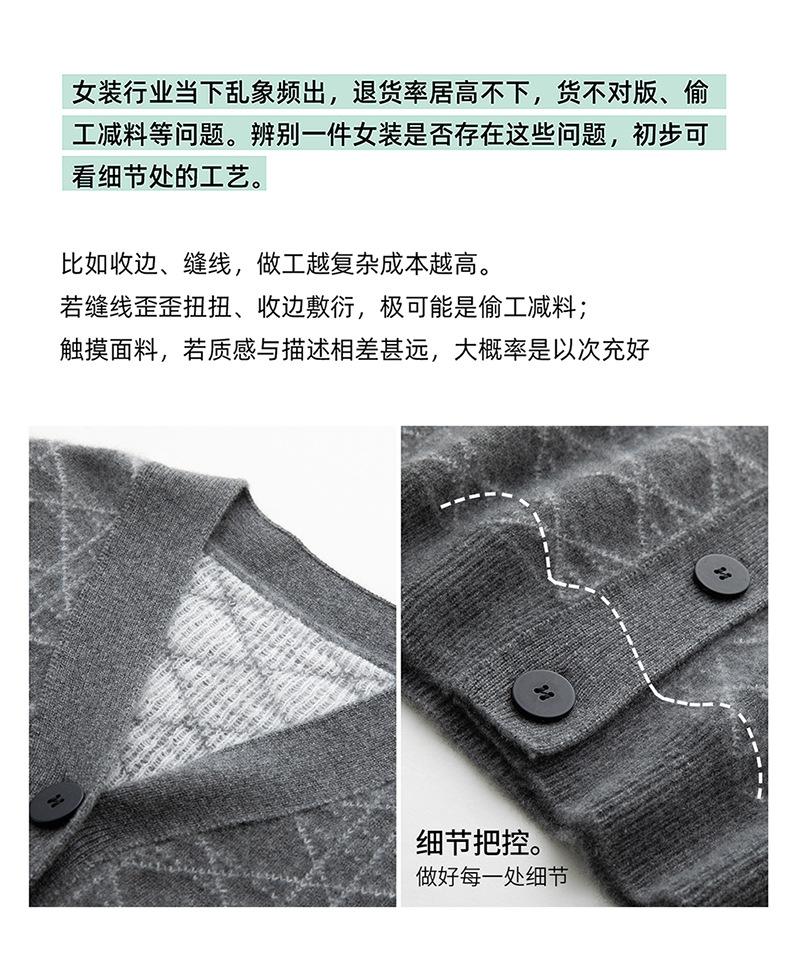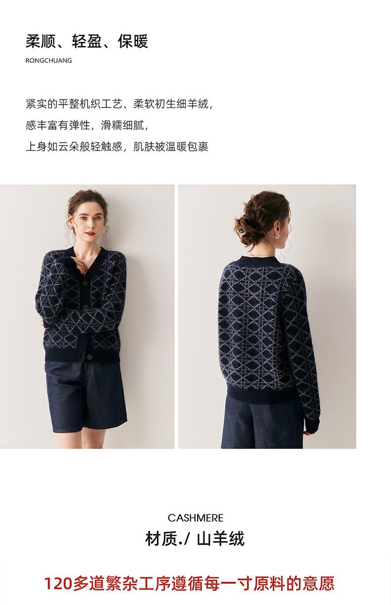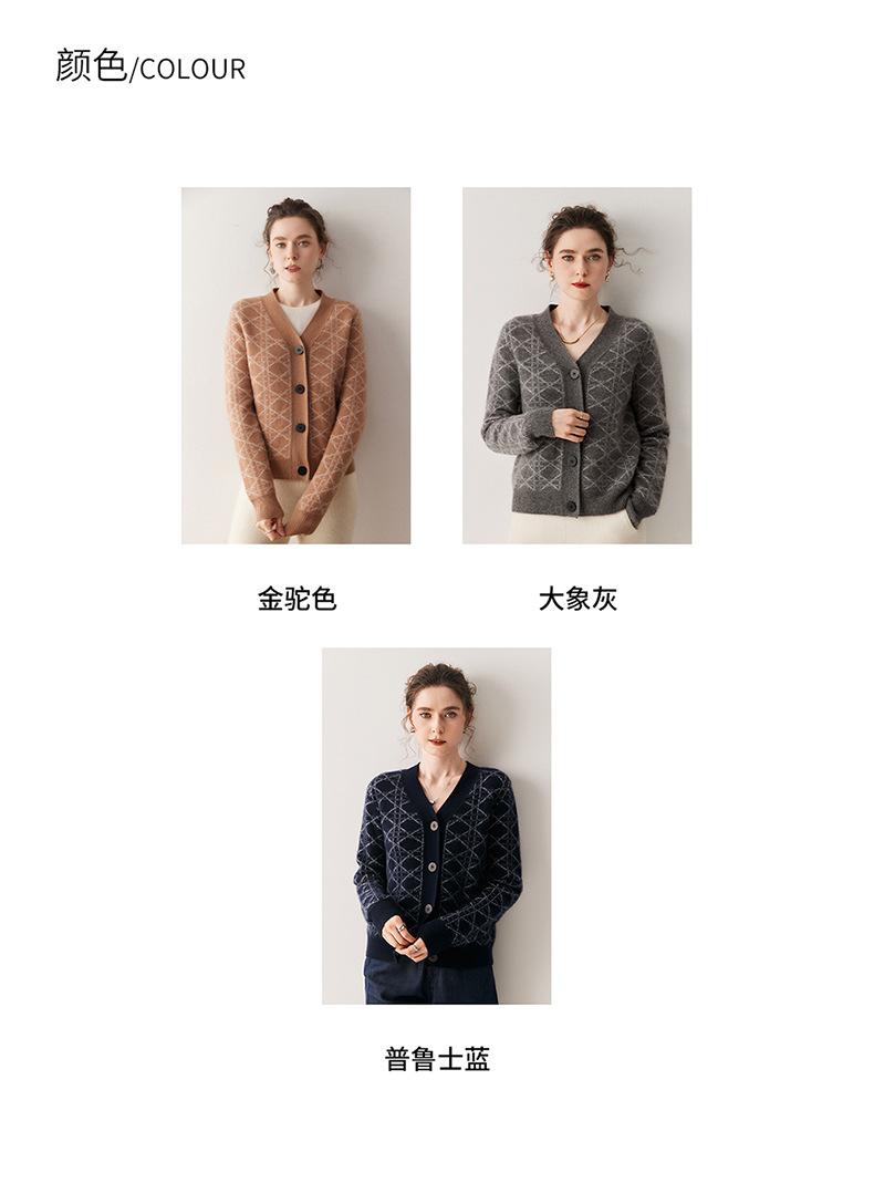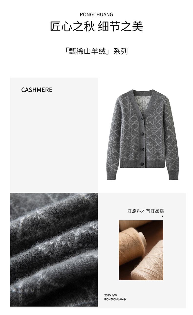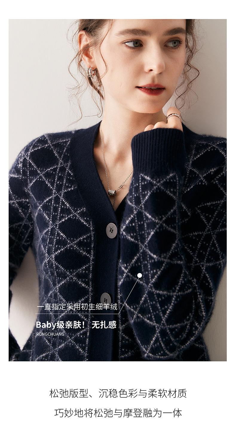 Cárdigan de Punto con Cuello en V Nuevo Otoño/Invierno 2025 Versátil para Mujer Casual Suelto Estampado de Diamantes Abrigo Cárdigan de Punto