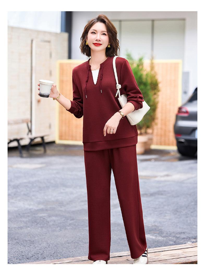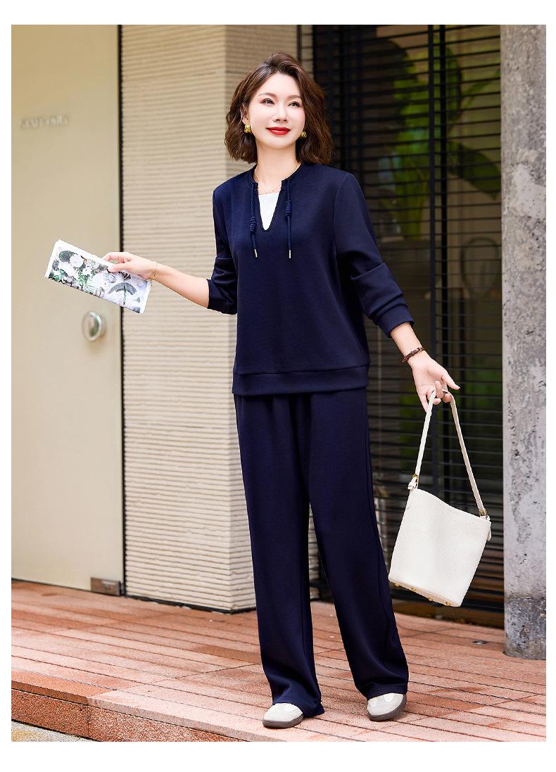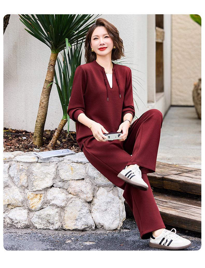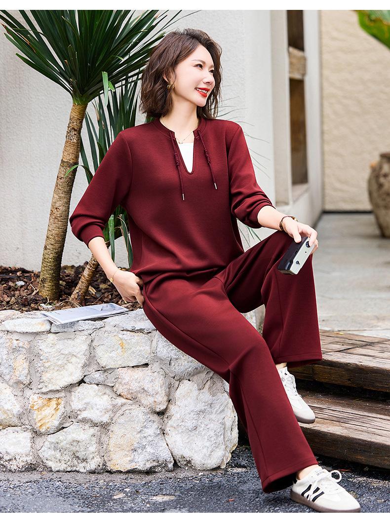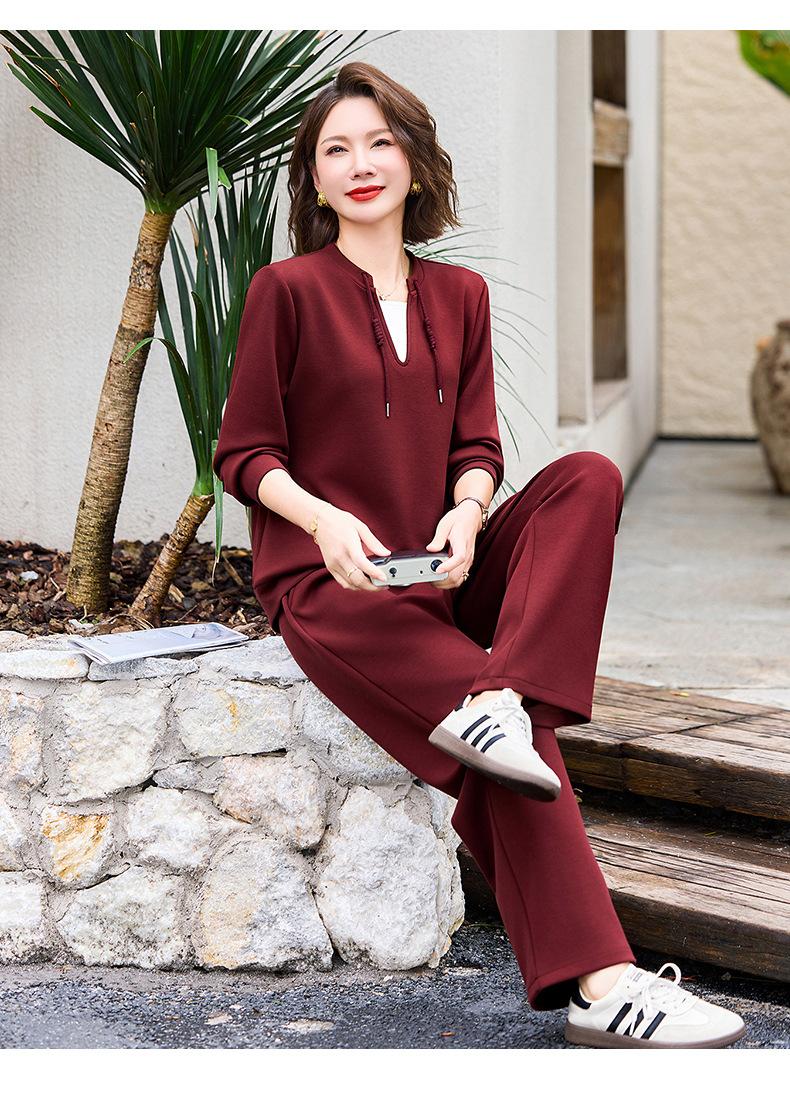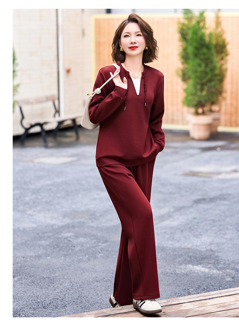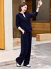 Conjunto Deportivo Casual para Mujer 2025 Otoño Nueva Moda Adelgazante Top de Manga Larga Pantalones de Pierna Ancha Conjunto de Dos Piezas