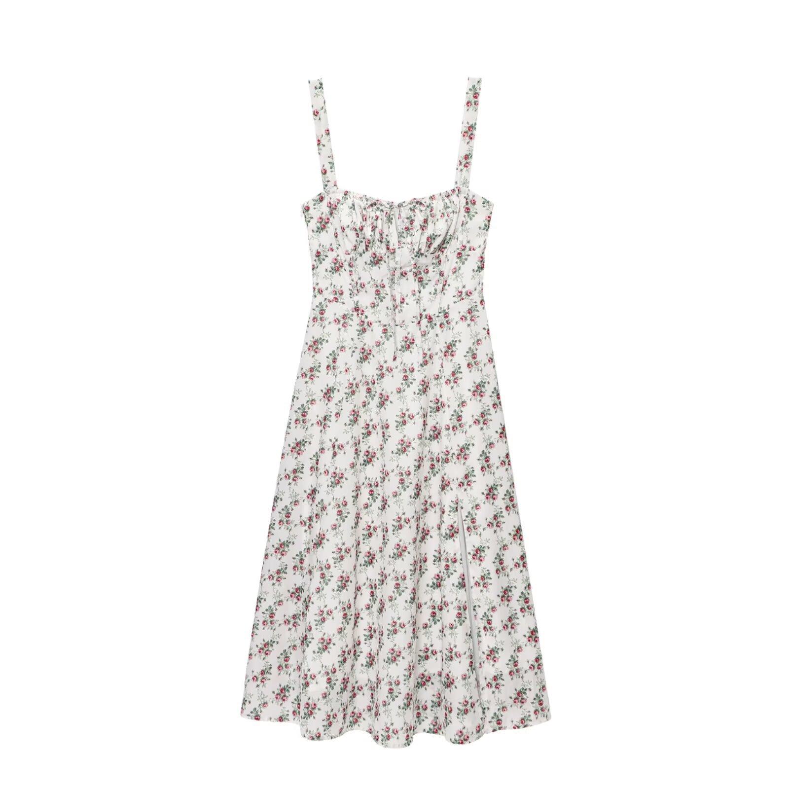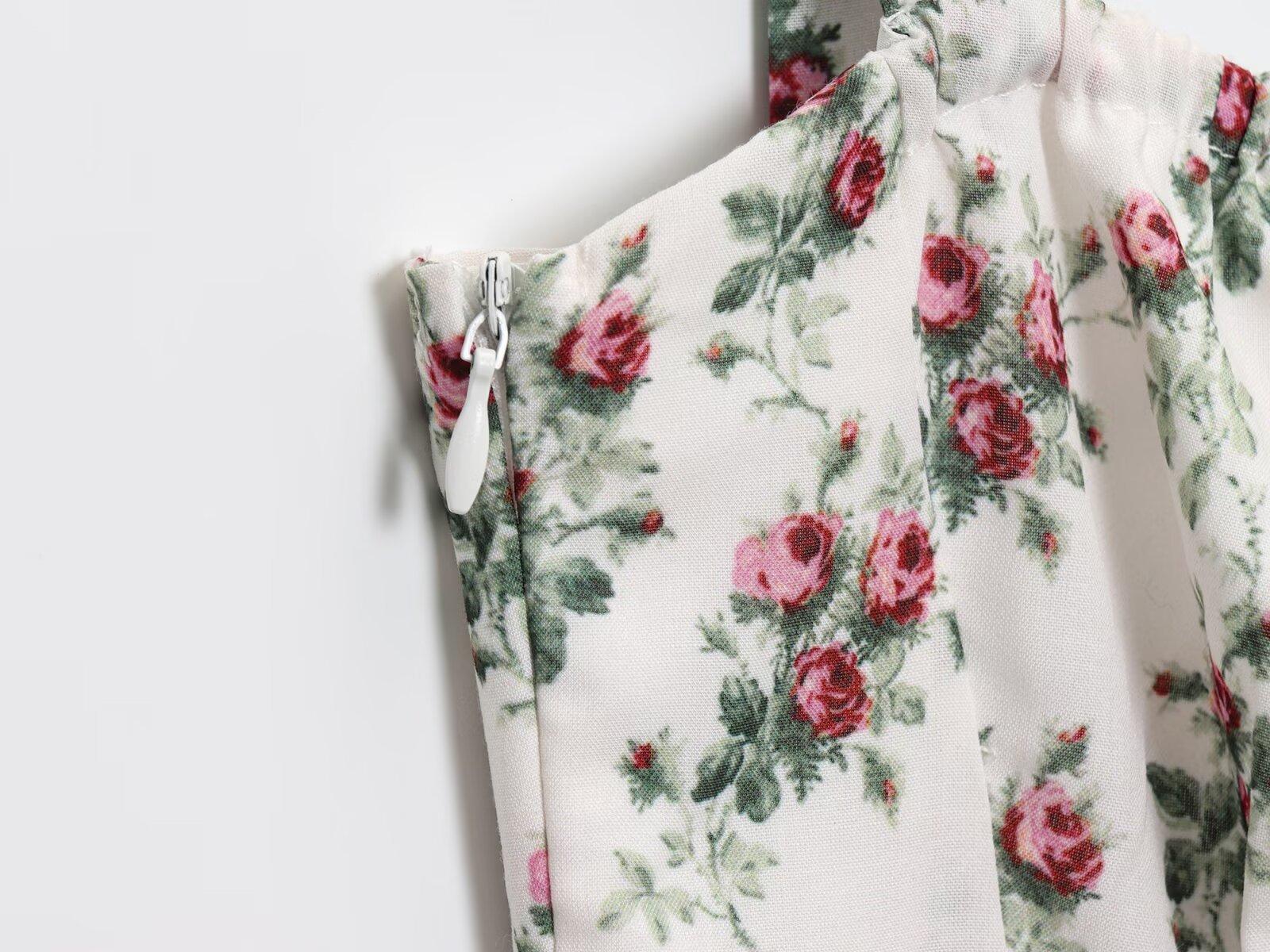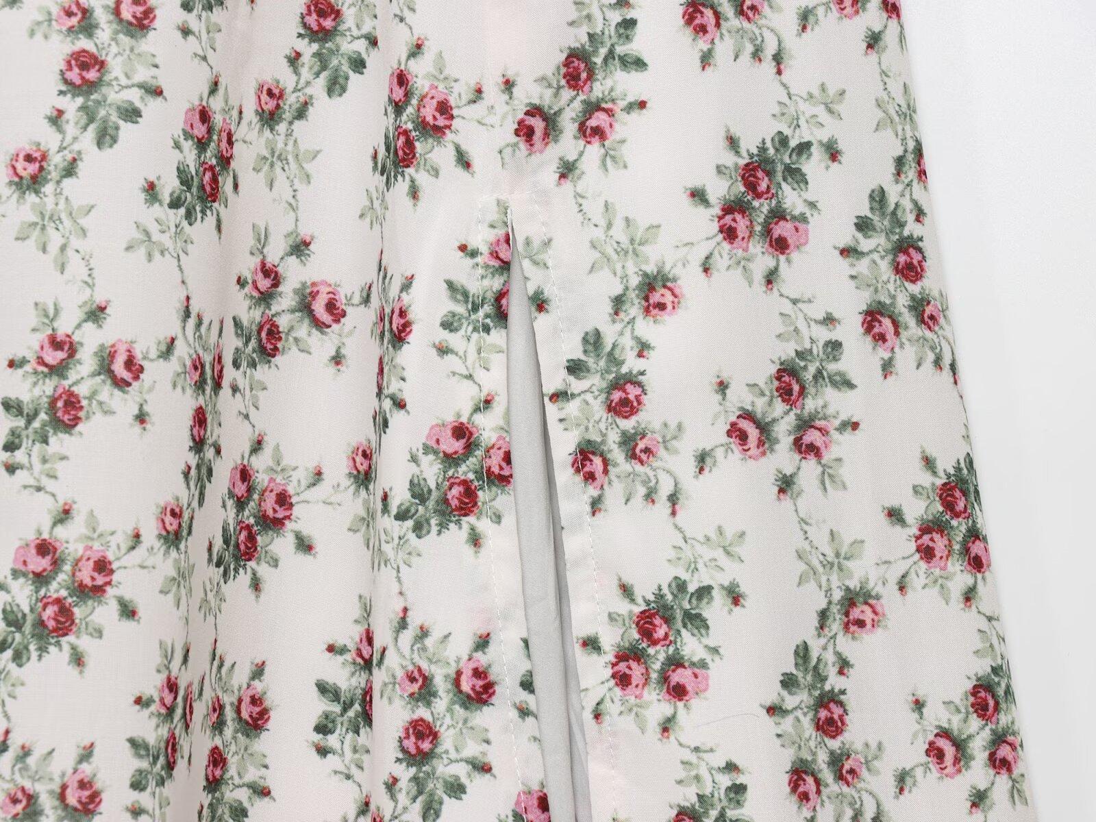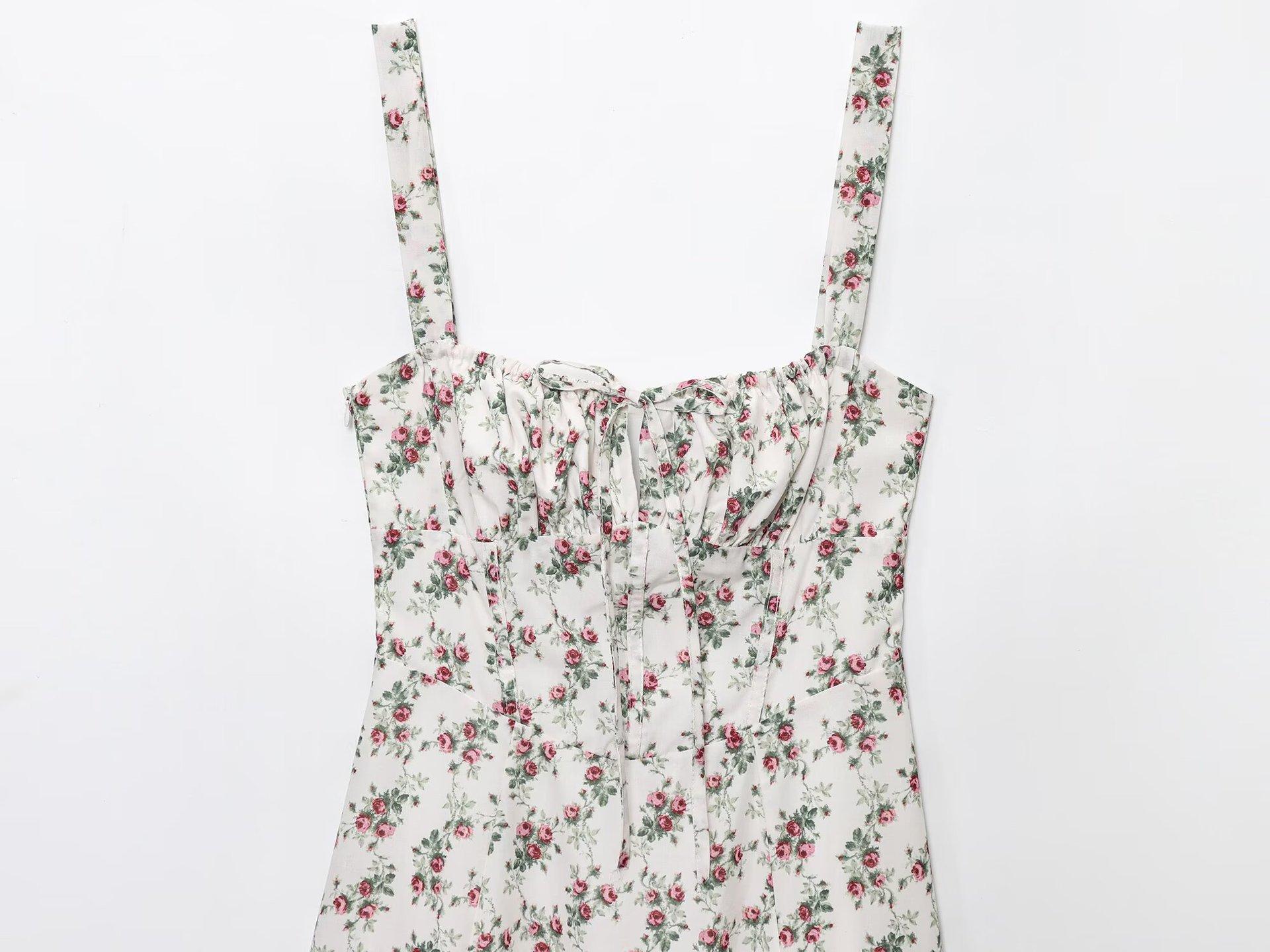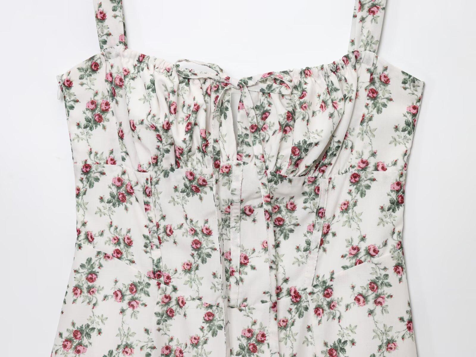 2025 Nueva Ropa de Verano para Mujer Estilo Europeo y Americano Tirantes con Espalda Descubierta Estampado de Rosas Abertura en la Cintura Vestido Suspender