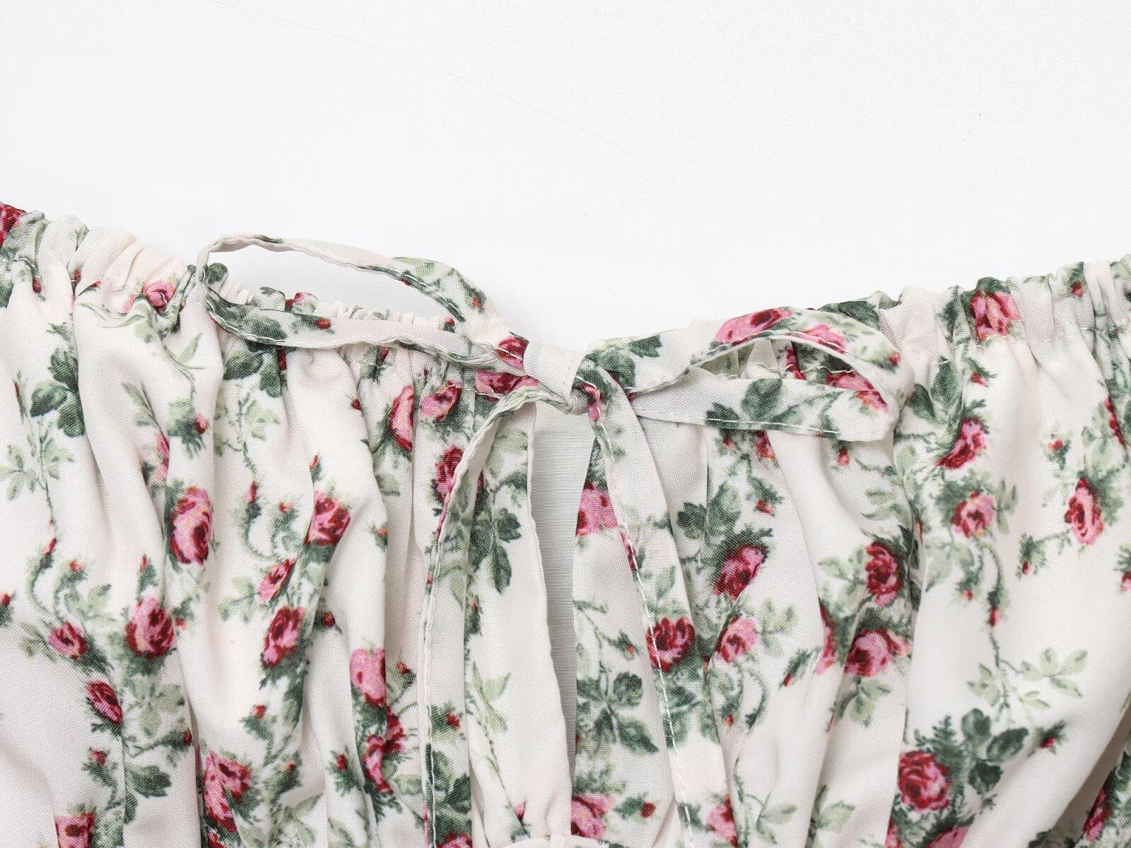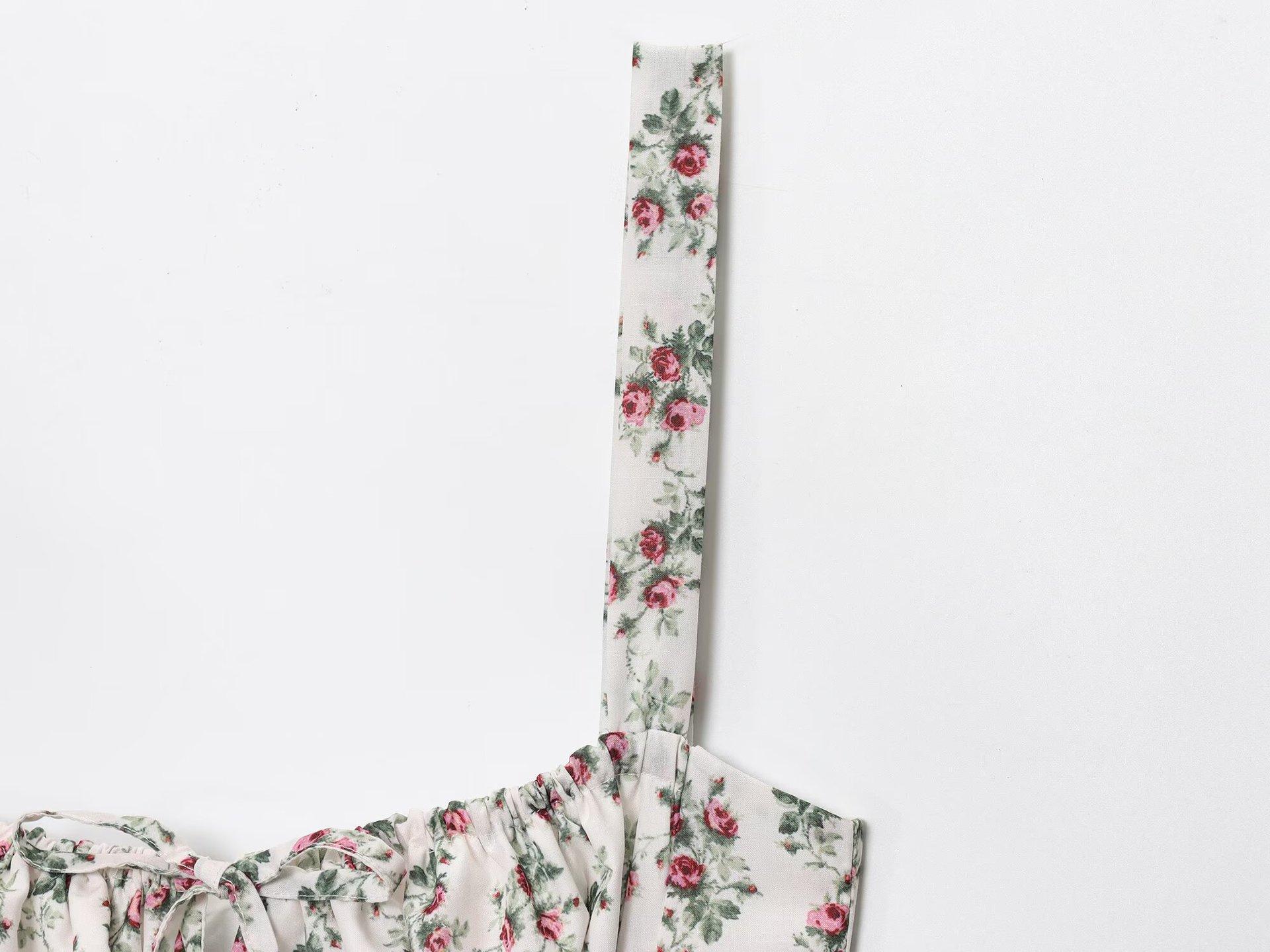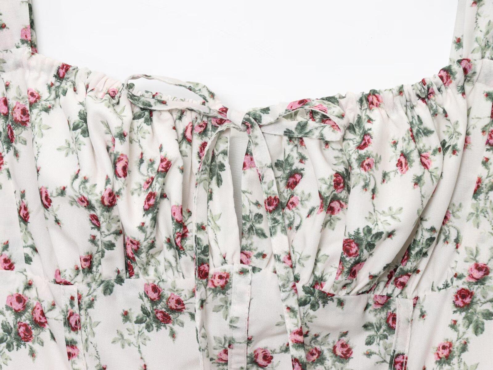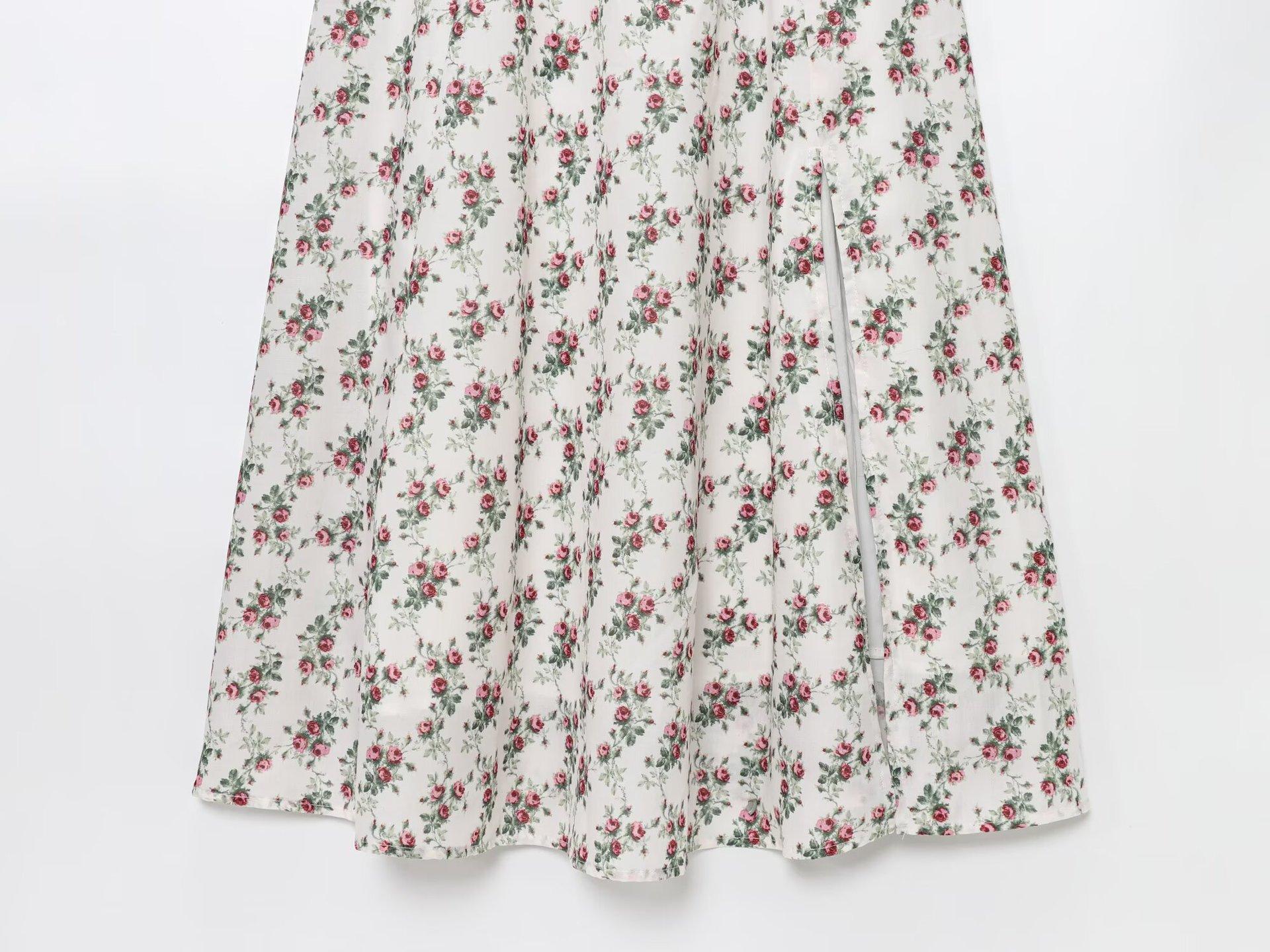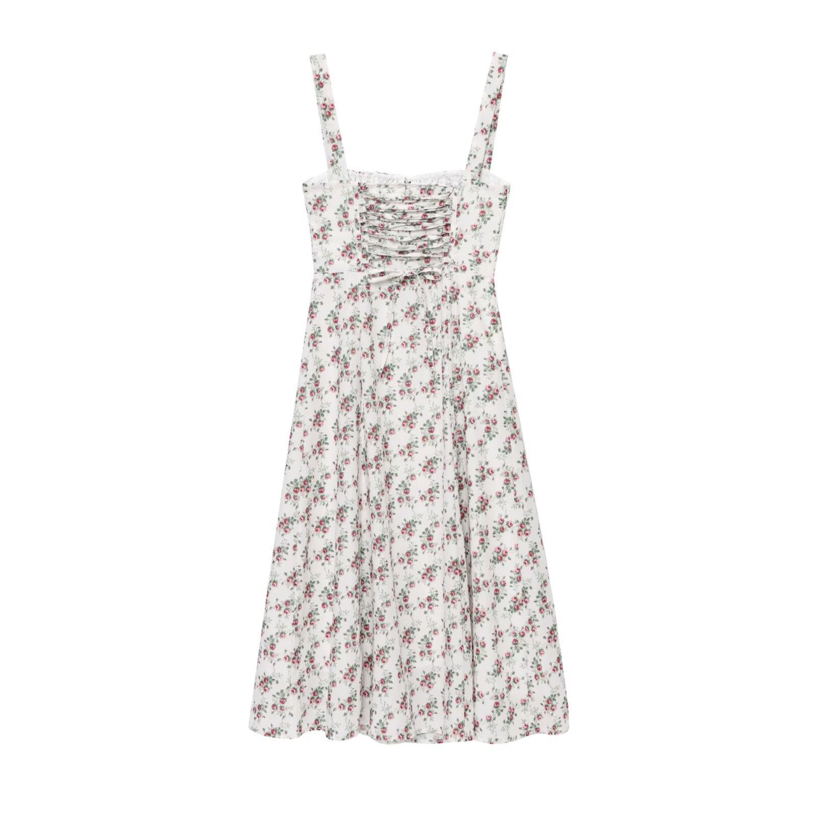 2025 Nueva Ropa de Verano para Mujer Estilo Europeo y Americano Tirantes con Espalda Descubierta Estampado de Rosas Abertura en la Cintura Vestido Suspender