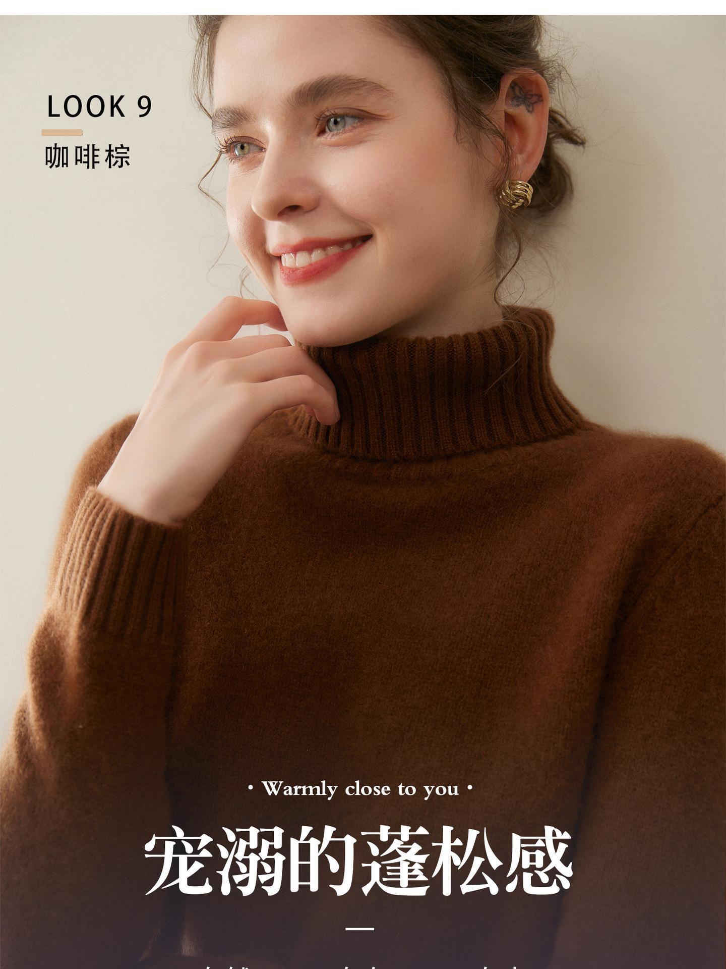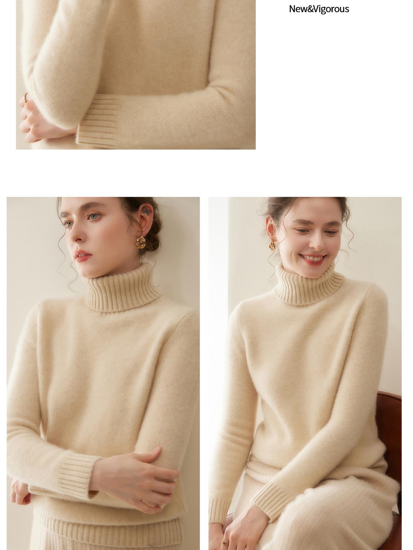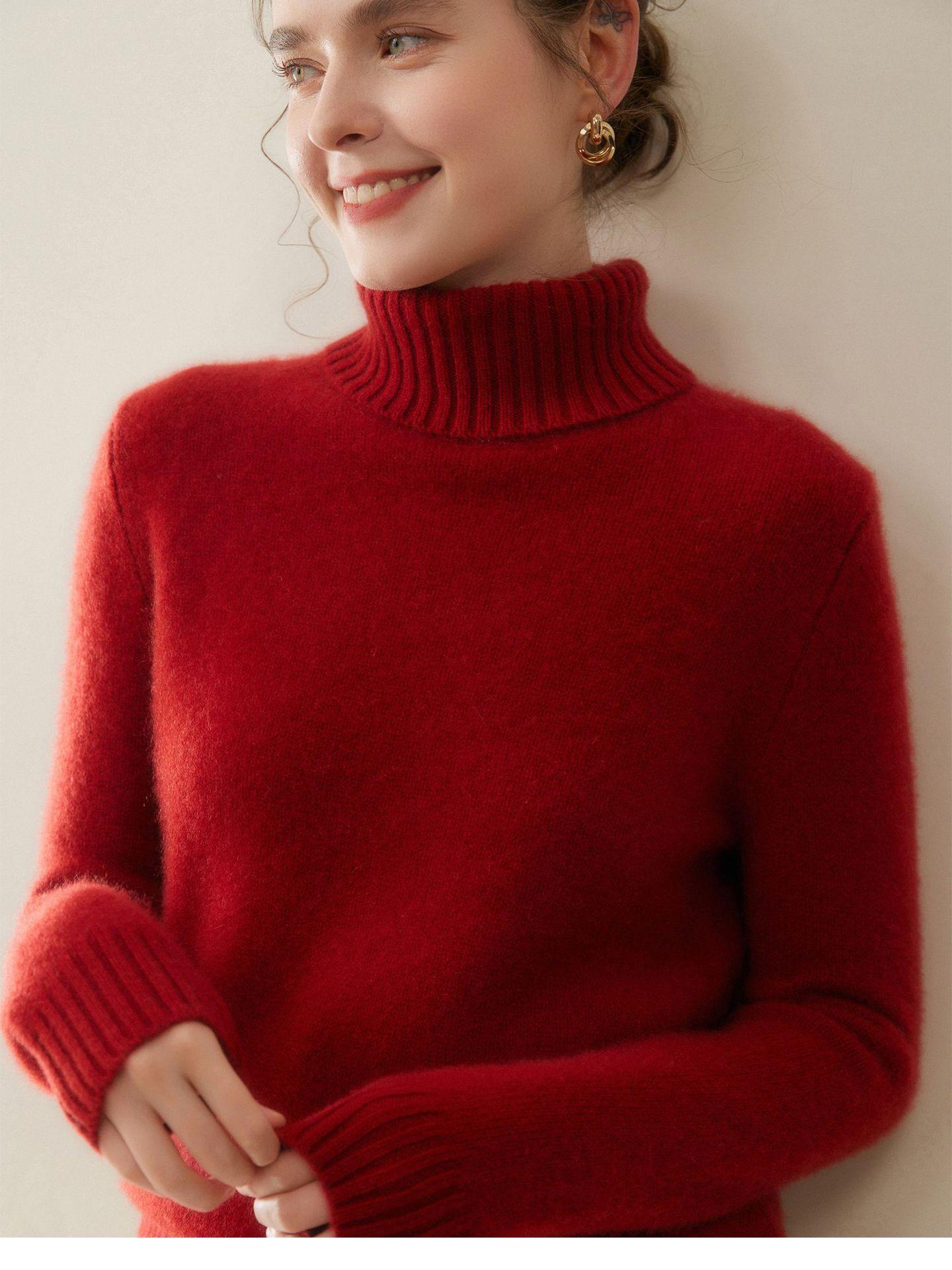 Suéter de Cachemira de Cuello Alto para Mujer 2025 Otoño/Invierno Grueso Color Sólido Cuello Alto Jersey Tejido Holgado Adelgazante Capa Base Ropa Interior