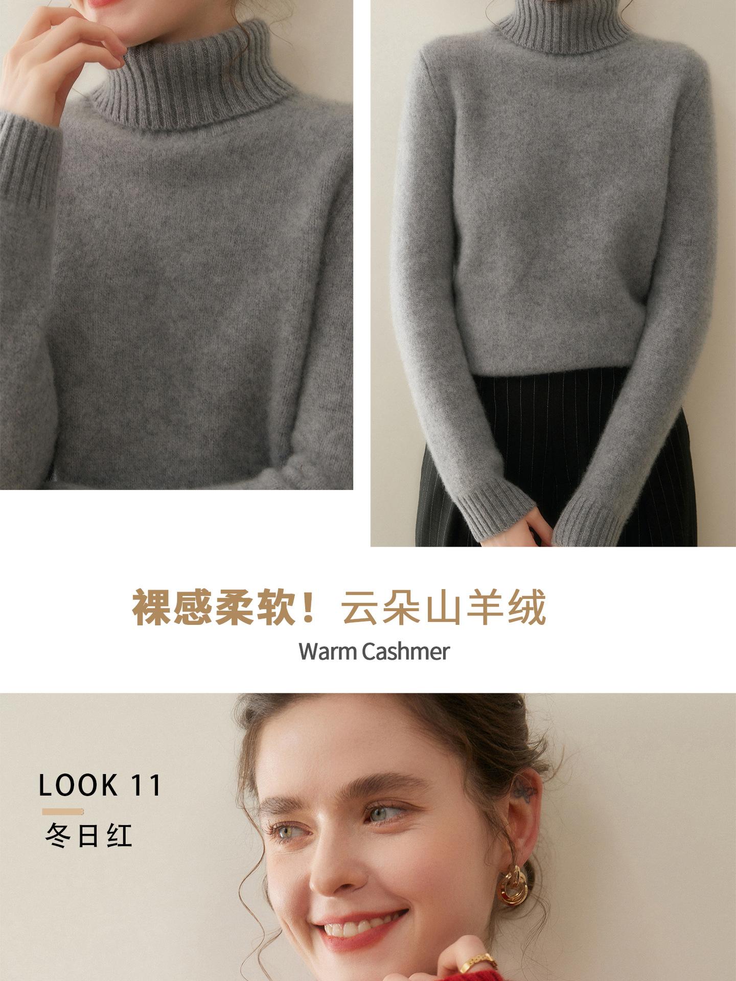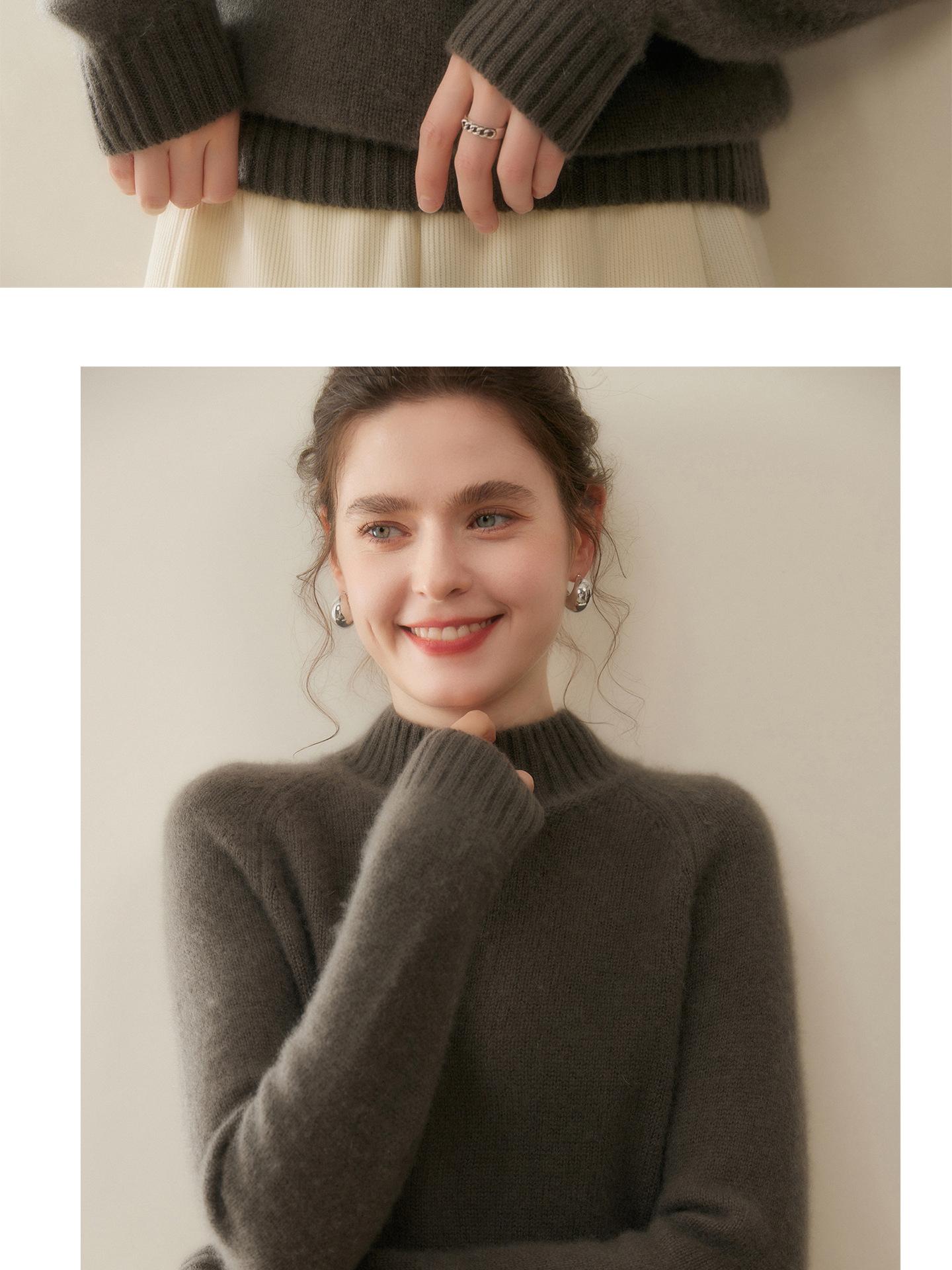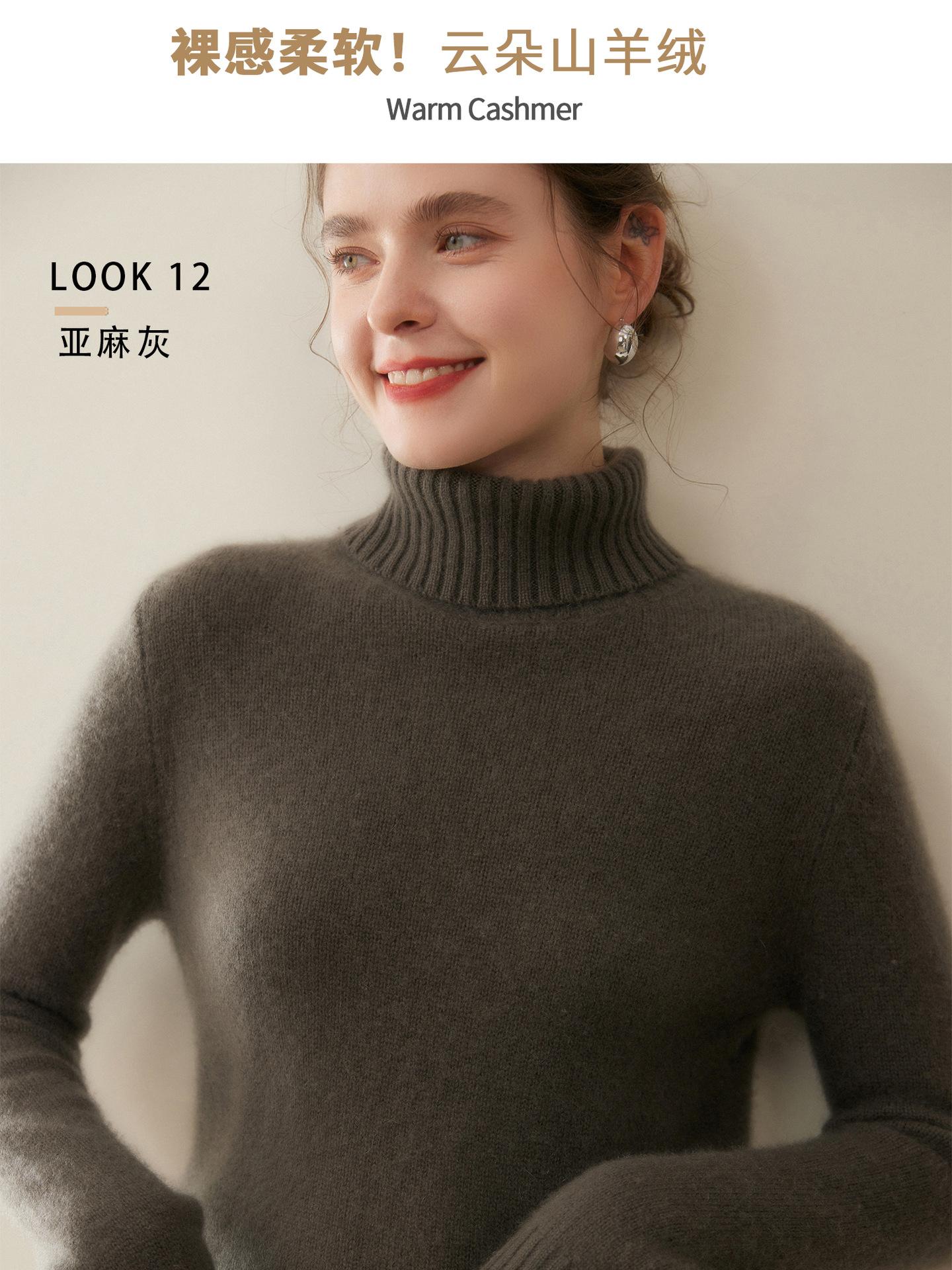 Suéter de Cachemira de Cuello Alto para Mujer 2025 Otoño/Invierno Grueso Color Sólido Cuello Alto Jersey Tejido Holgado Adelgazante Capa Base Ropa Interior