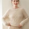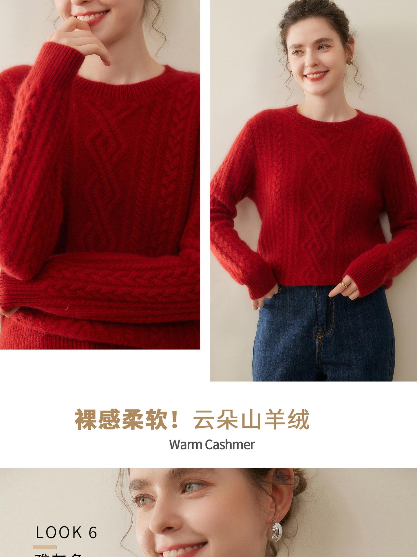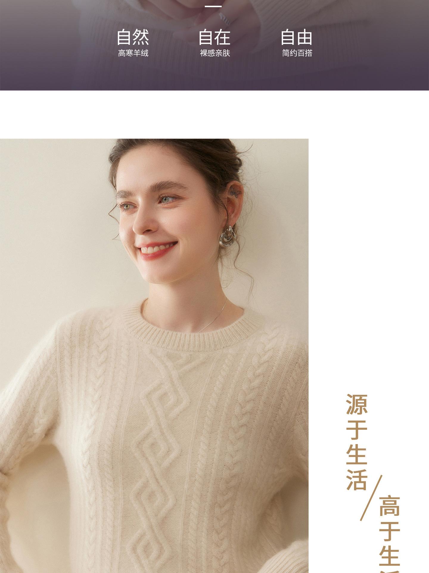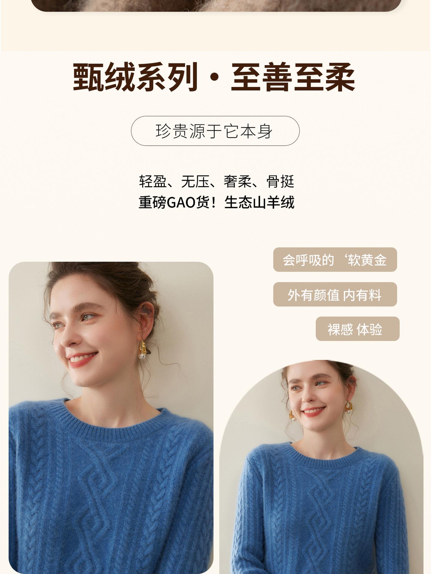 Suéter de cachemira para mujer de cinco agujas de triple hebra engrosado de cuello redondo suéter con diseño jacquard pesado camisa base de manga larga otoño e invierno nuevo