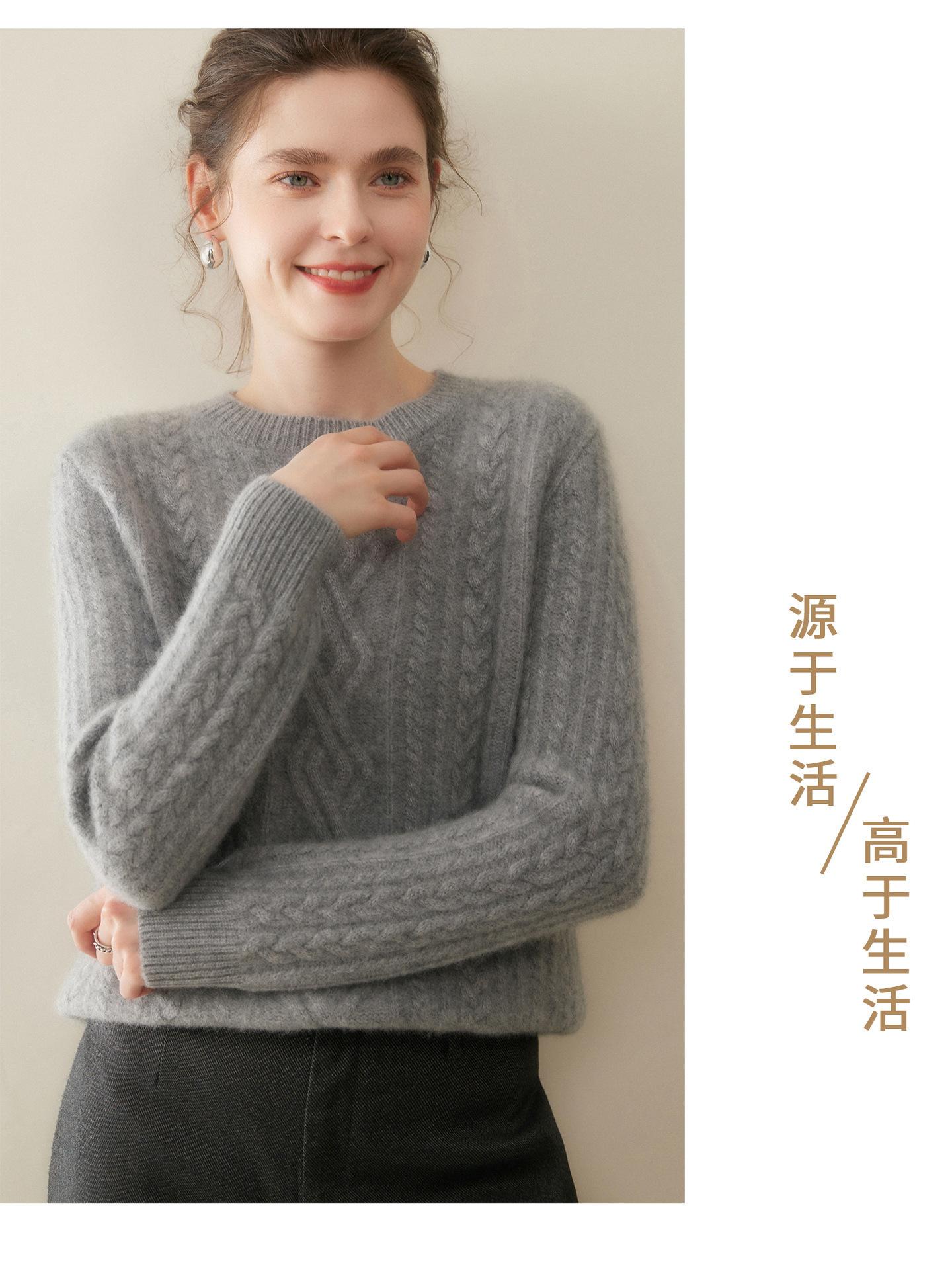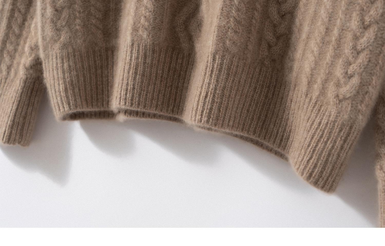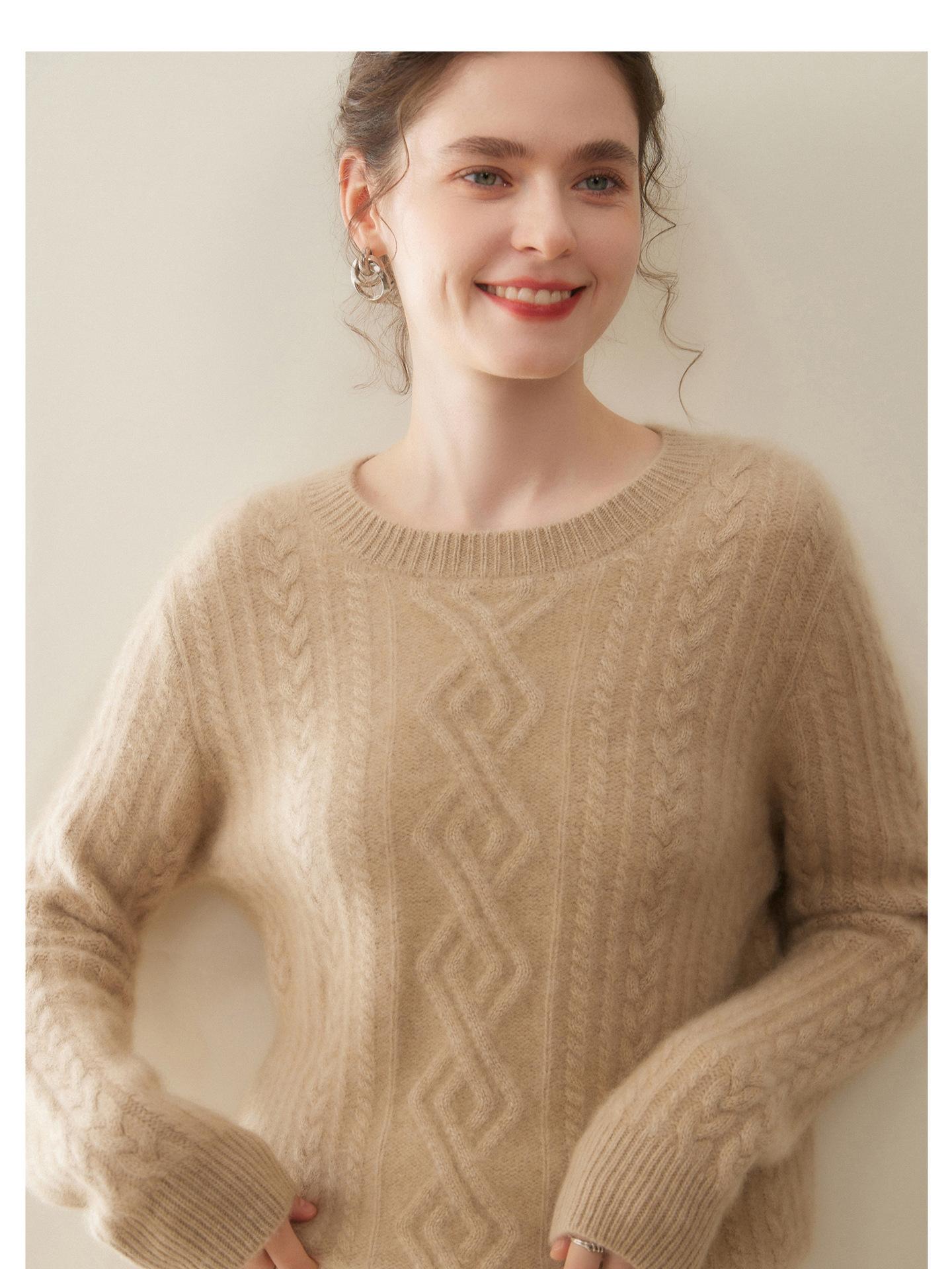 Suéter de Cachemira de Punto Cable de Cuello Redondo para Otoño e Invierno para Mujer, Jersey Holgado, Suéter Grueso Básico de Punto