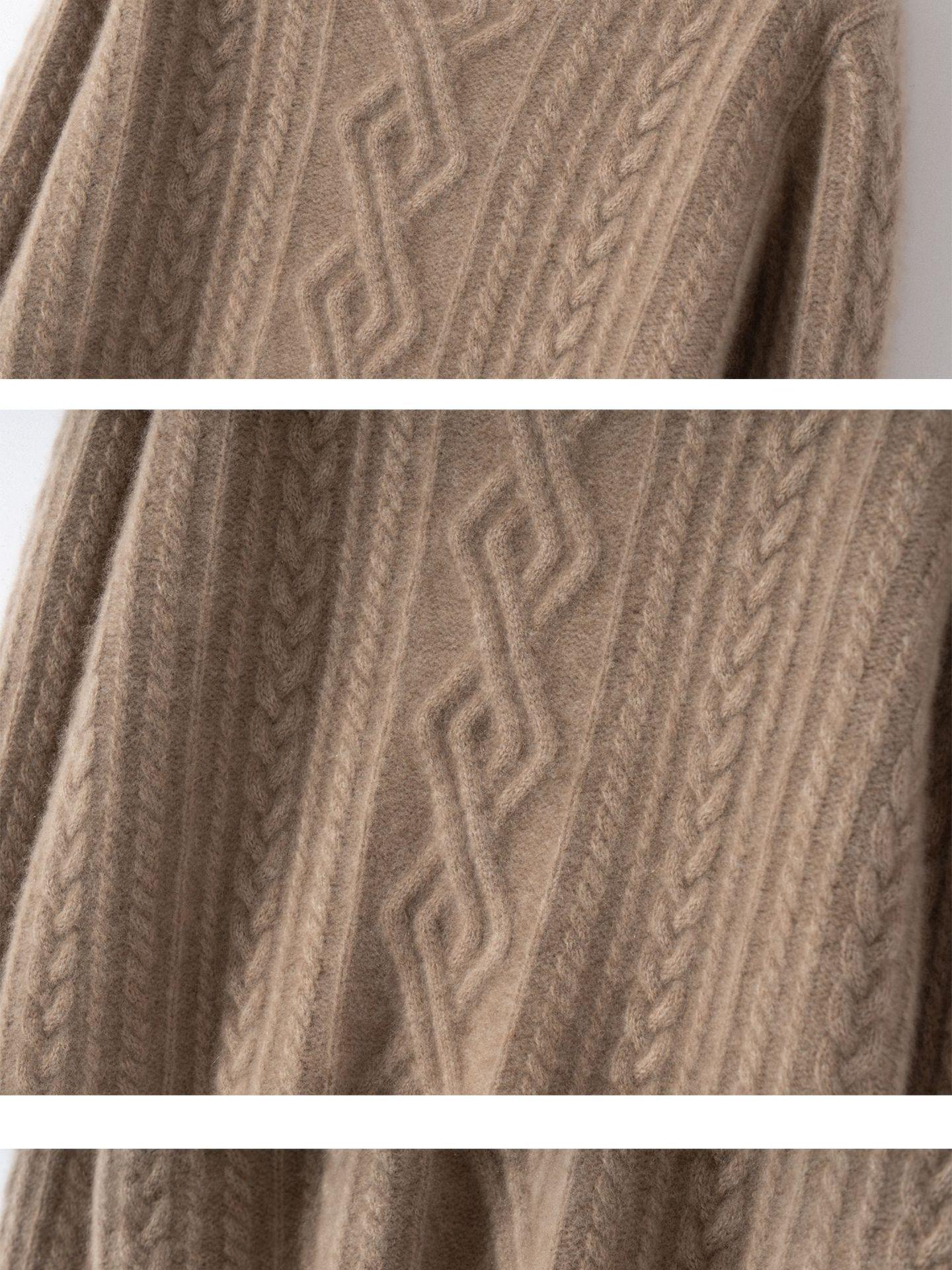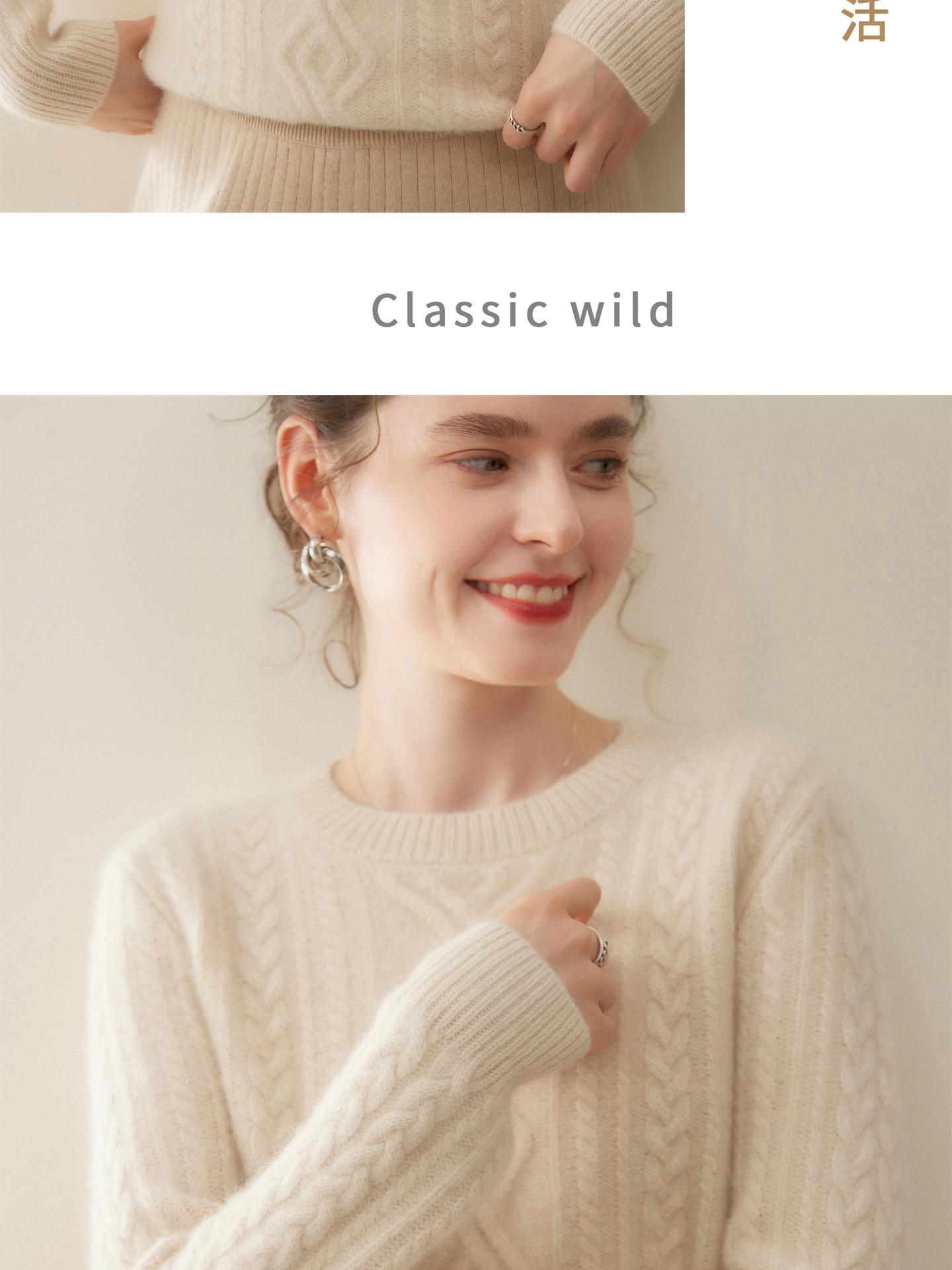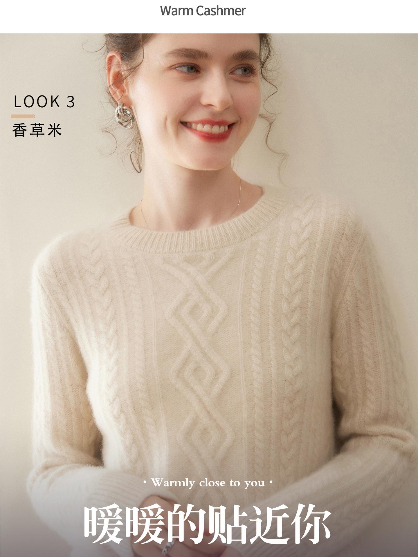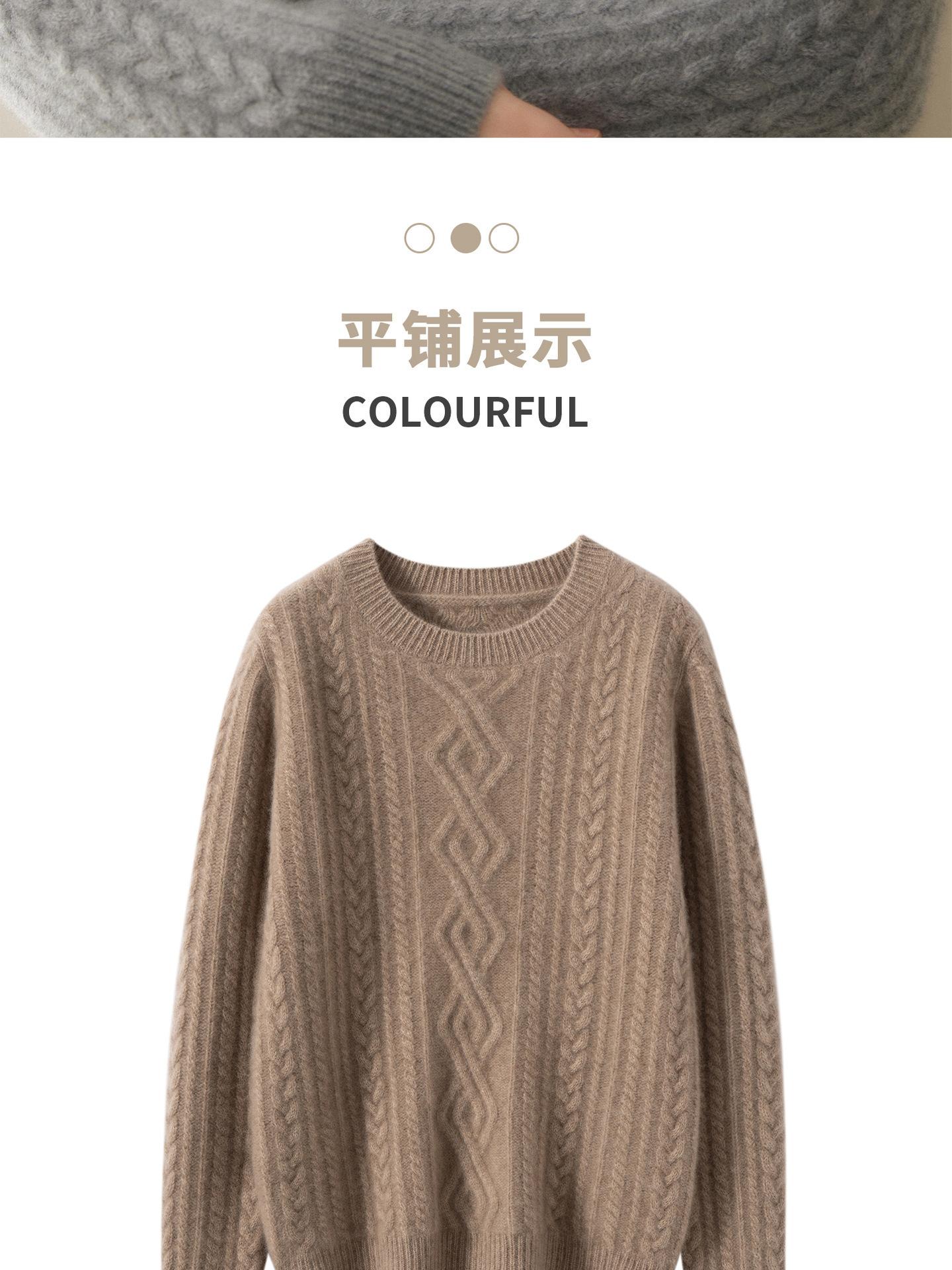 Suéter de Cachemira de Punto Cable de Cuello Redondo para Otoño e Invierno para Mujer, Jersey Holgado, Suéter Grueso Básico de Punto