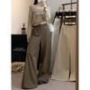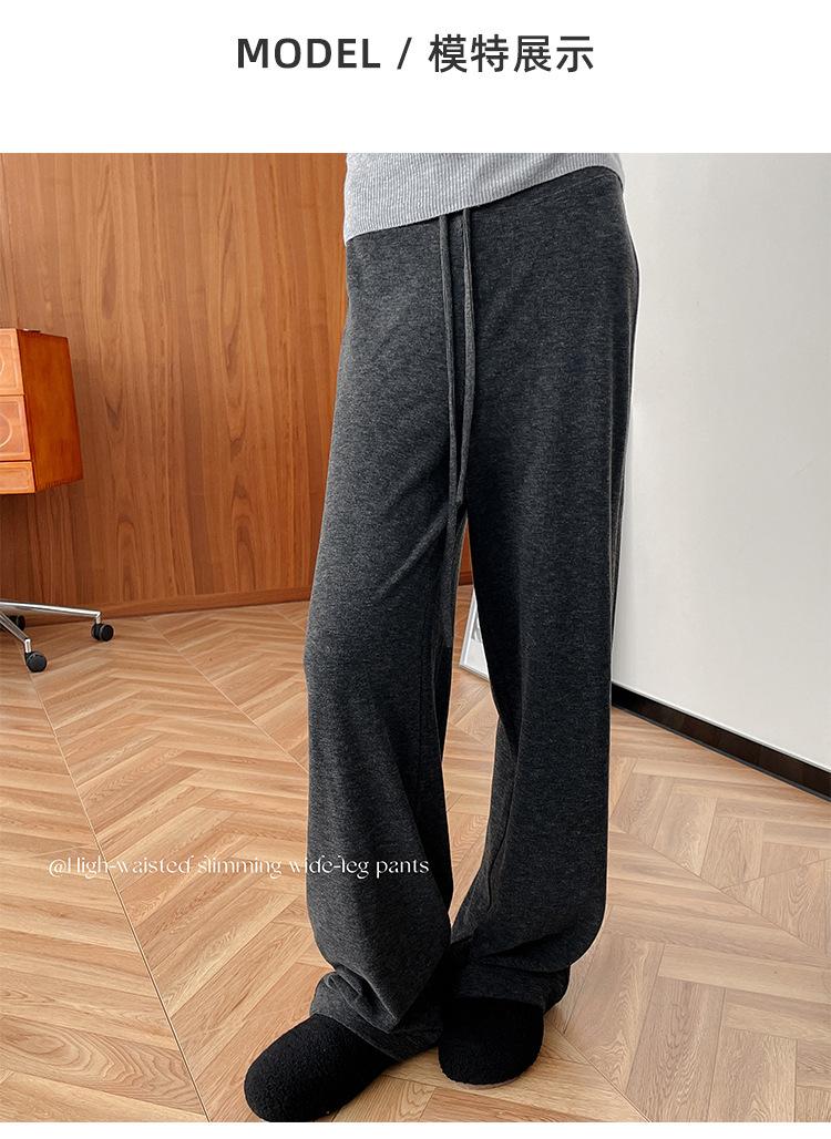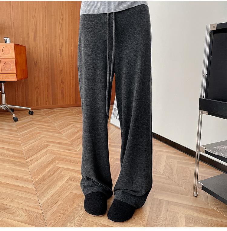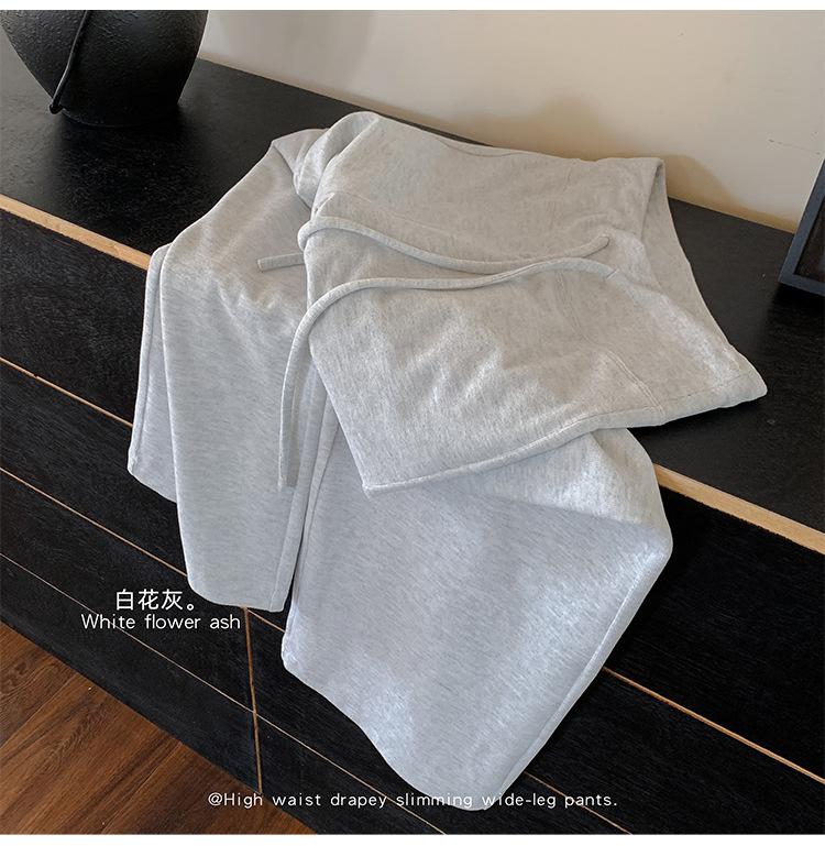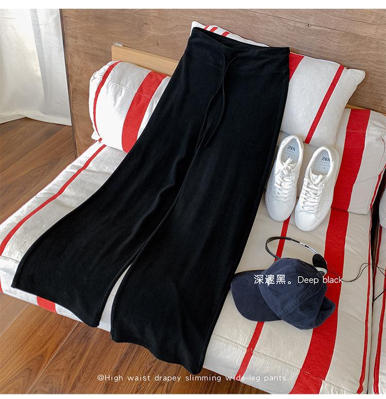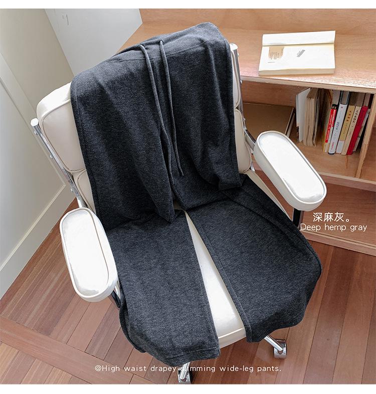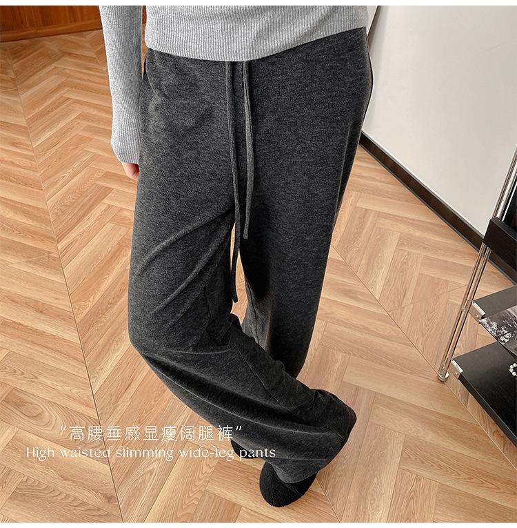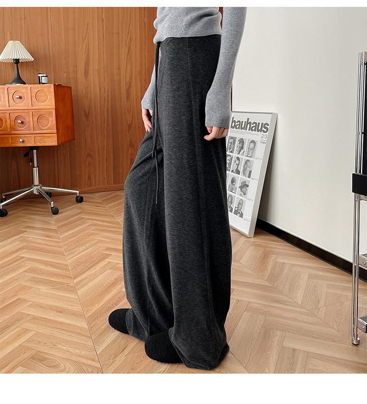 Pantalones Drapey Adelgazantes de Cintura Alta y Pierna Ancha para Mujer Primavera/Otoño Nuevos Pantalones Rectos de Gamuza hasta el Piso Color Sólido con Cordón Casuales Largos