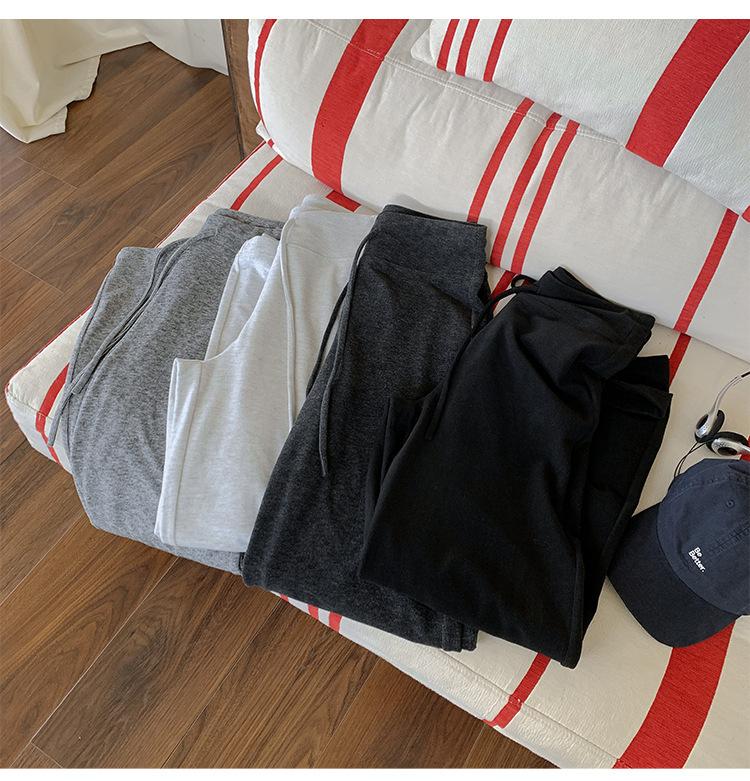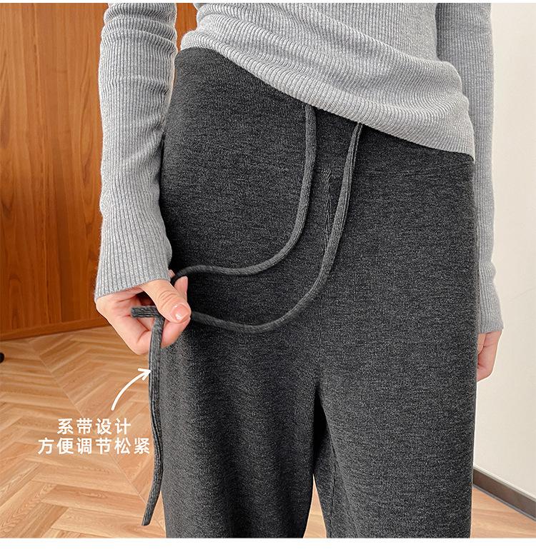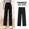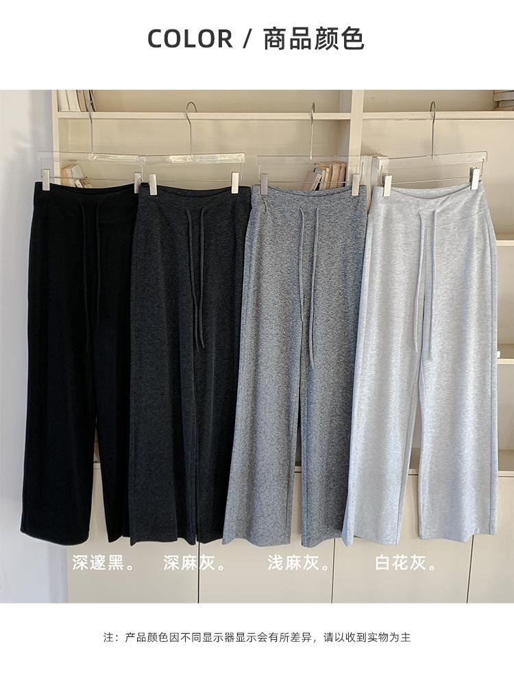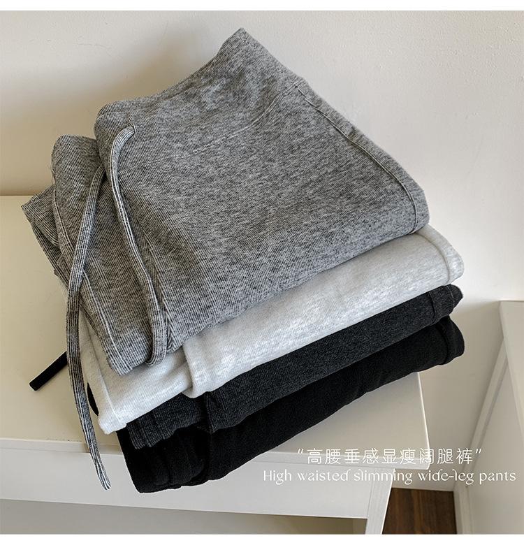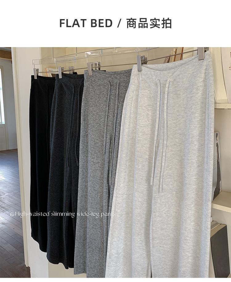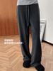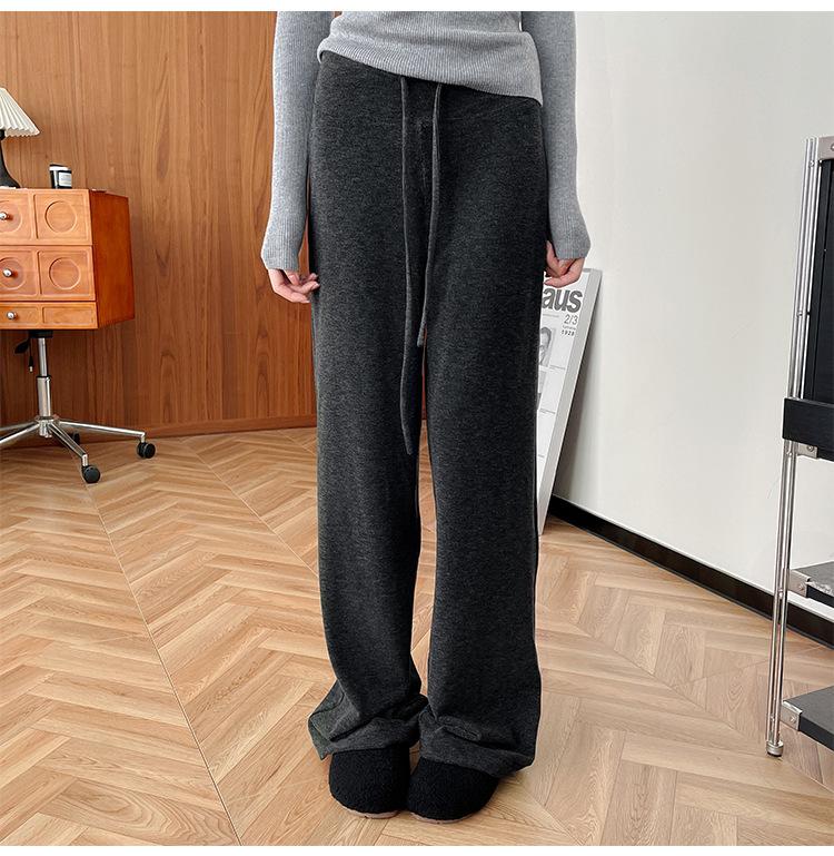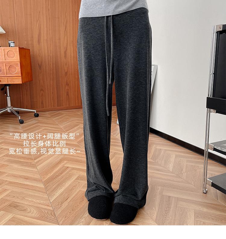 Pantalones Drapey Adelgazantes de Cintura Alta y Pierna Ancha para Mujer Primavera/Otoño Nuevos Pantalones Rectos de Gamuza hasta el Piso Color Sólido con Cordón Casuales Largos