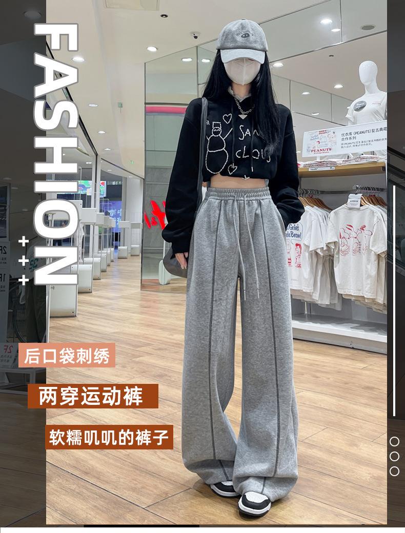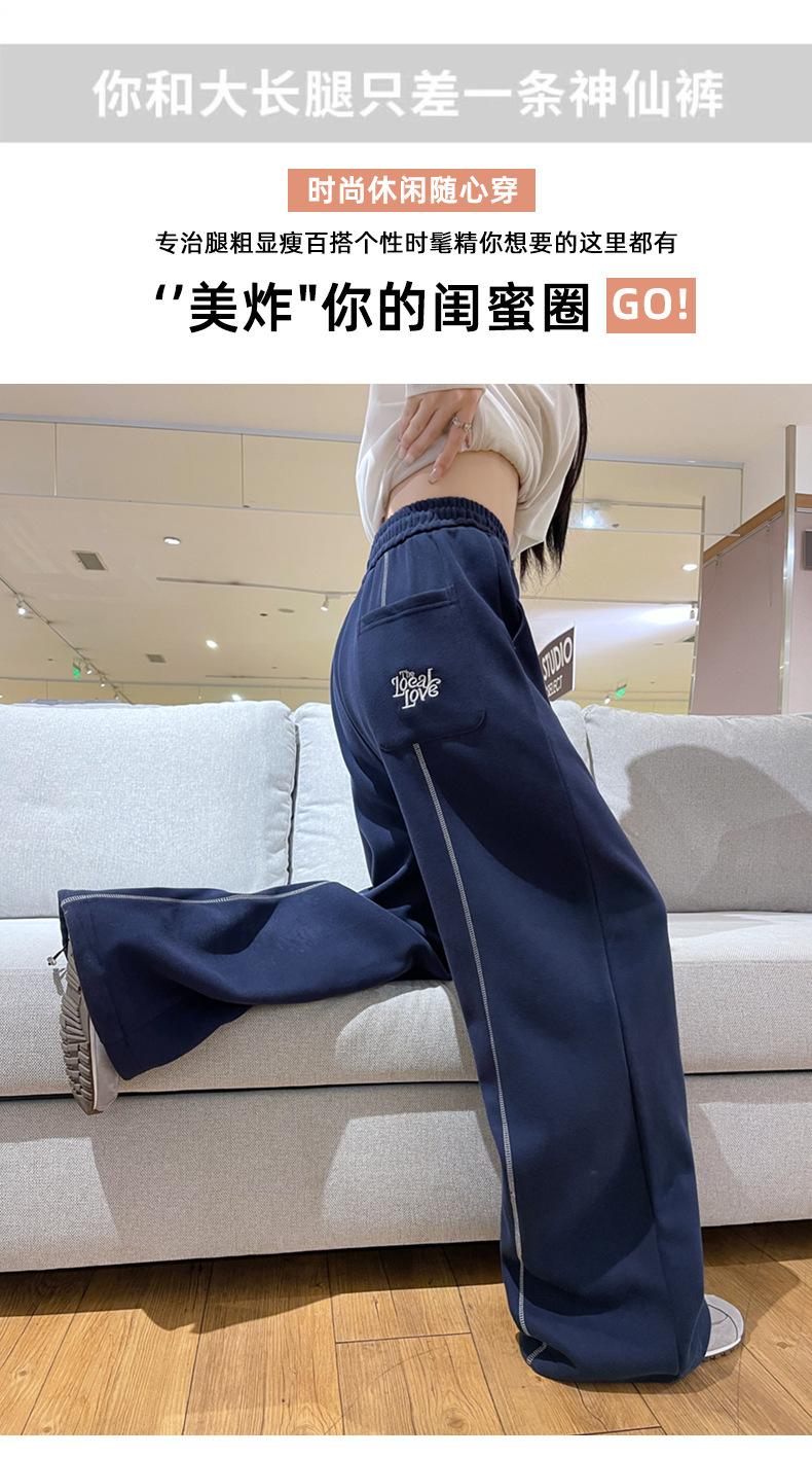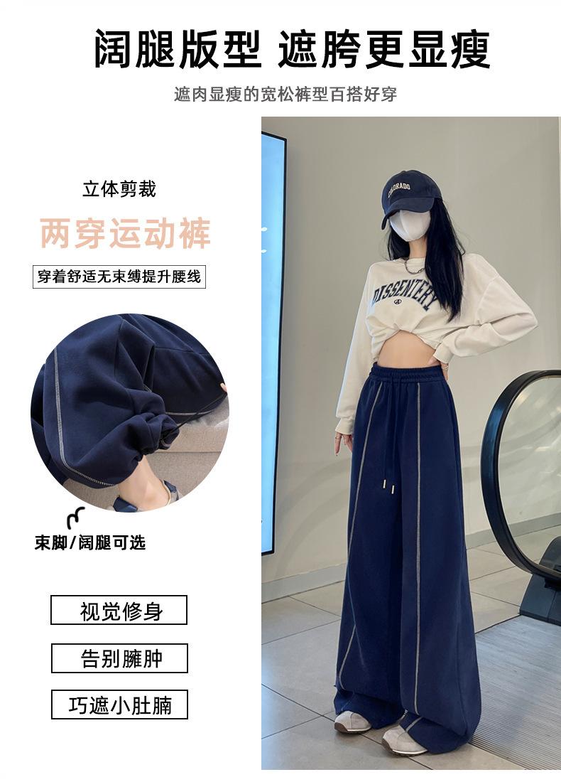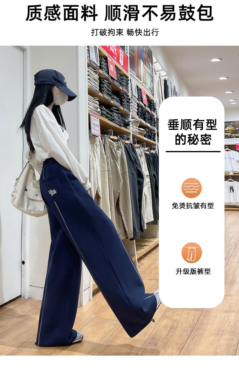 Pantalones Deportivos Americanos Estilo Lazy Bloque de Color para Mujer Primavera y Otoño Nuevos Cintura Alta Adelgazantes Pierna Ancha Pantalones Casuales de Pierna Recta Sueltos