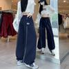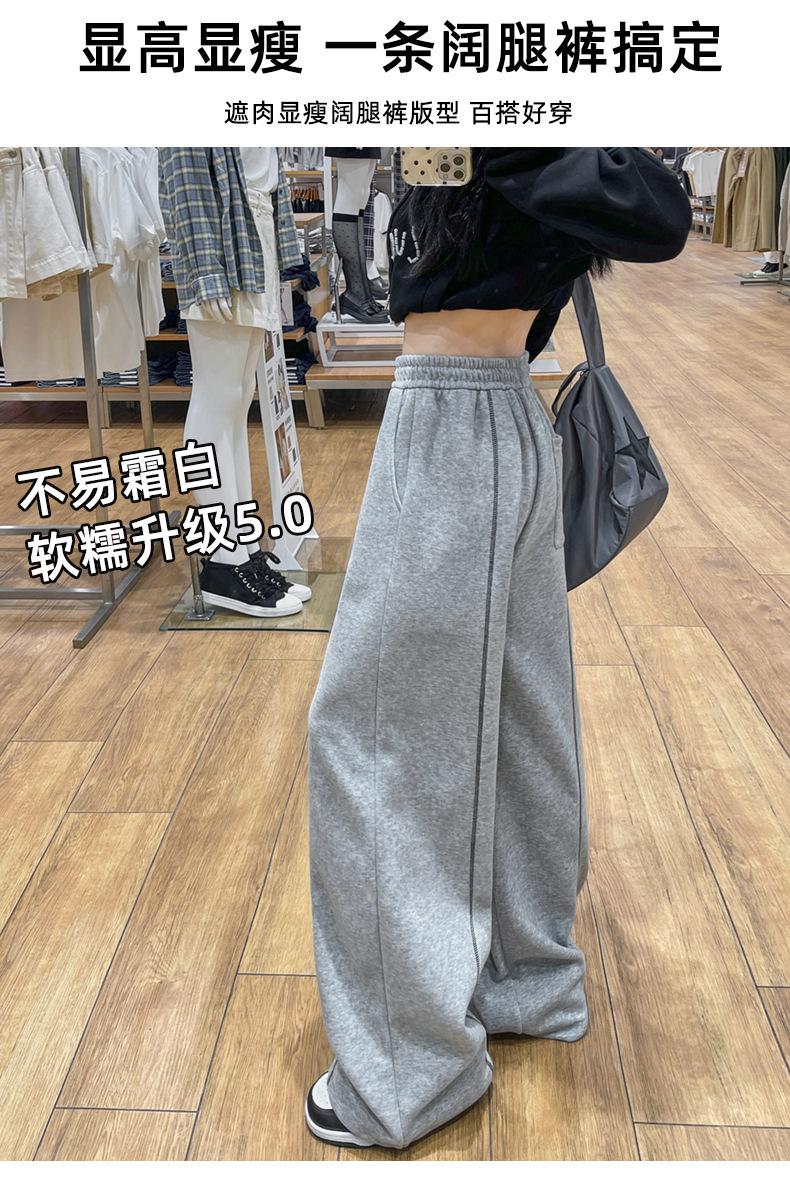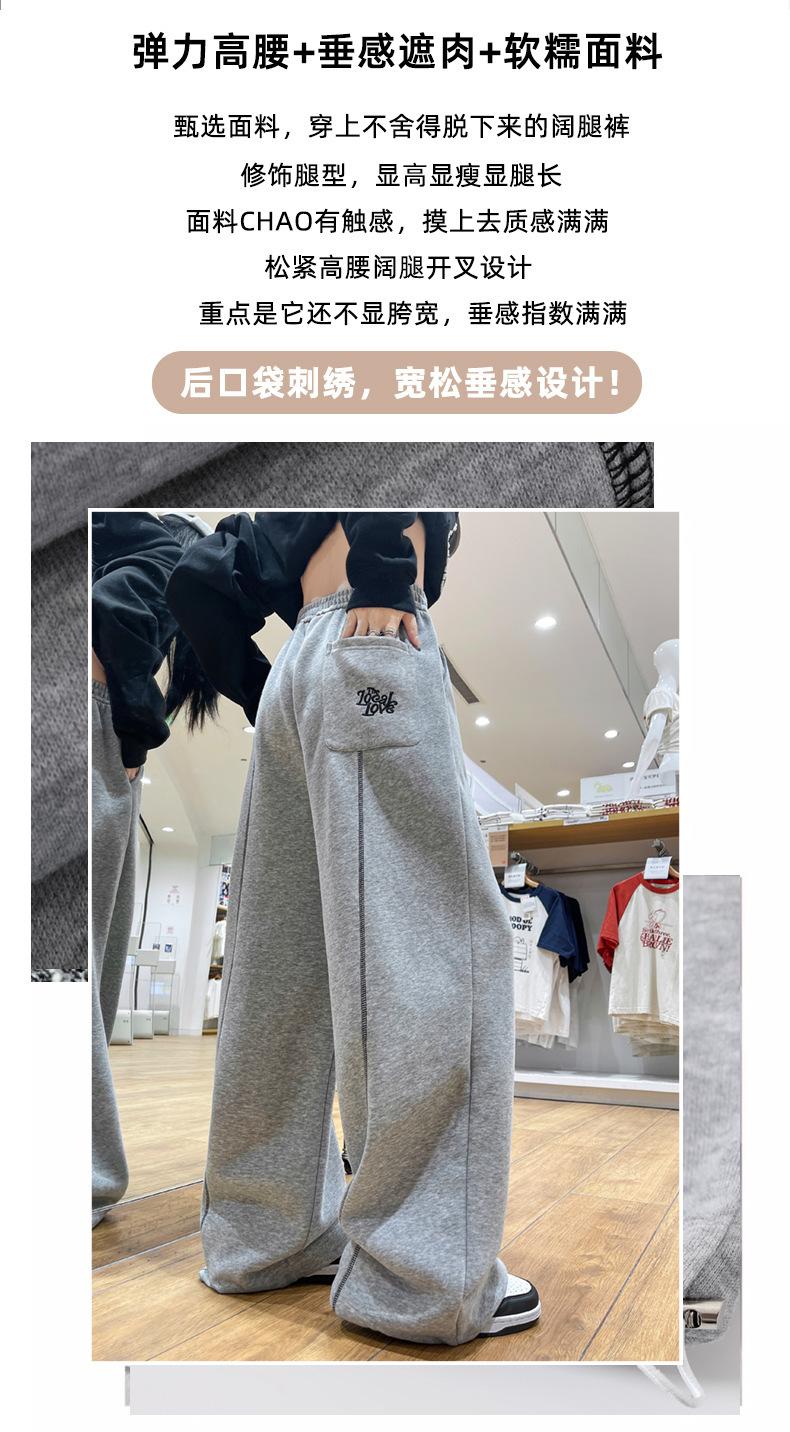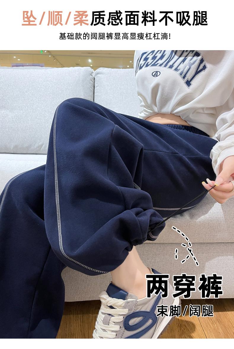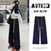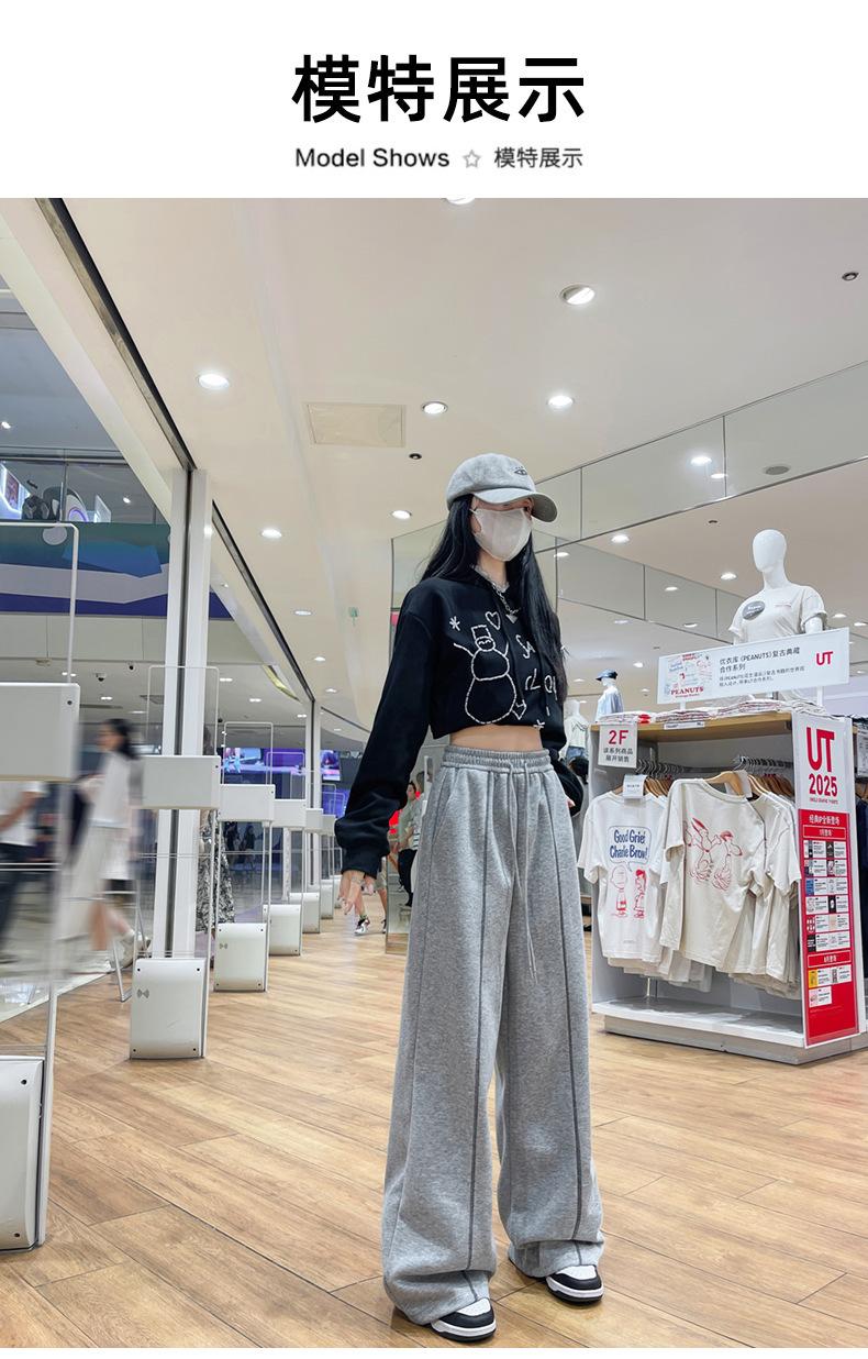 Pantalones Deportivos Americanos Estilo Lazy Bloque de Color para Mujer Primavera y Otoño Nuevos Cintura Alta Adelgazantes Pierna Ancha Pantalones Casuales de Pierna Recta Sueltos