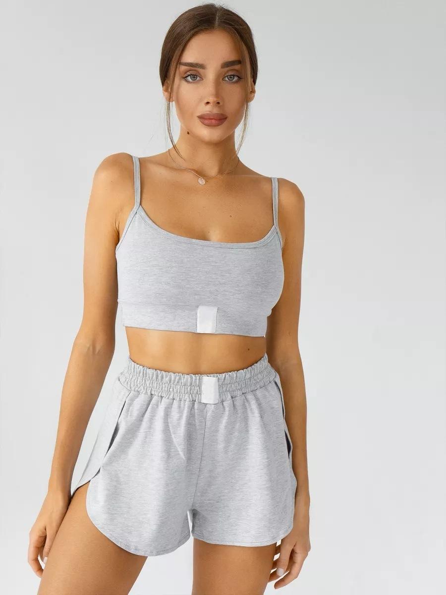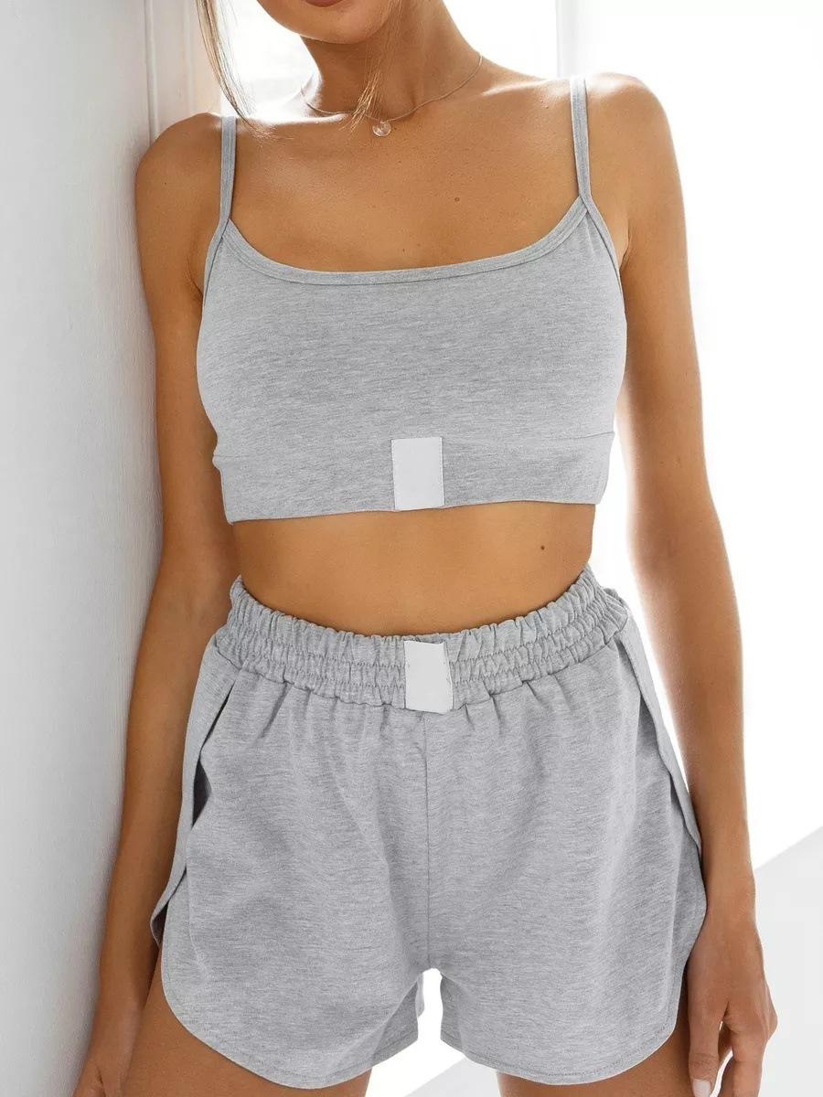 Europeo y Americano Transfronterizo Verano 2025 Nueva Moda Femenina Sexy Camisola Crop Top Casual Cómodo Shorts Conjunto de Dos Piezas