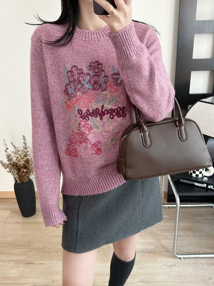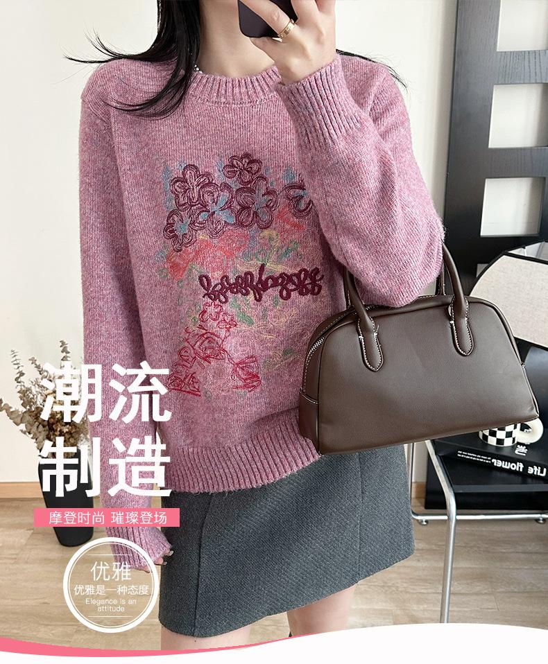 Suéter Jacquard de Otoño para Mujer Tejido de Punto Mujer 2025 Nuevo Diseño Delgado Sentido Camiseta Base Top Conjunto de Principios de Otoño