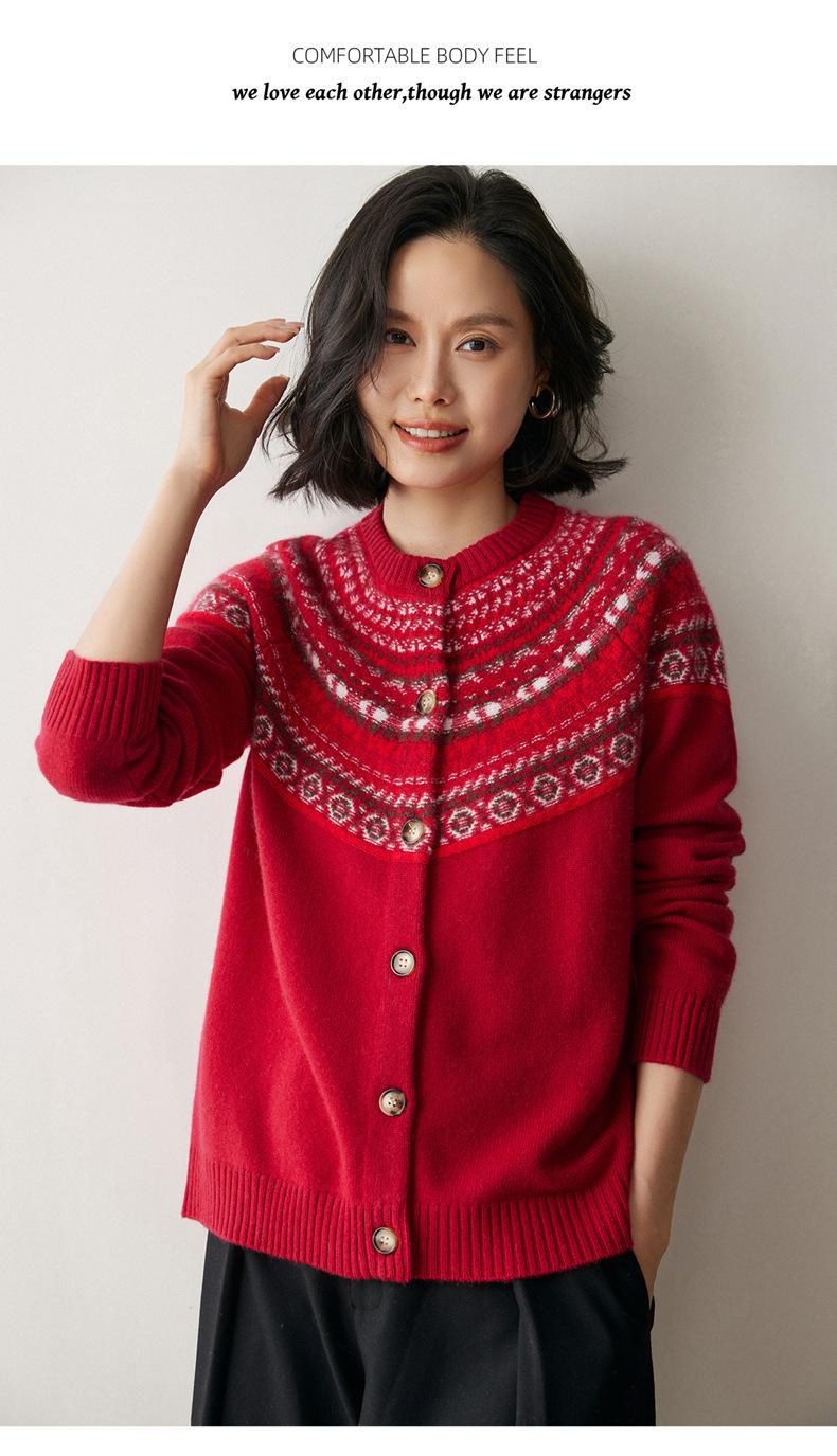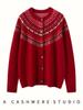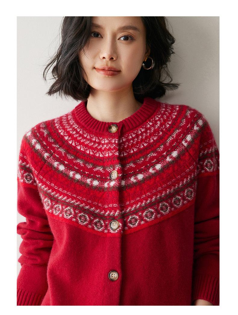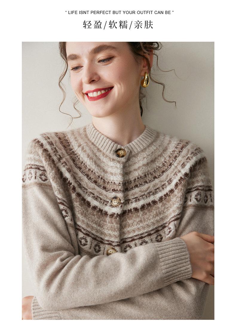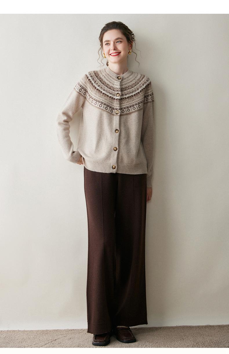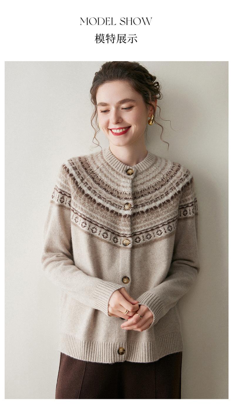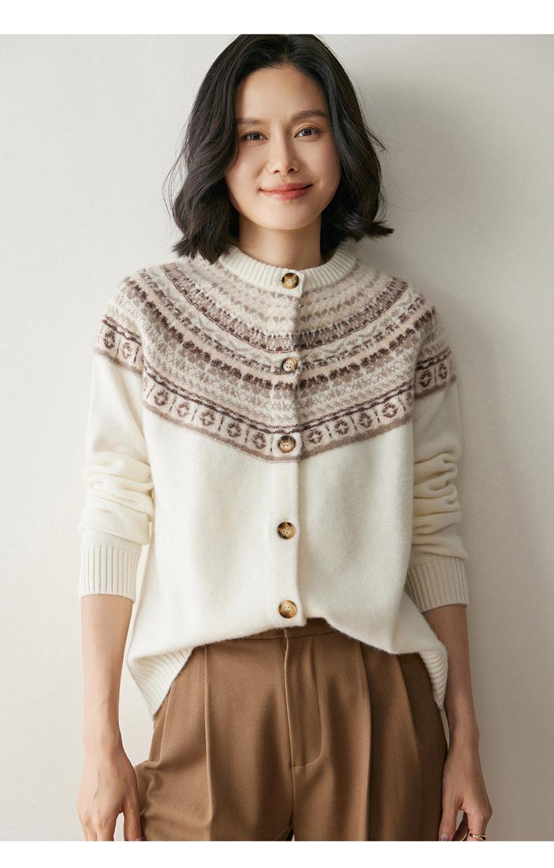 Cárdigan de Cachemira de Cuello Redondo Fair Isle para Mujer, Tejido Grueso Jacquard, Ropa Exterior Otoño Invierno, Suéter Holgado de Manga Larga