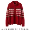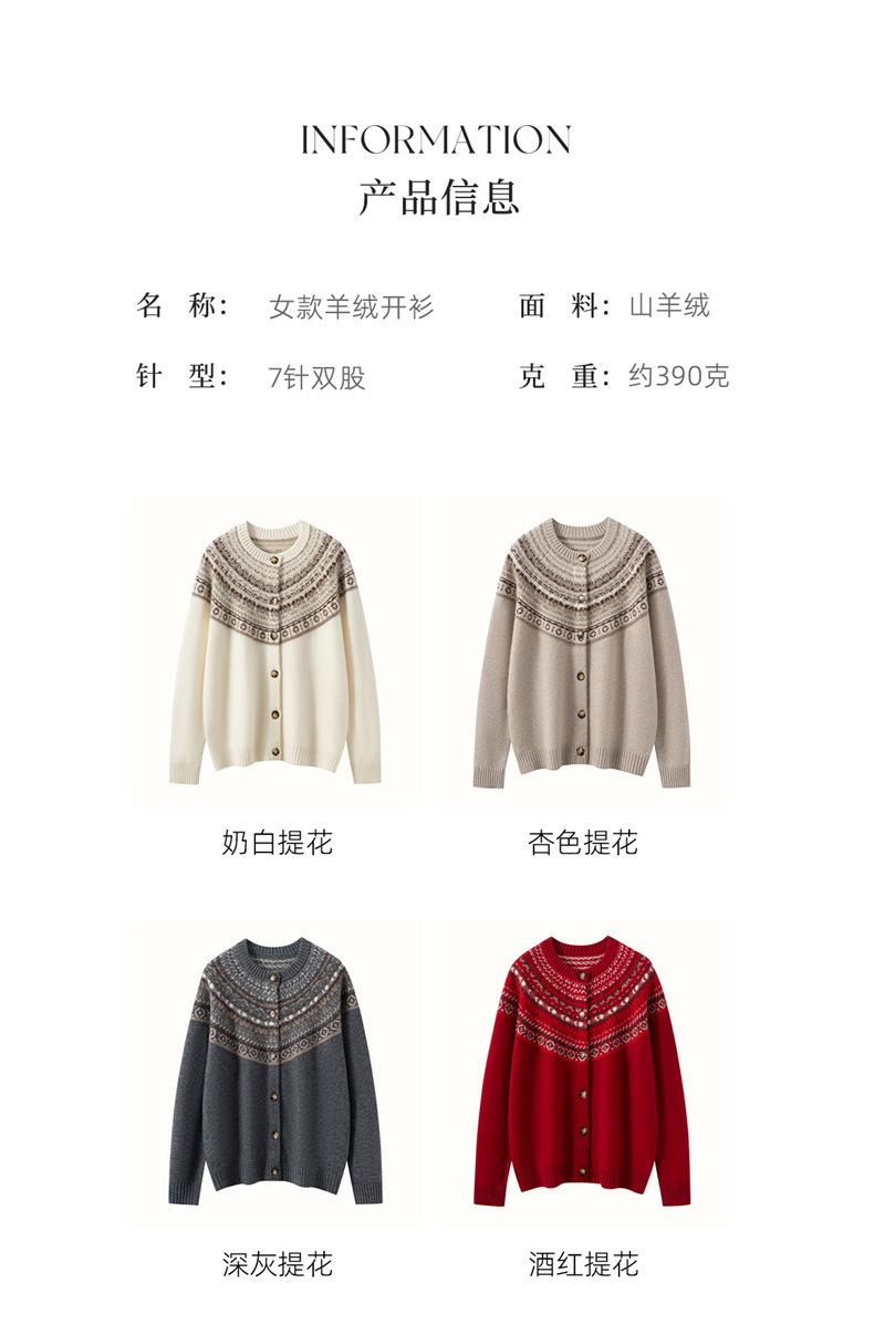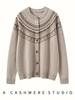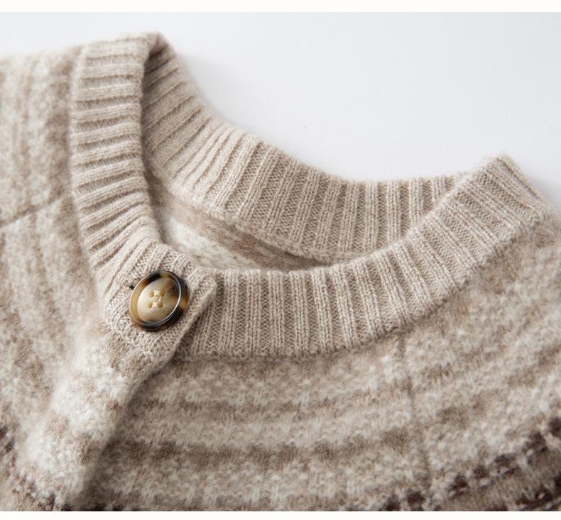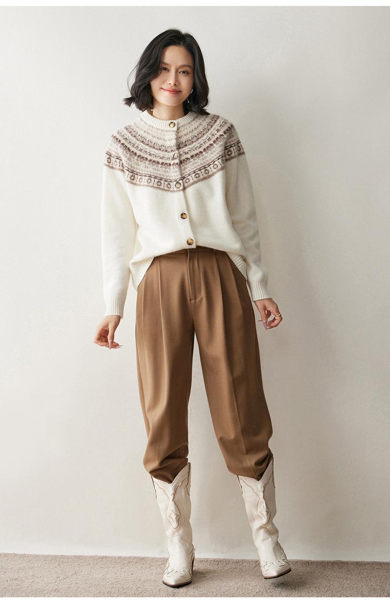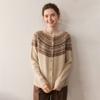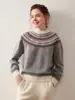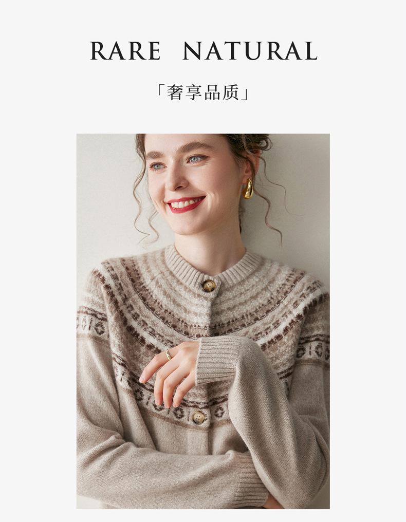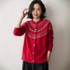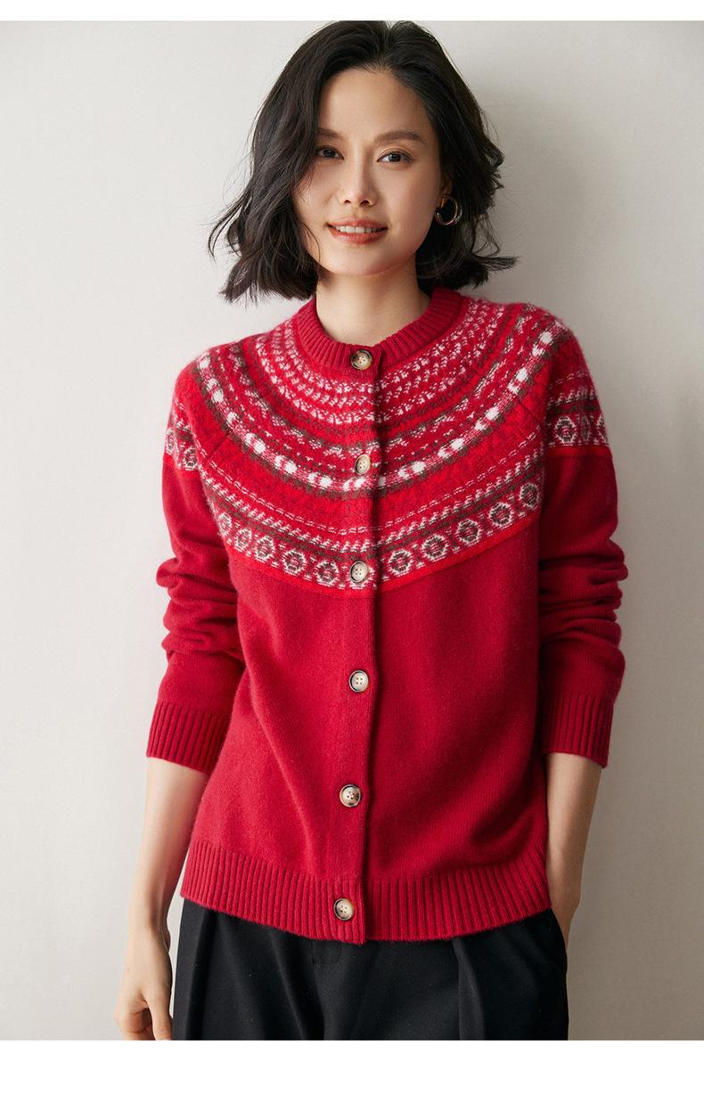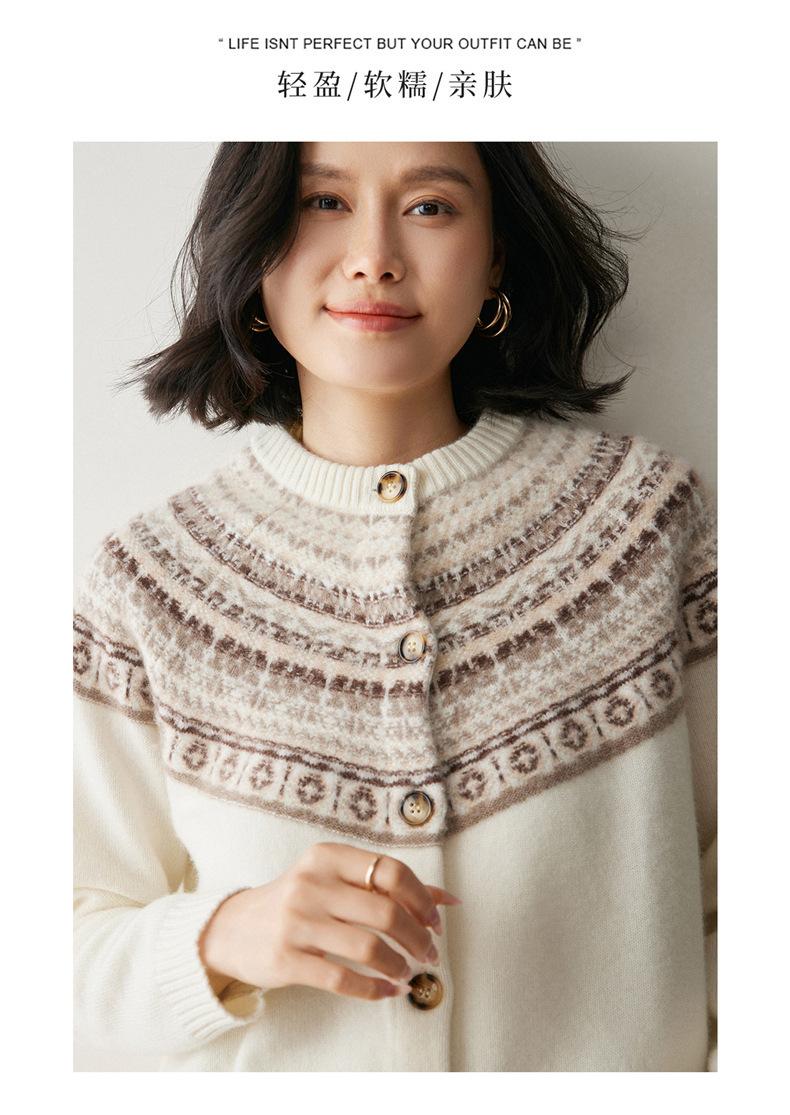 Cárdigan de Cachemira de Cuello Redondo Fair Isle para Mujer, Tejido Grueso Jacquard, Ropa Exterior Otoño Invierno, Suéter Holgado de Manga Larga
