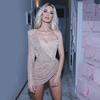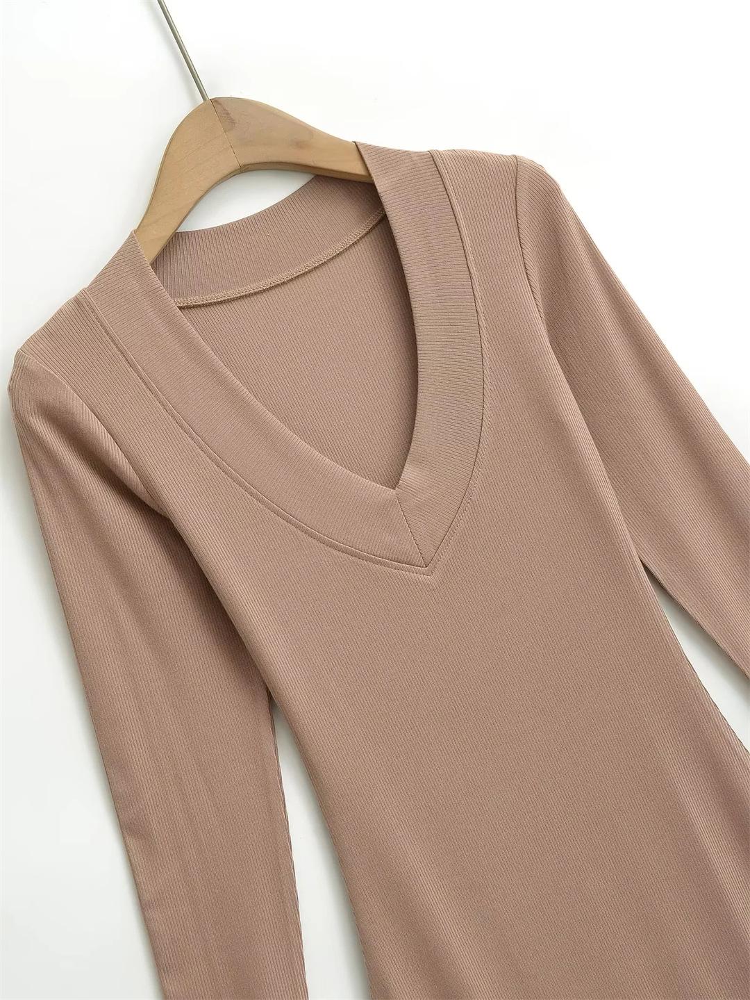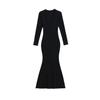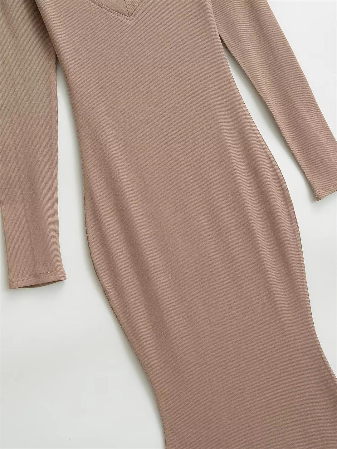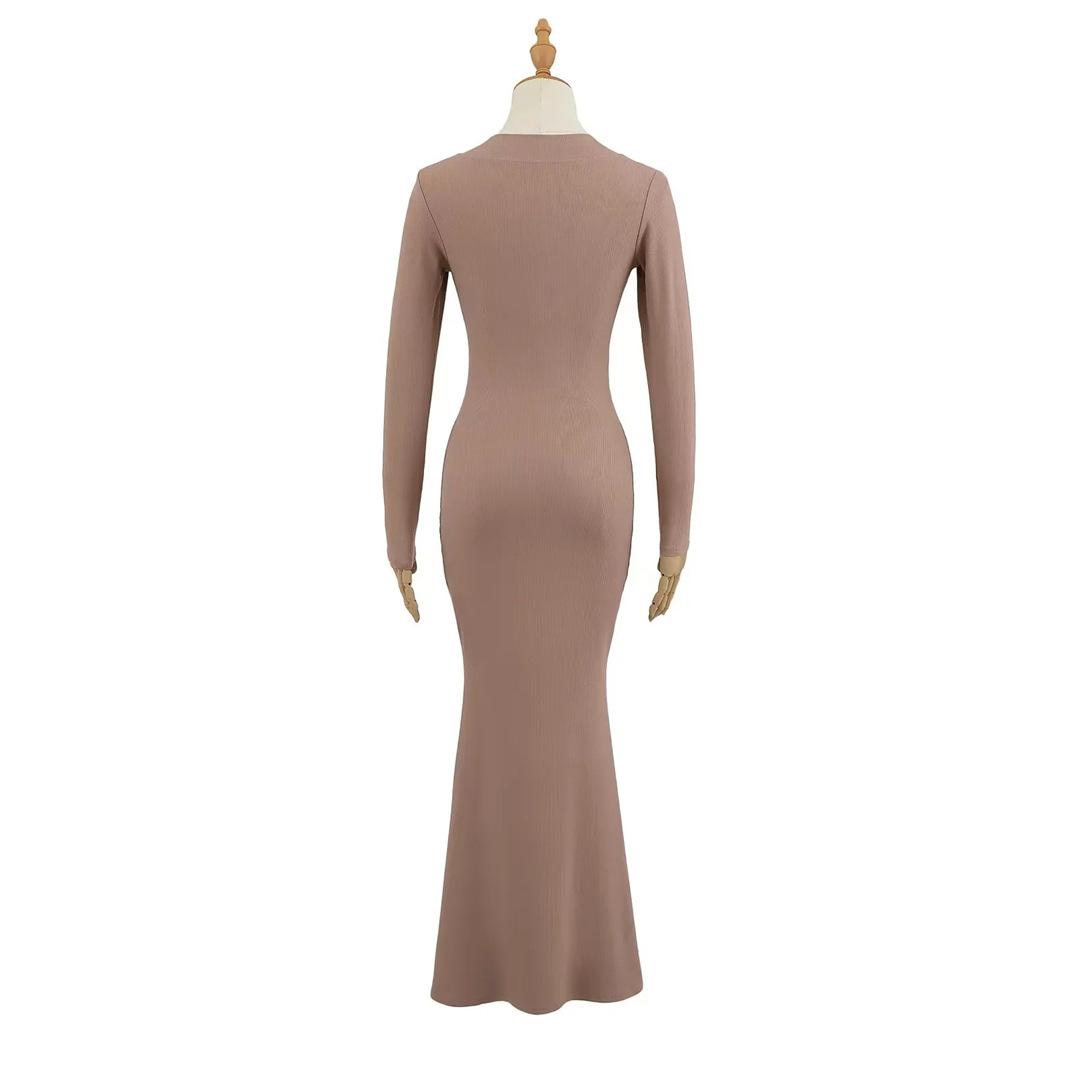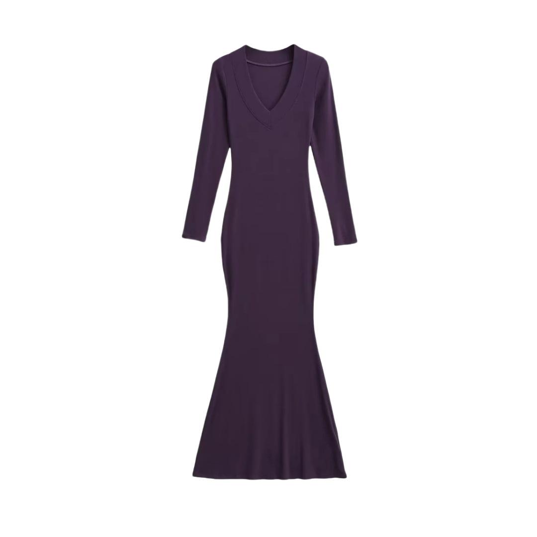 Vestido de Manga Larga Sexy para Chica Caliente de Color Sólido con Cuello en V Profundo para Mujer Europeo y Americano Retro Ajustado Ceñido a la Cintura con Caderas Envolventes Vestido Largo de Cola de Pez