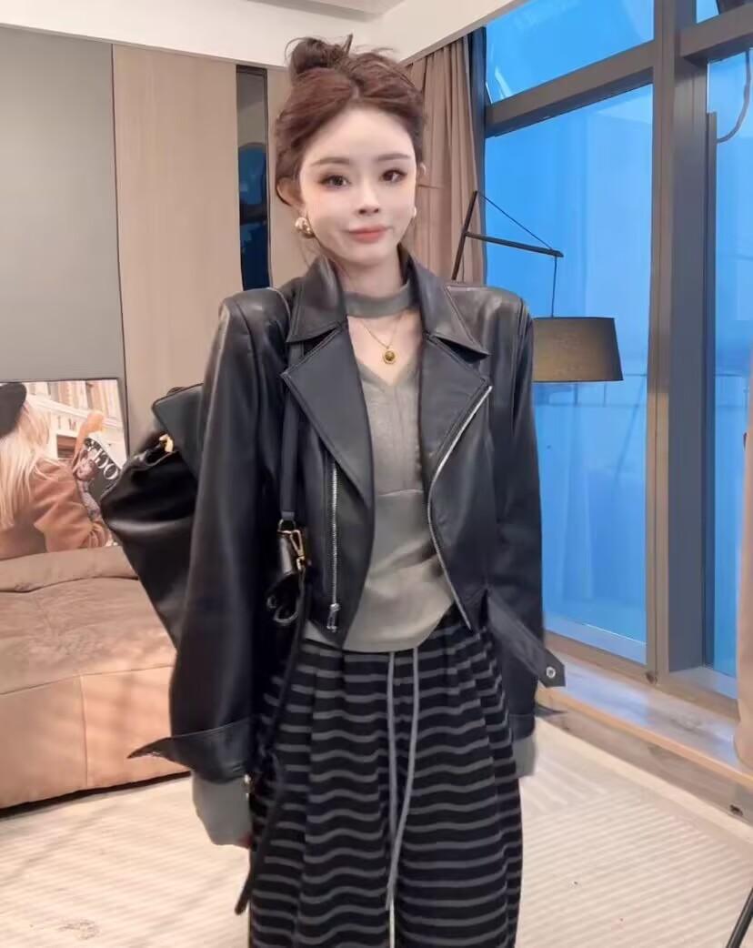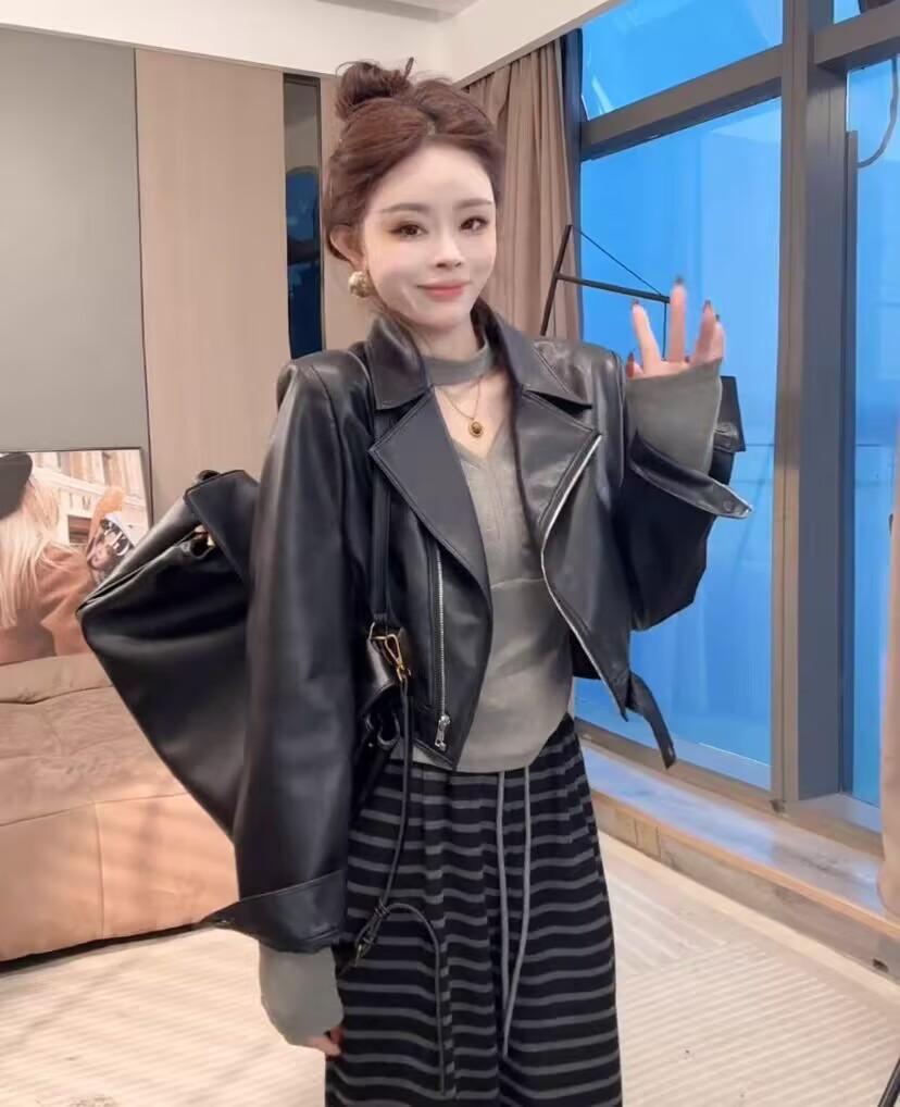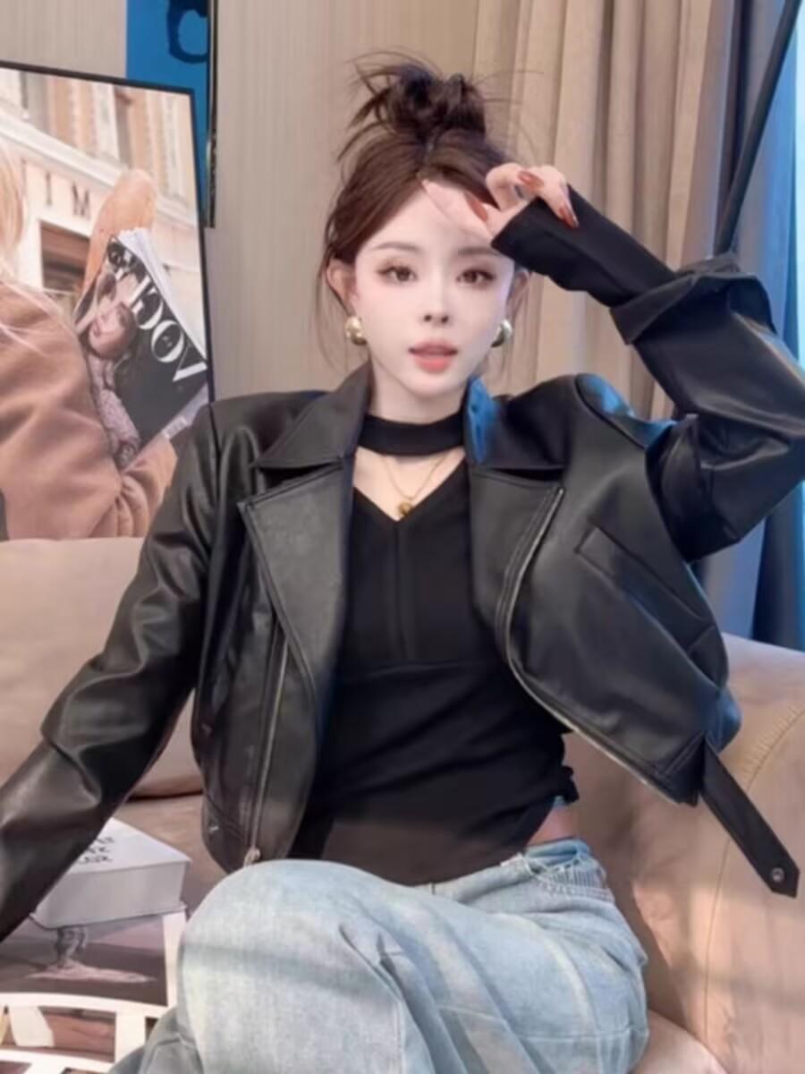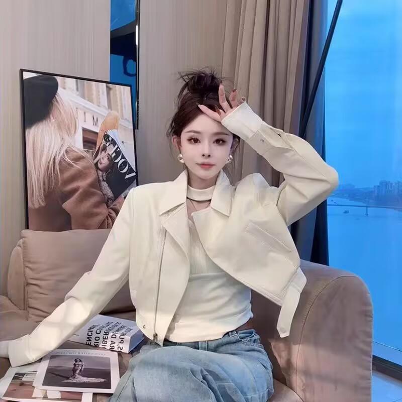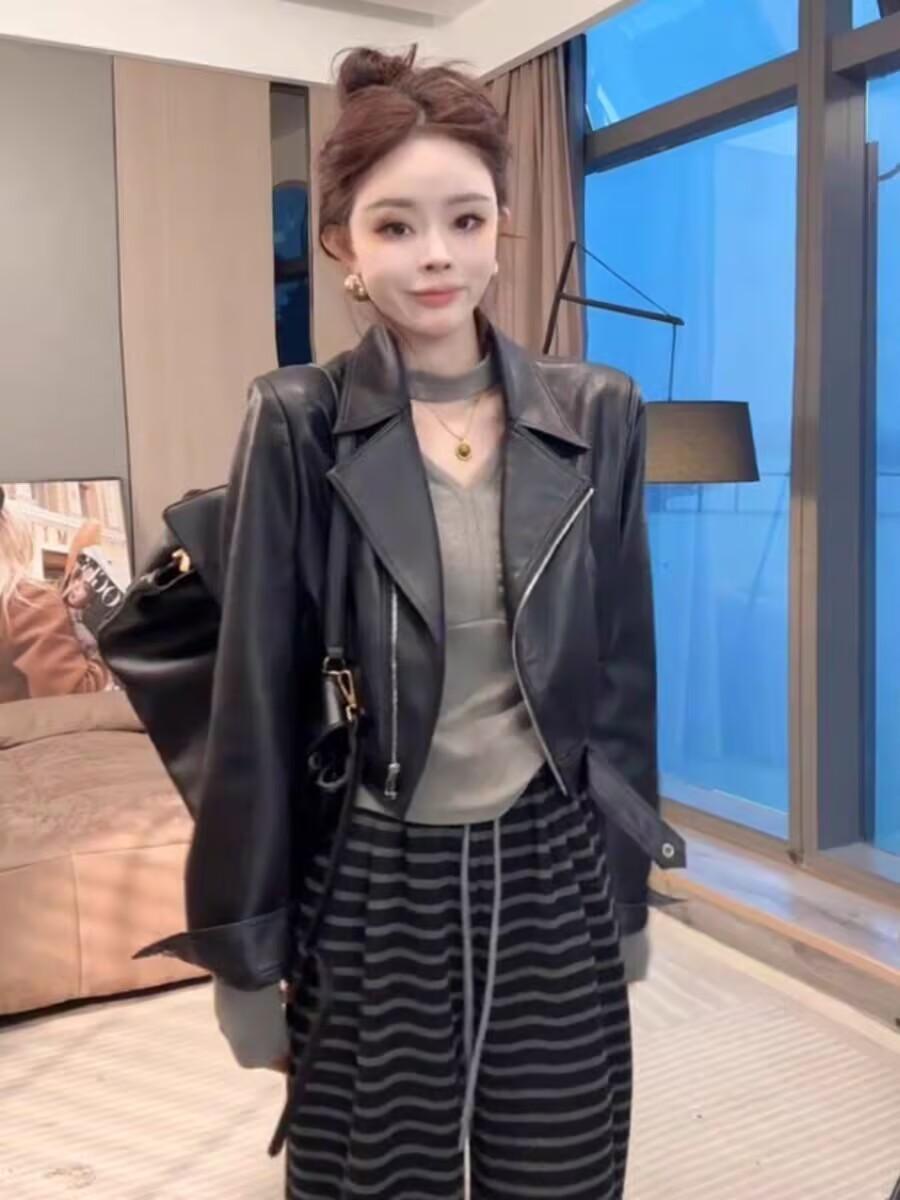 Chaqueta Corta de Cuero de Alta Gama Estilo Europeo para Mujer Primavera y Otoño 2025 Nueva Super Bien Parecida Chaqueta Petite Top Marea