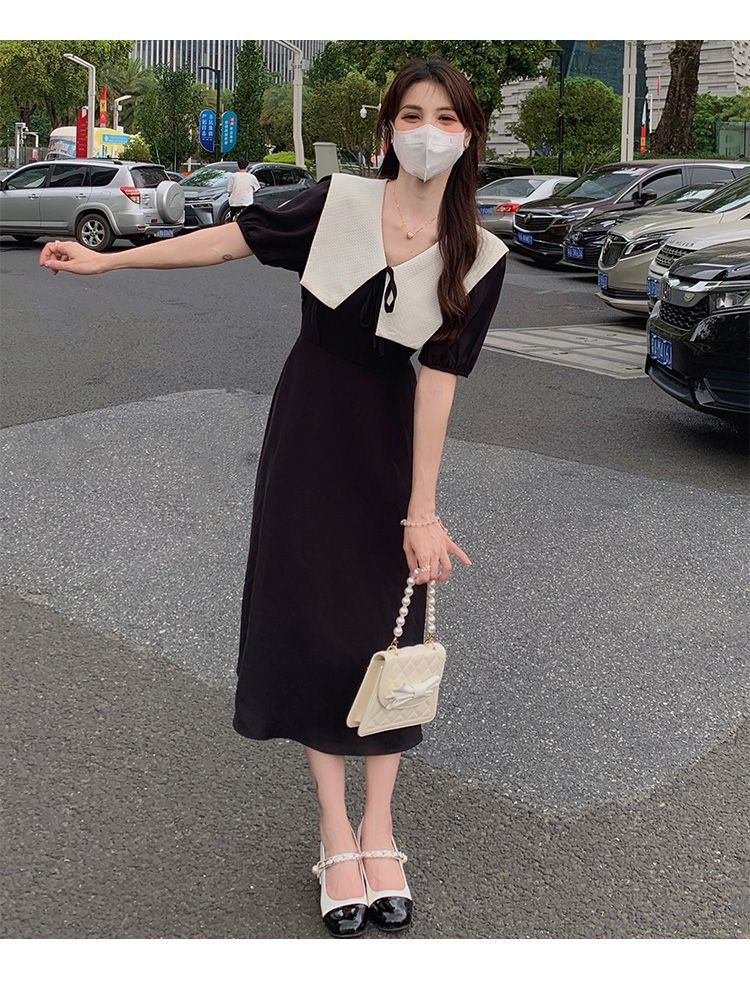 Vestido Negro Pequeño Estilo Hepburn Estilo Francés para Mujer 2025 Nuevo Estilo Vestido Negro Pequeño Elegante Slim Falda Línea A para Verano