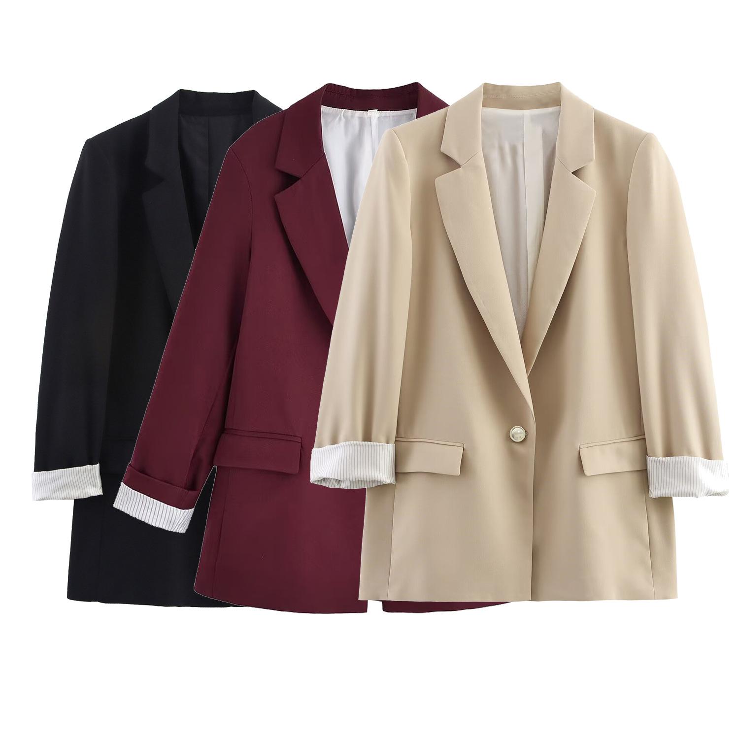 Ropa de Mujer de Comercio Exterior Transfronterizo 2025 Otoño Estilo Europeo y Americano Solapa Manga Larga Chaqueta de Traje de Un Botón Mujer E5260237F
