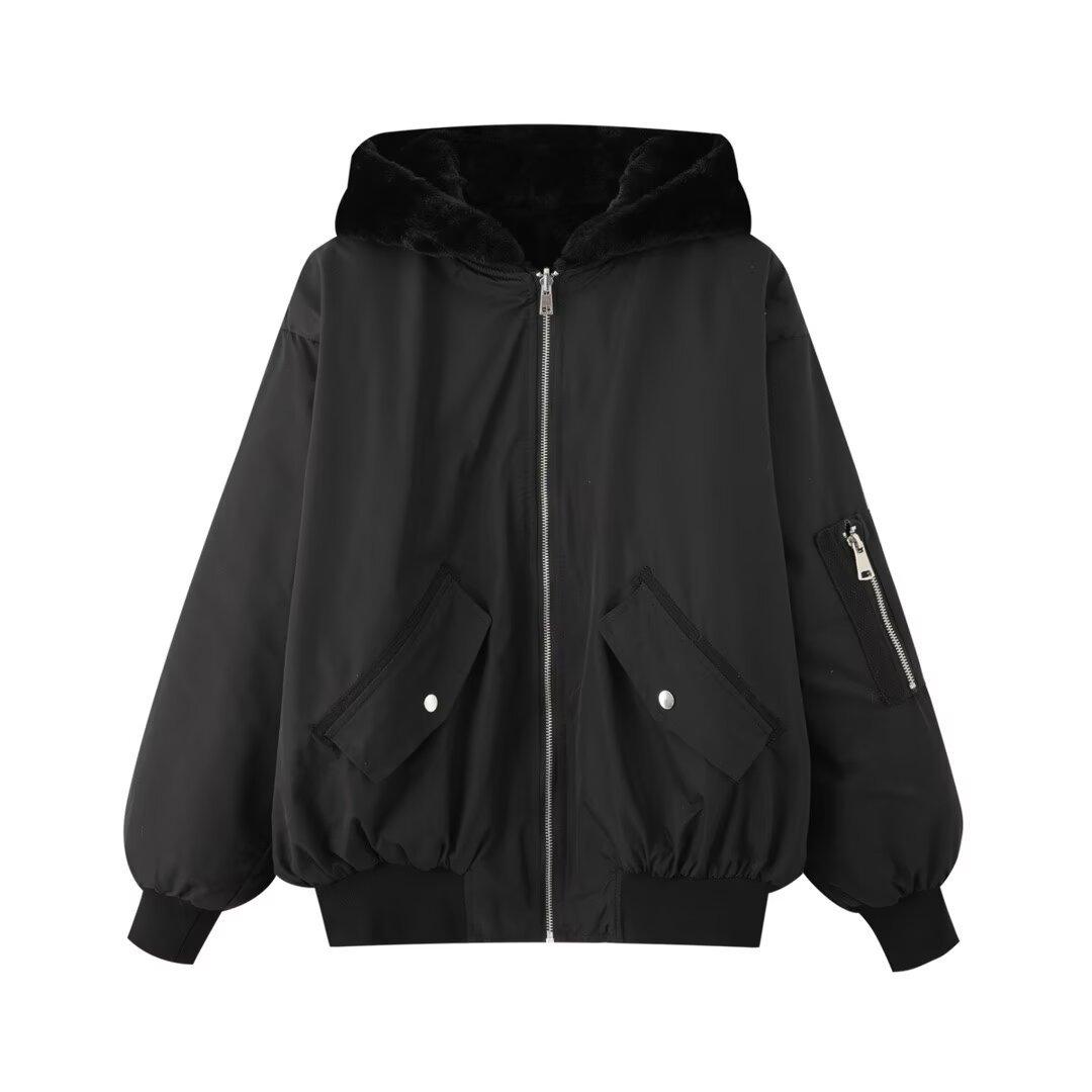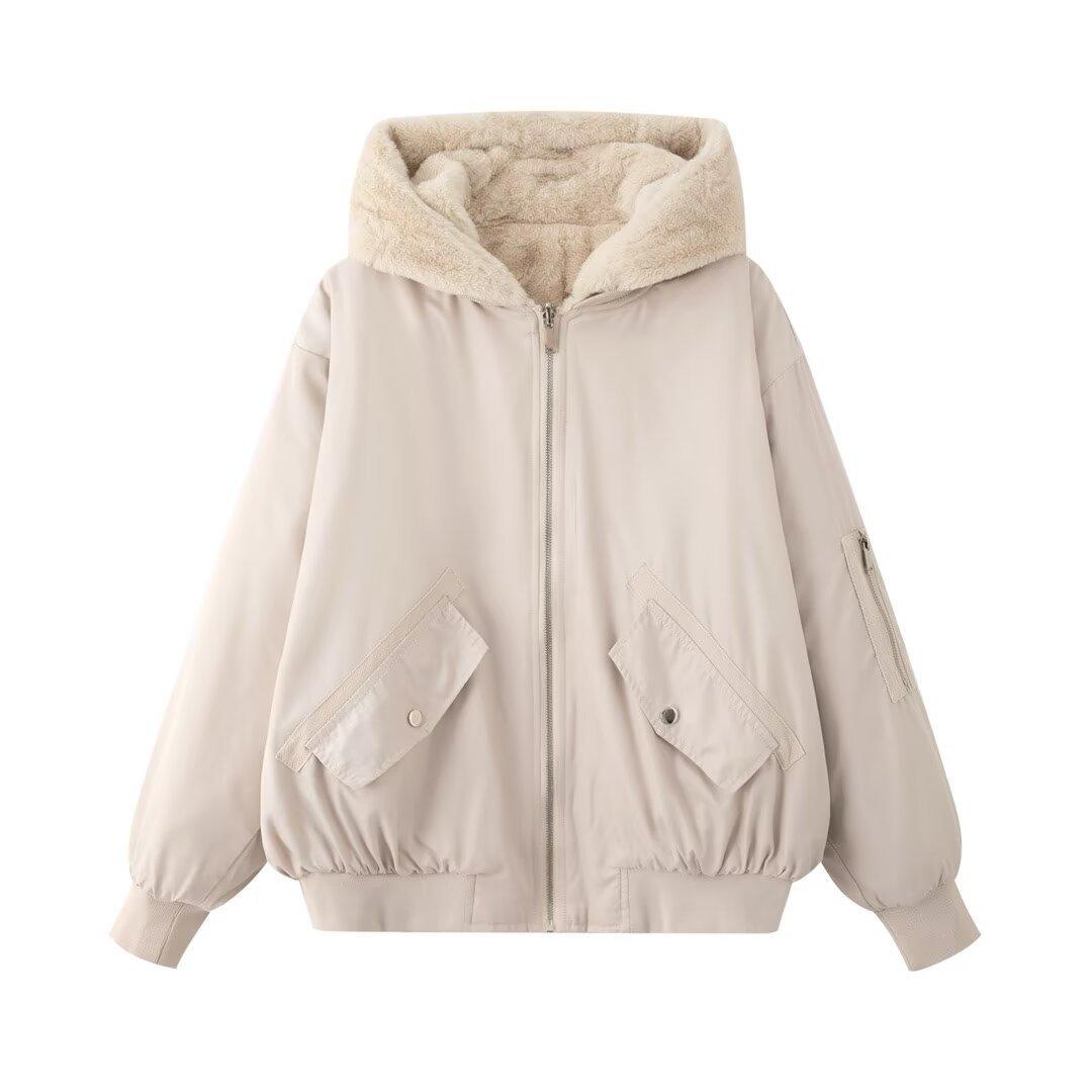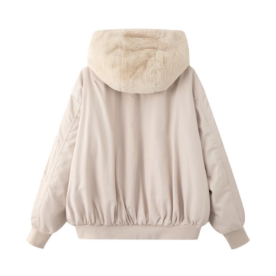 Ropa de mujer de comercio exterior transfronterizo 2025 invierno estilo europeo y americano con capucha manga larga chaqueta reversible abrigo uniforme de béisbol para mujer D52512