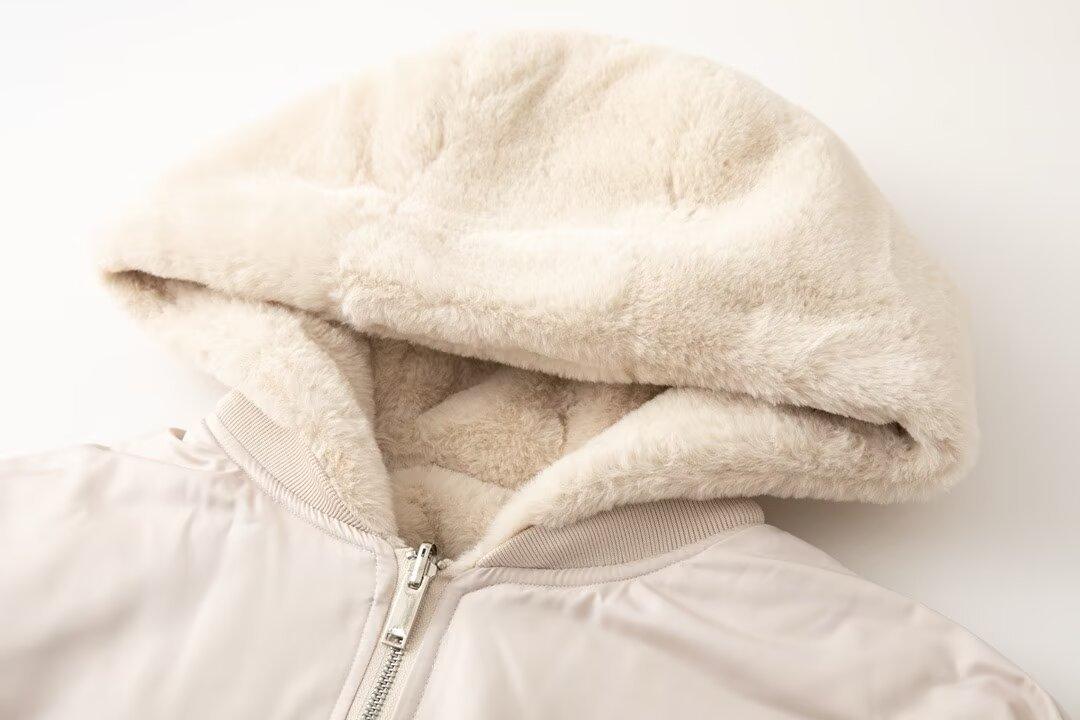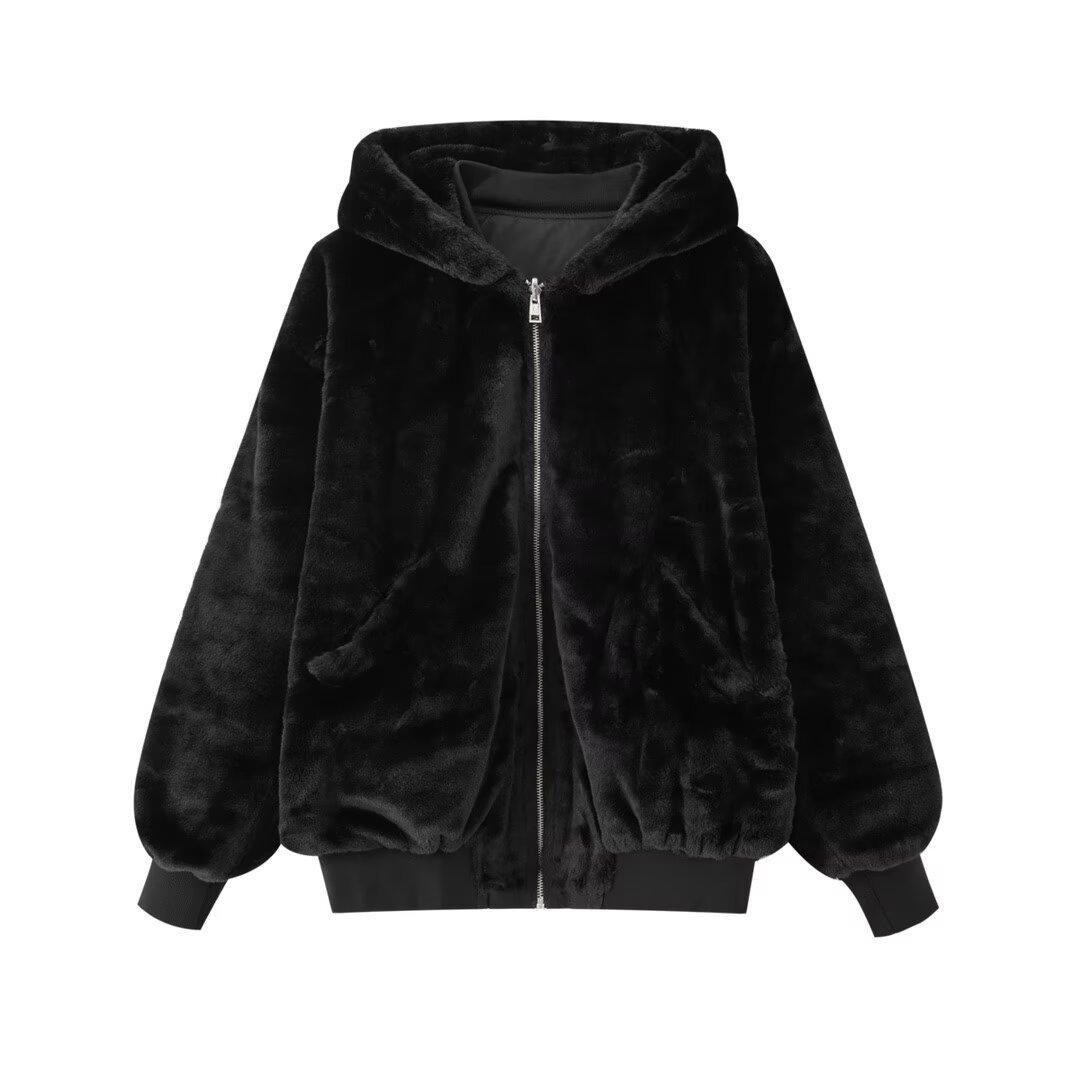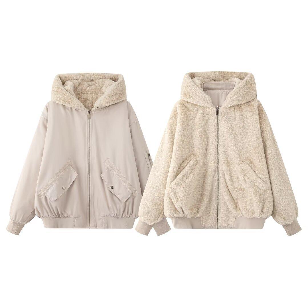 Ropa de mujer de comercio exterior transfronterizo 2025 invierno estilo europeo y americano con capucha manga larga chaqueta reversible abrigo uniforme de béisbol para mujer D52512