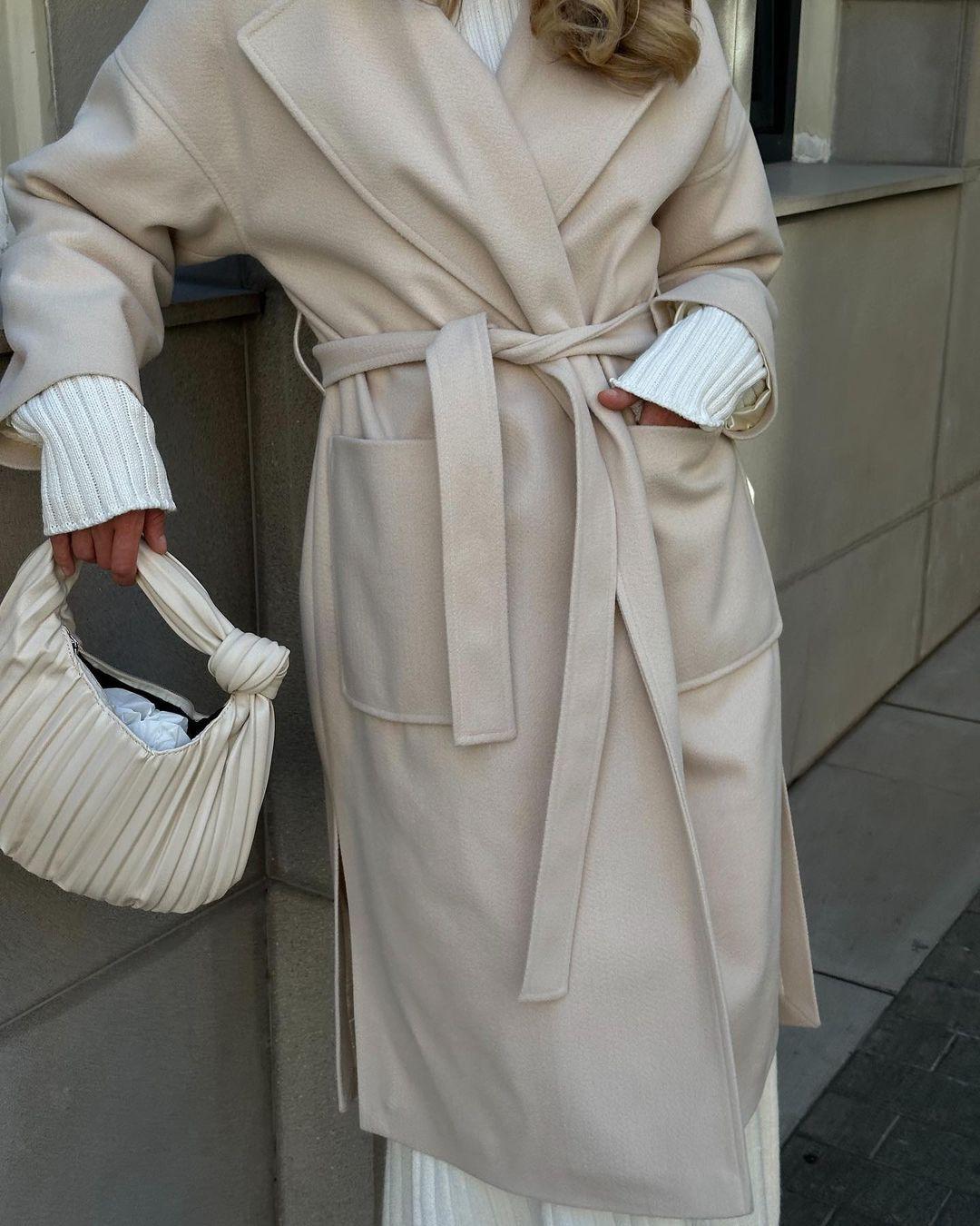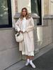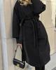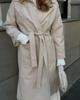 Abrigo de Lana Cruzado Europeo y Americano 2025 Abrigo Trench Cuello en V Cinturón Solapa Temperamento Elegante Largo Sobretodo para Mujer