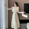 Europeo y Americano 2022 Primavera y Otoño Chifón Dos Piezas Nuevo Vestido de Chifón Estampado Digital 3D Manga Larga Cuello en V Traje Casual