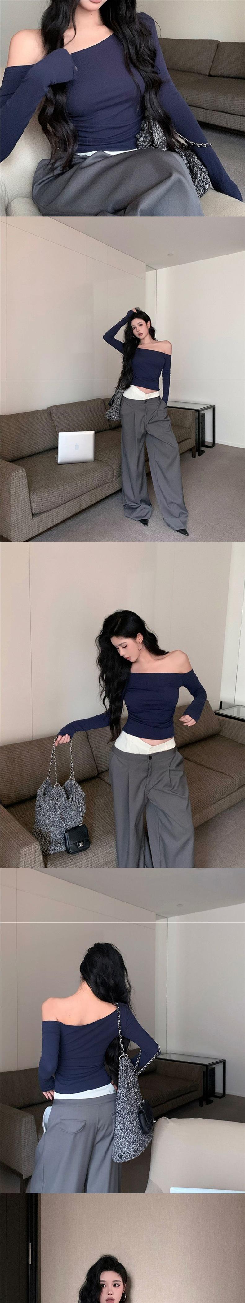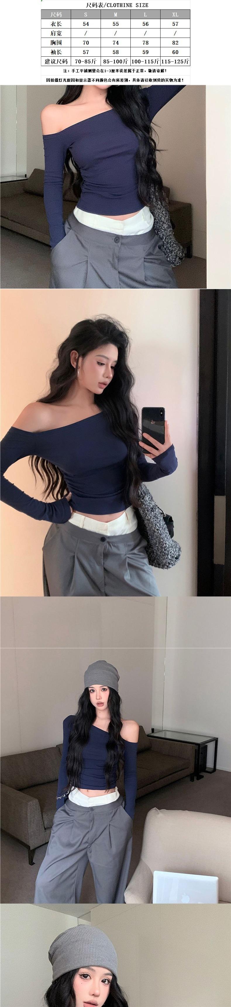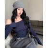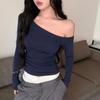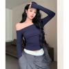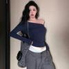 Blusa Única con Hombros Descubiertos Diseño de Hombro Frío para Mujer Camiseta Básica de Manga Larga Primavera/Otoño 2025 Nueva Camiseta de Un Hombro Ajustada