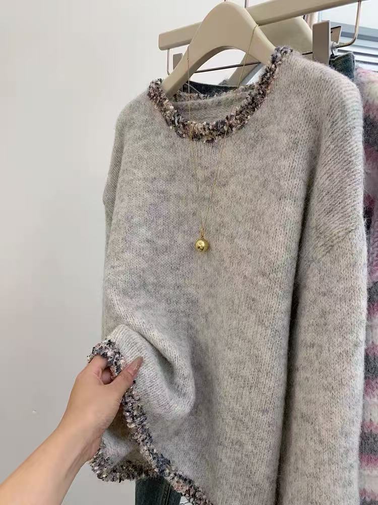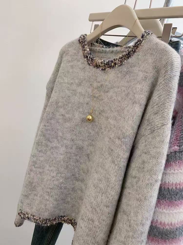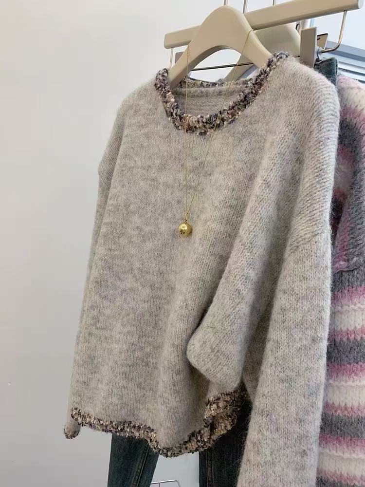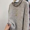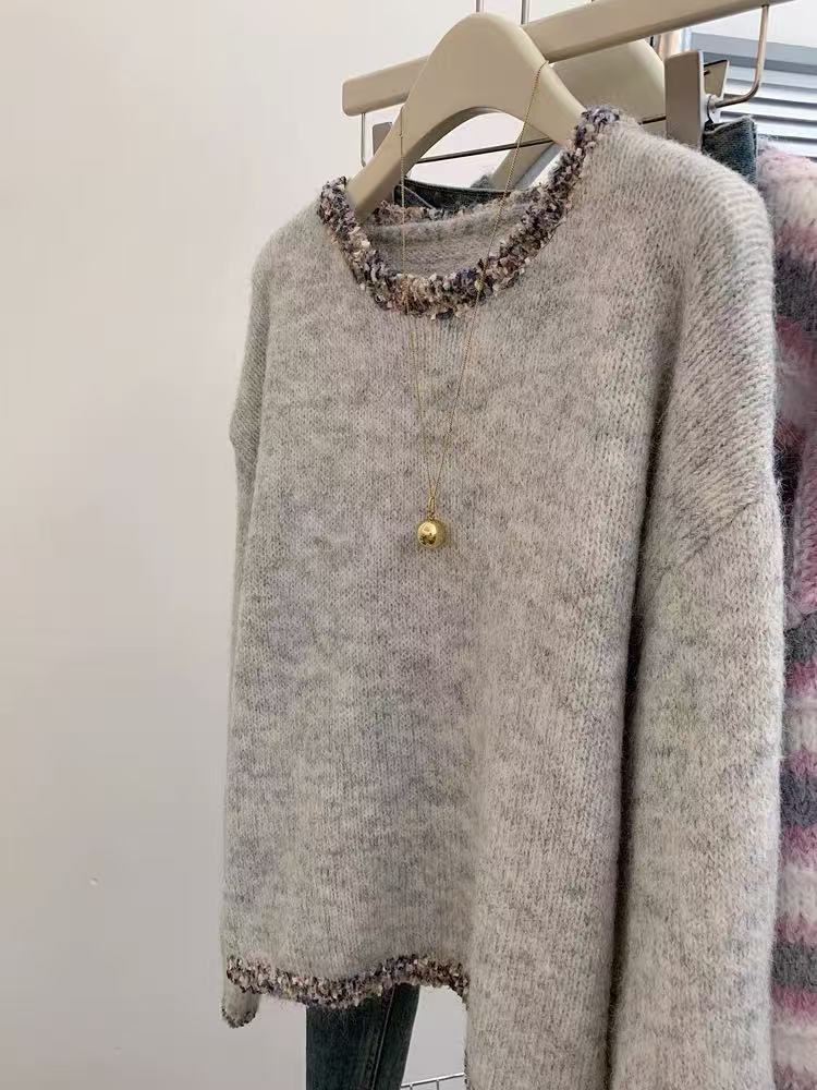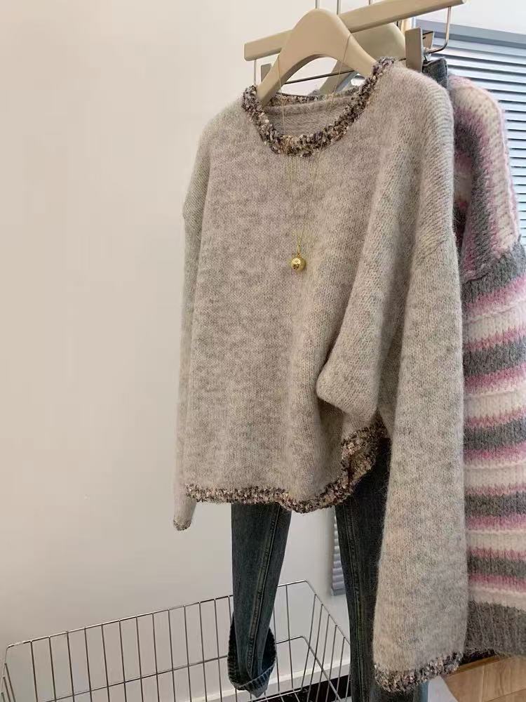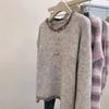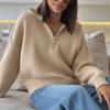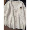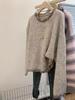 Suéter Retro de Cuello en V color Albaricoque, Holgado, Suave, Tejido, Ropa Exterior, Estilo Lazy, Sensación de Alta Gama, Top de Punto Grueso para Mujer