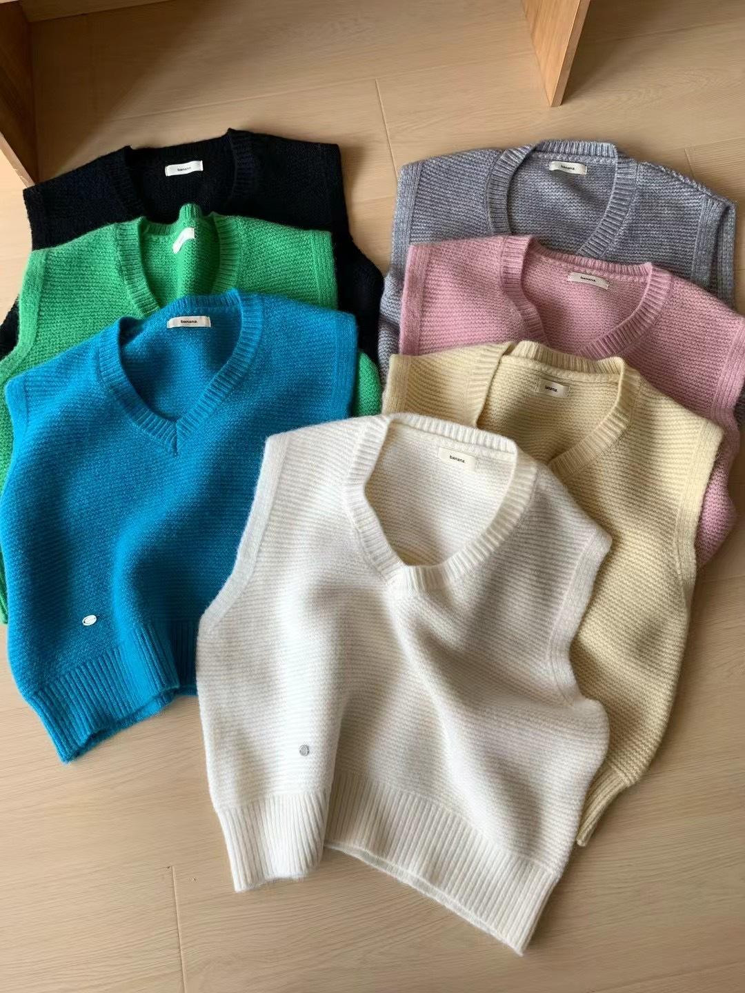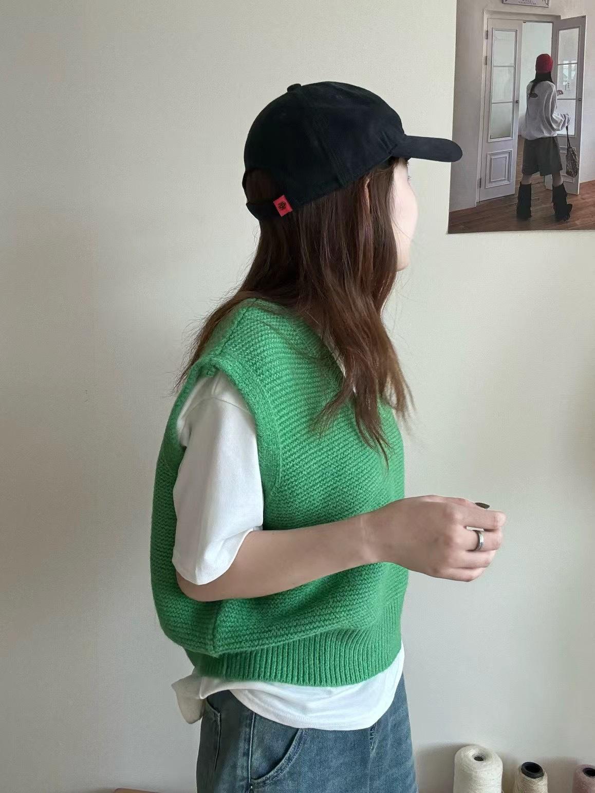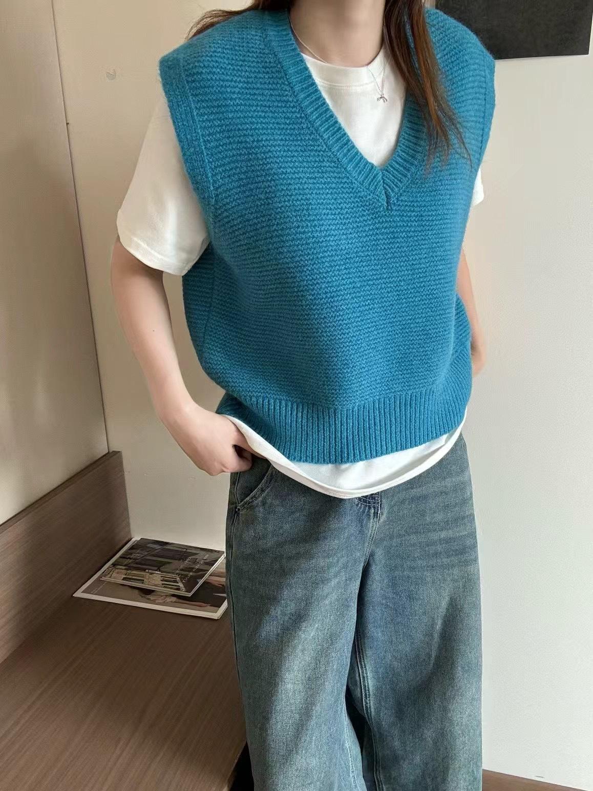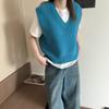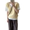 Suéter sin mangas con cuello en V y dobladillo de punto apilado para primavera 2025, estilo universitario, chaleco coreano.
