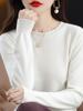 Suéter de Punto de Manga Larga para Primavera y Otoño 2025 Suelto Suave tipo cera Casual Encaje Cuello Redondo Camiseta Interior Nuevo Estilo para Mujer