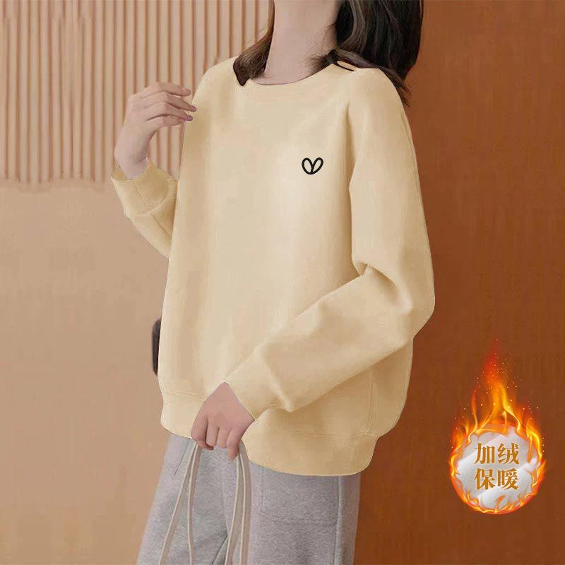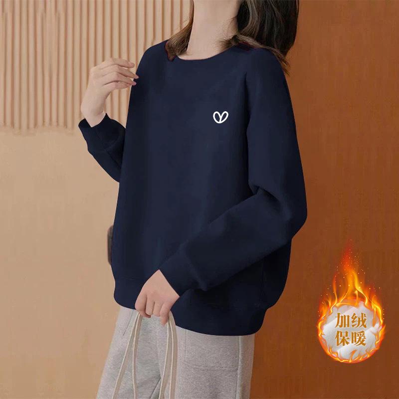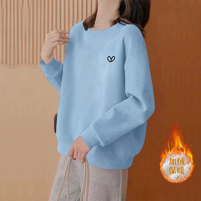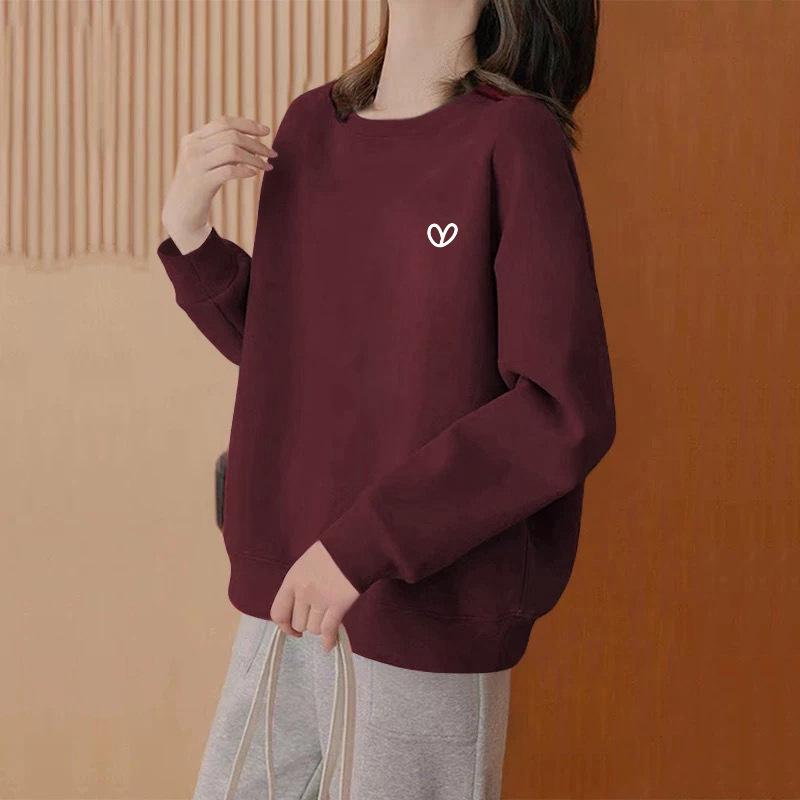 Sudadera holgada de talla grande con cuello redondo para mujer 2025 Otoño/Invierno Nueva Versátil Adelgazante Elegante de Largo Medio Top Simple Tendencia