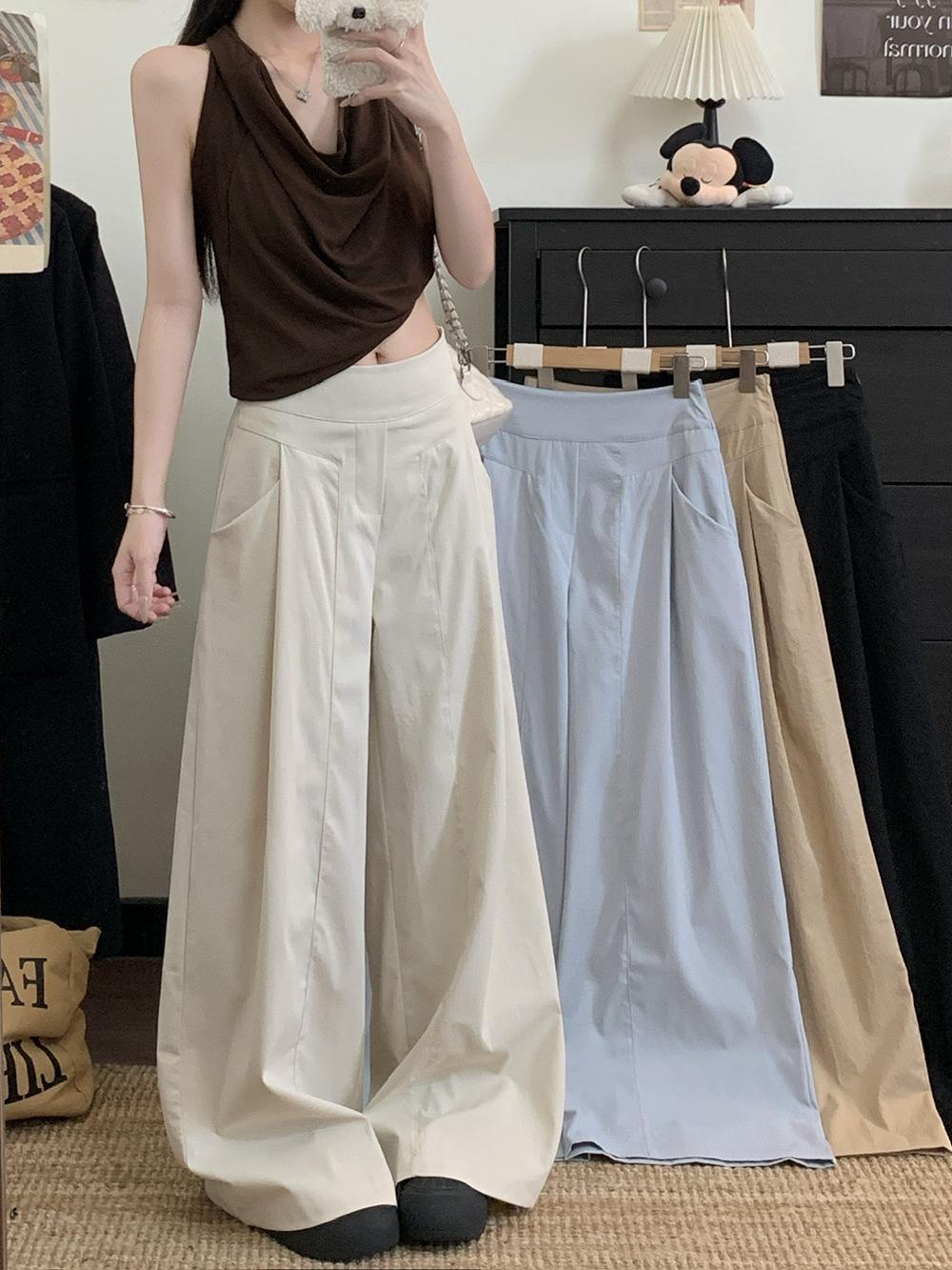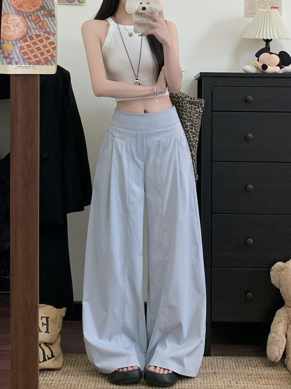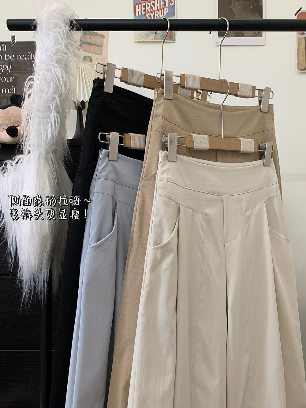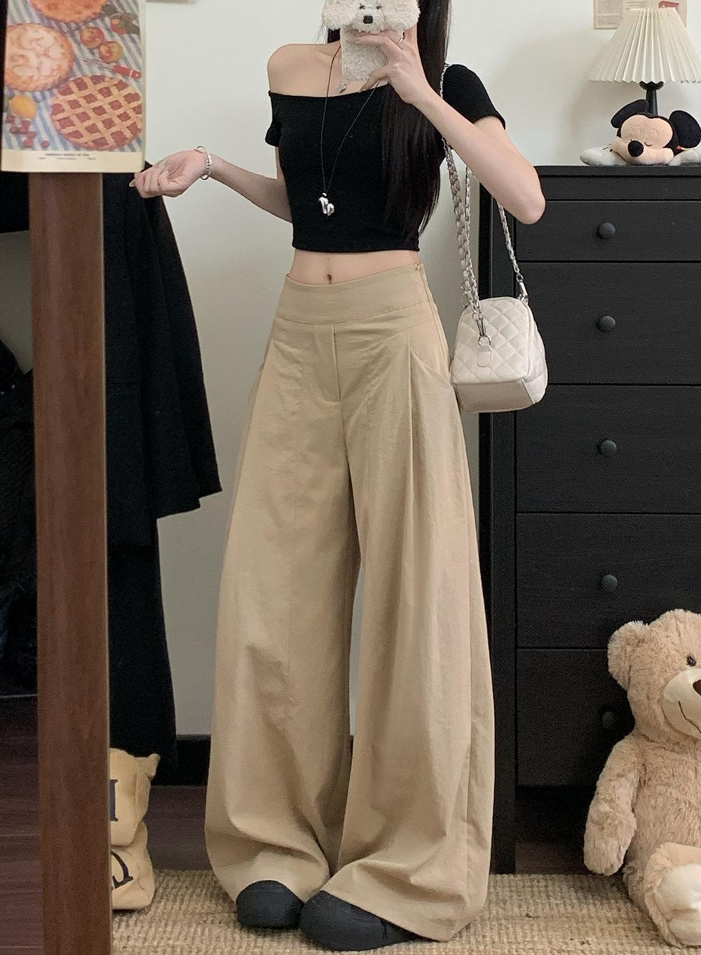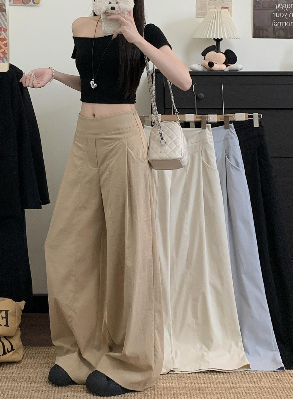 Pantalones Casuales Drapeados Estilo Coreano para Mujer Otoño 2025 Nuevos Cintura Alta Sueltos Adelgazantes Pierna Ancha Sentido del Diseño Pantalones hasta el Suelo
