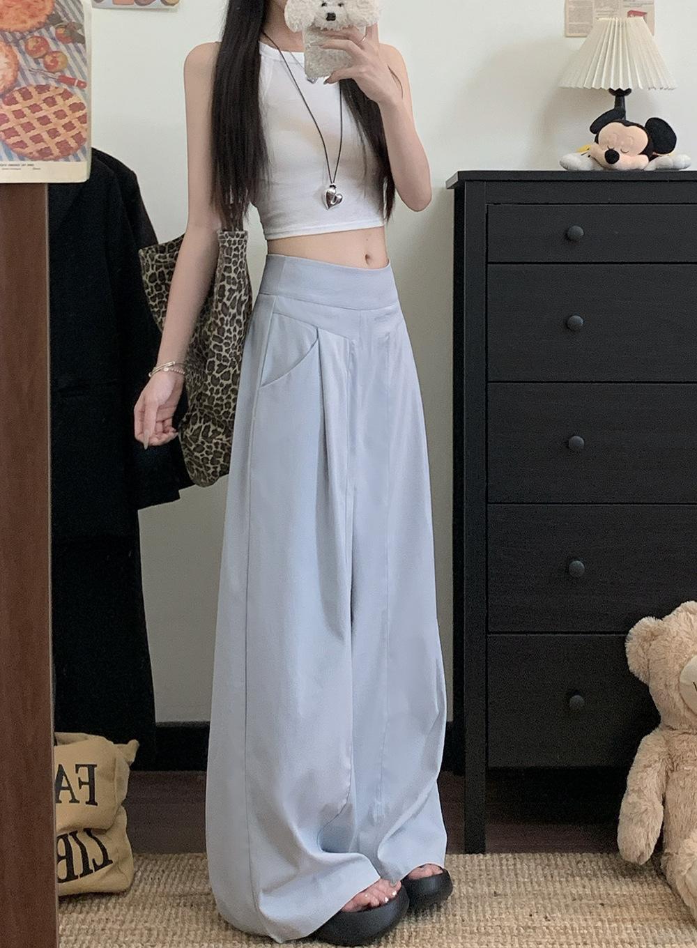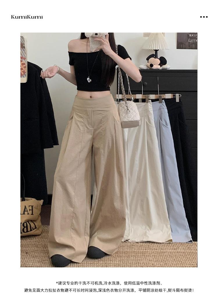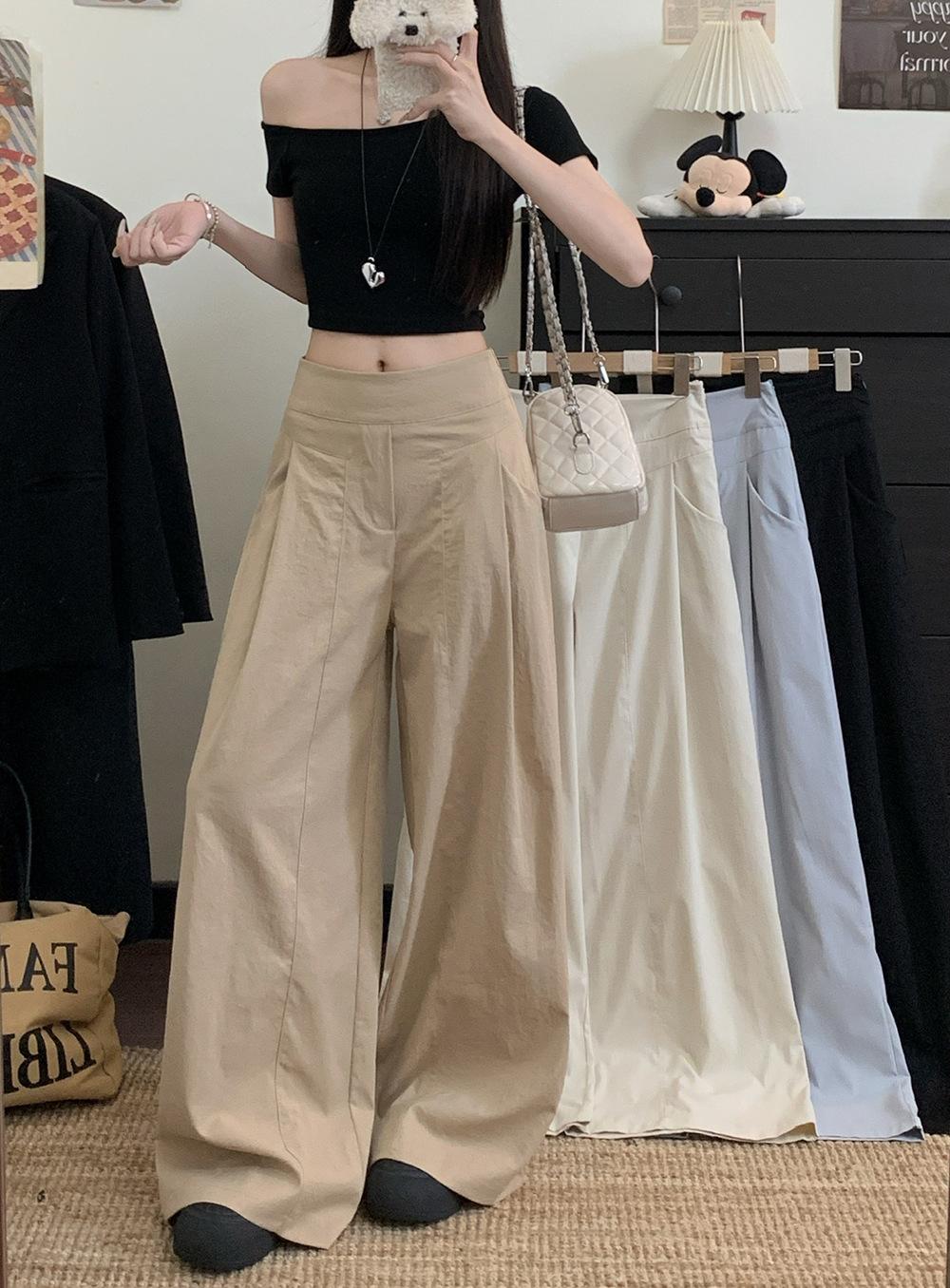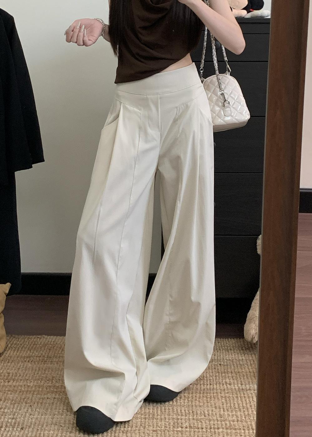 Pantalones Casuales Drapeados Estilo Coreano para Mujer Otoño 2025 Nuevos Cintura Alta Sueltos Adelgazantes Pierna Ancha Sentido del Diseño Pantalones hasta el Suelo