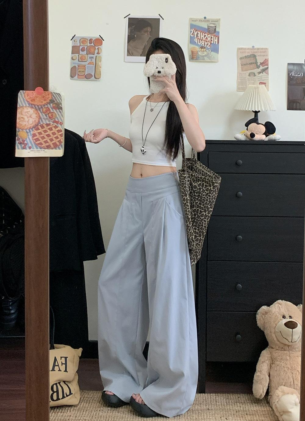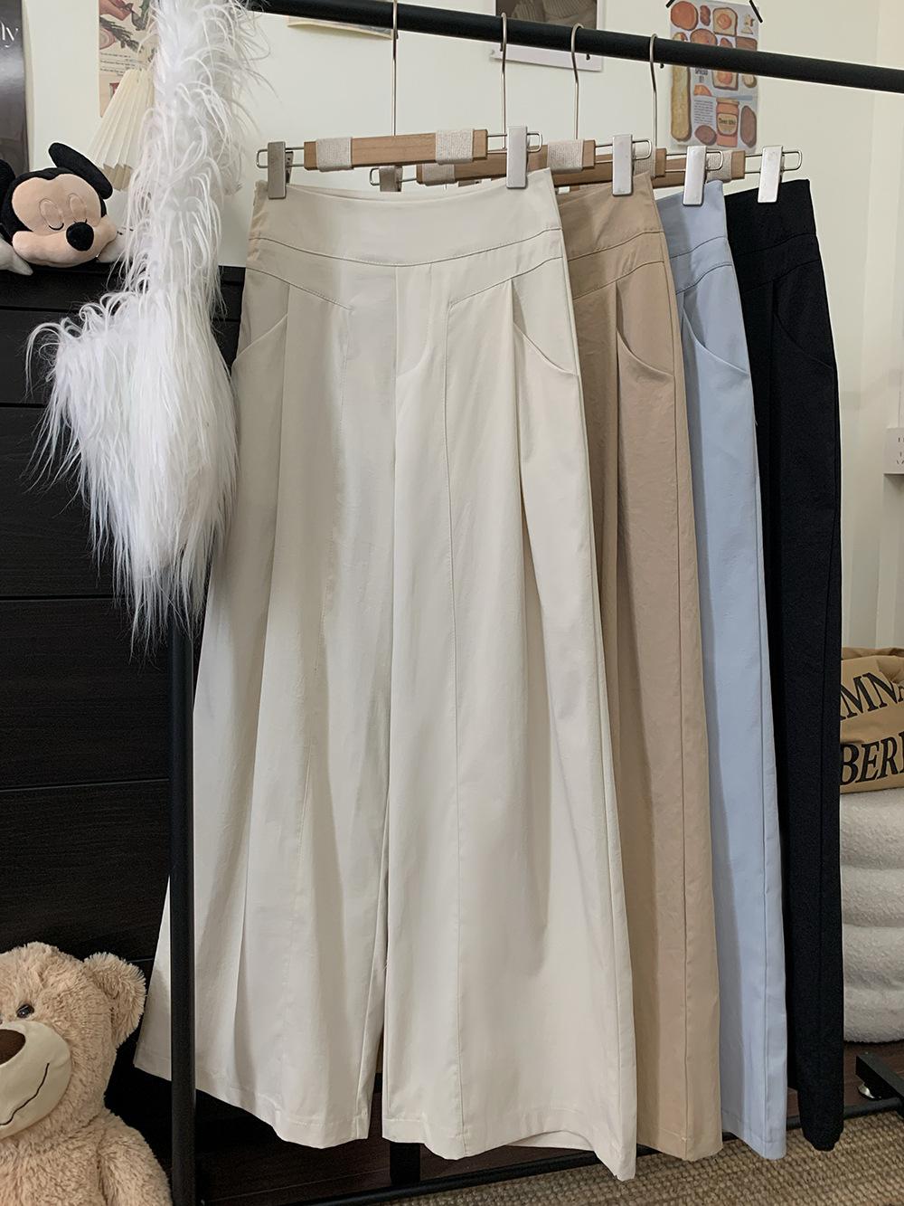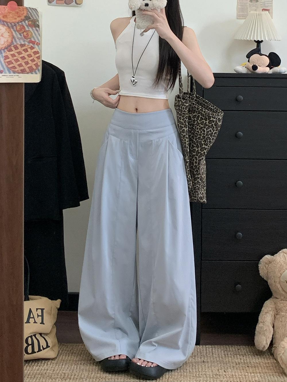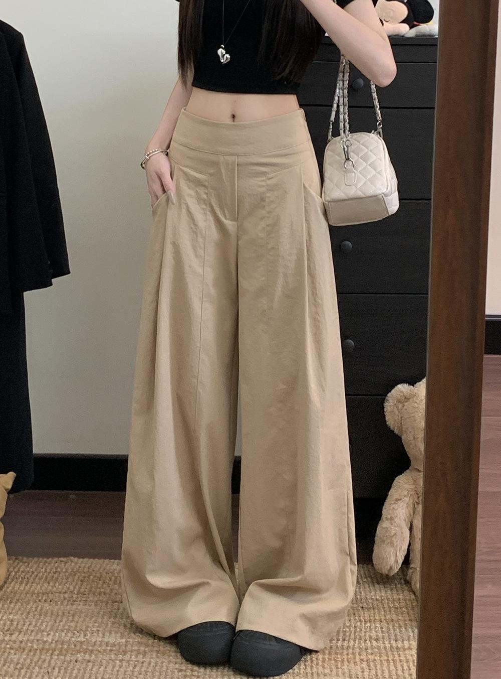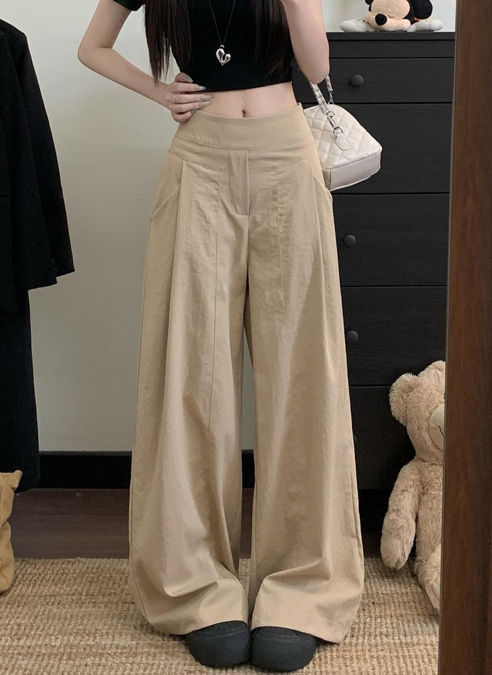 Pantalones Casuales Drapeados Estilo Coreano para Mujer Otoño 2025 Nuevos Cintura Alta Sueltos Adelgazantes Pierna Ancha Sentido del Diseño Pantalones hasta el Suelo