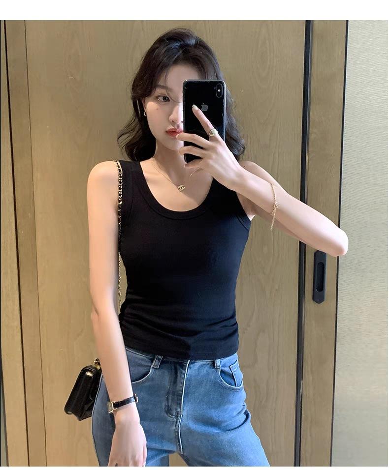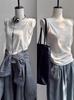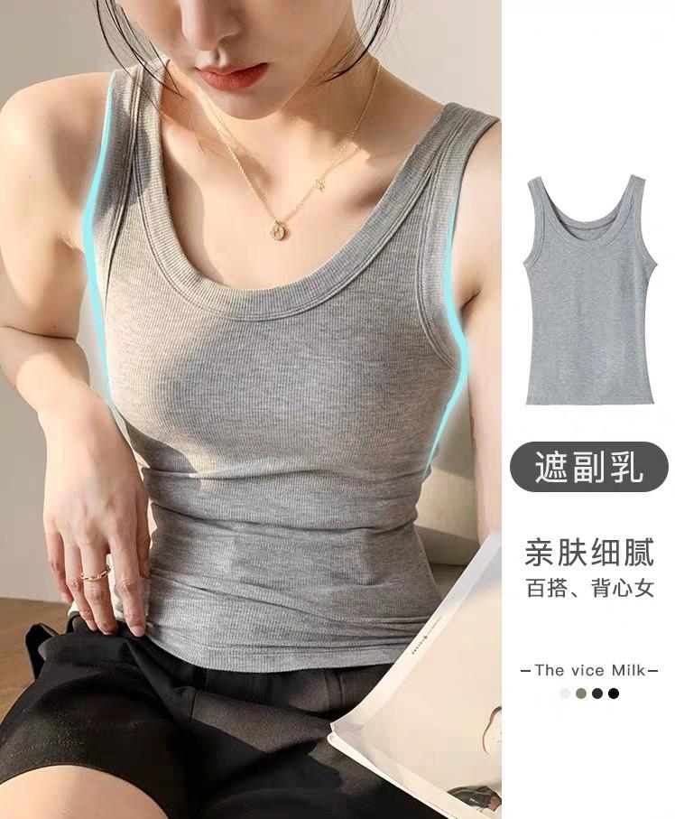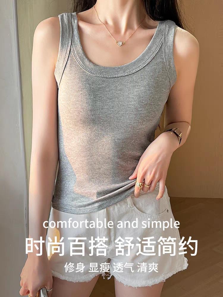 Camisola para Mujer Mezcla Suave de Algodón Acanalada Cuello Redondo Capa Interior 25 Primavera y Verano Nuevo Top sin Mangas Gris